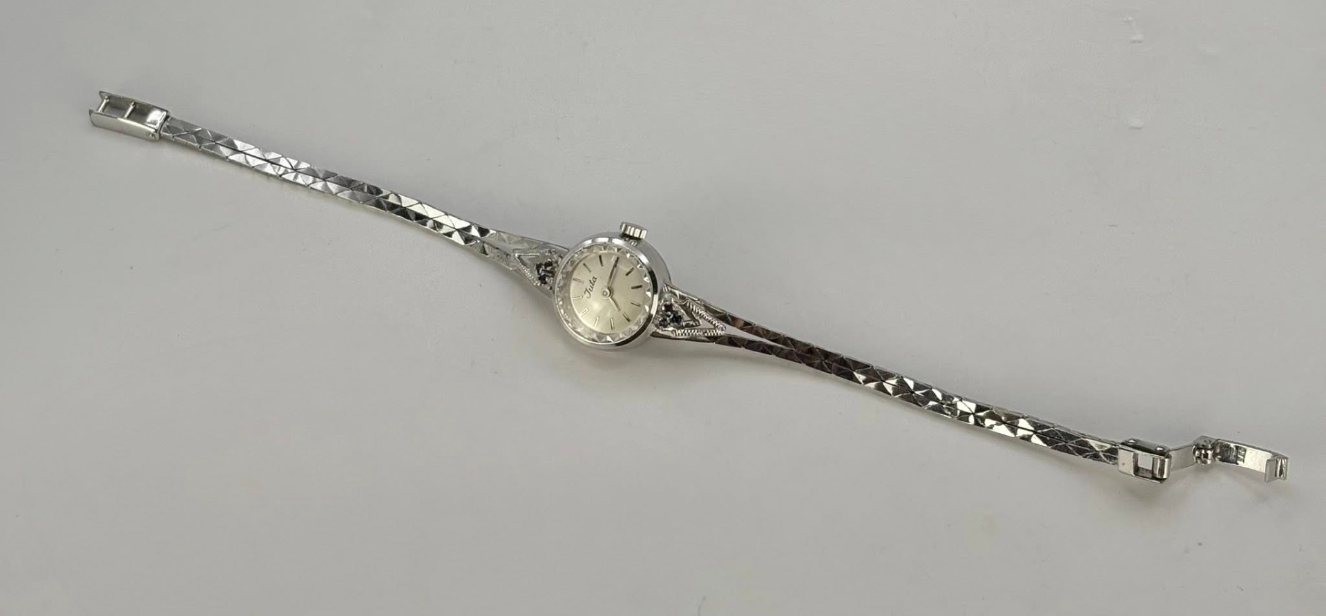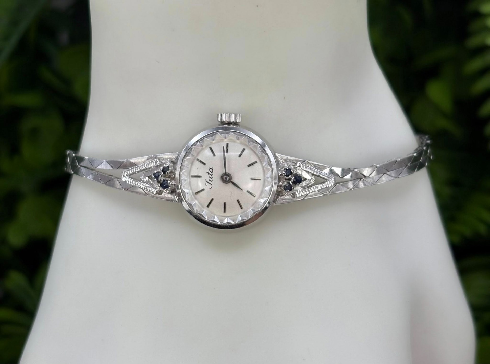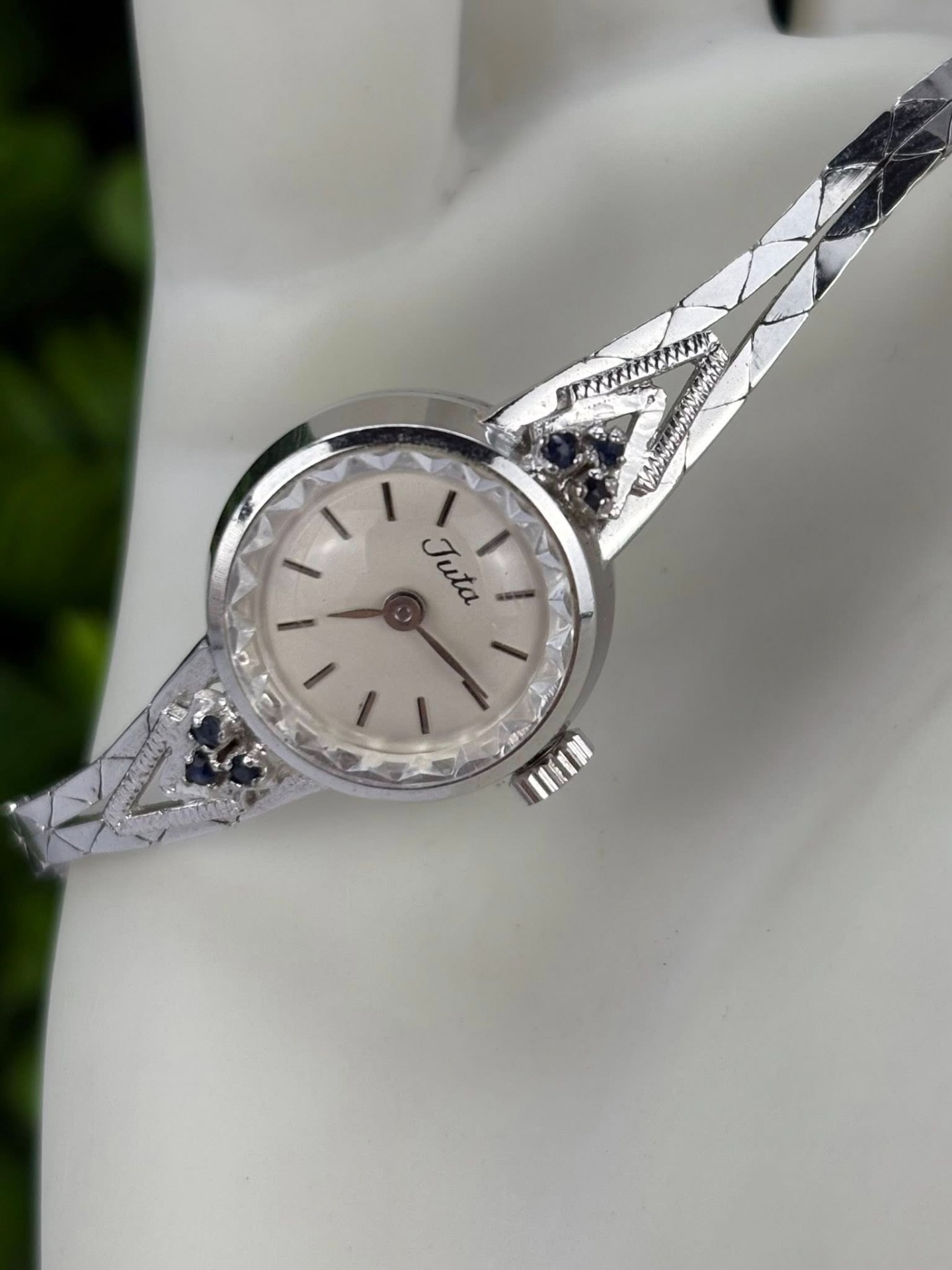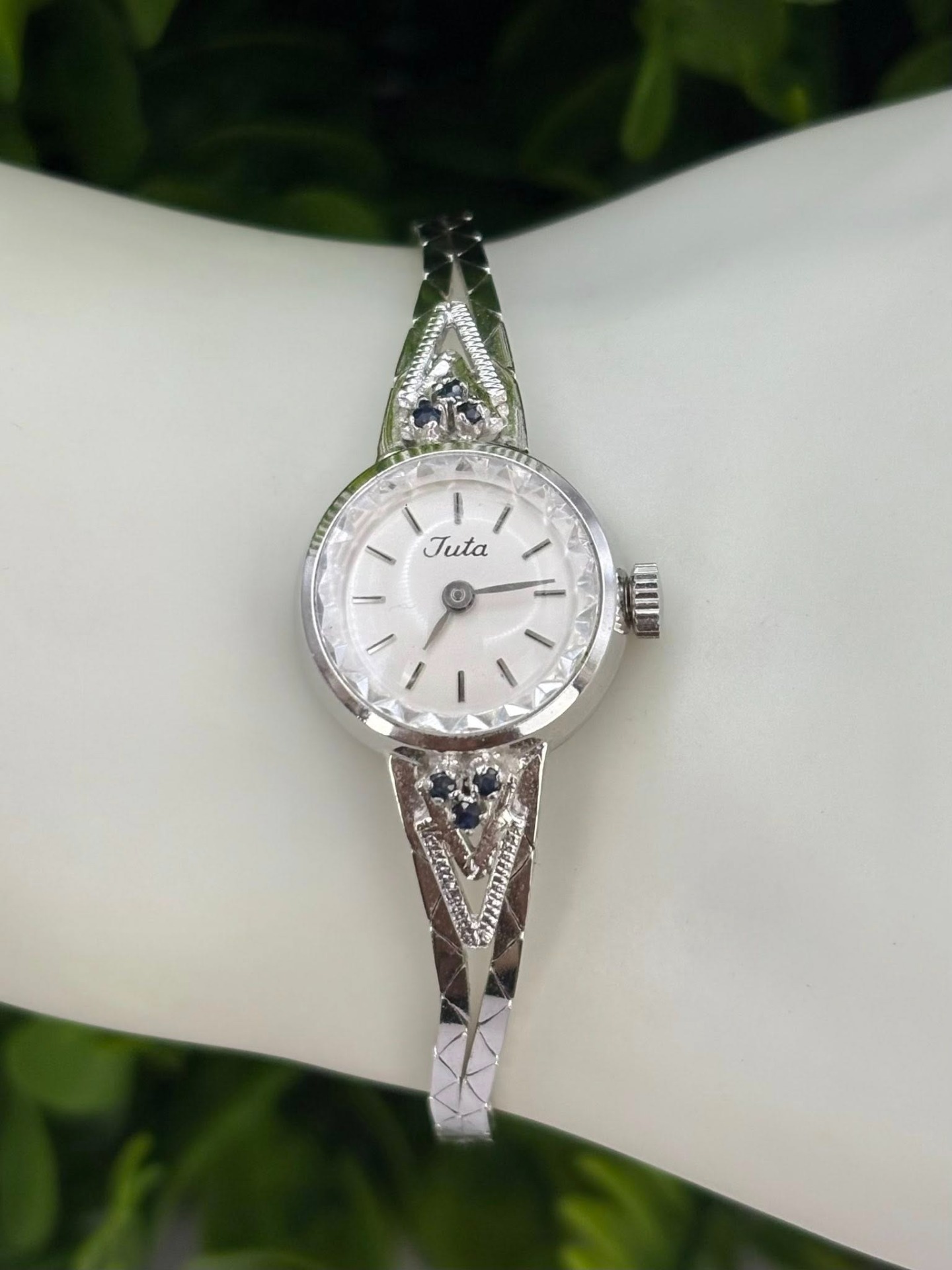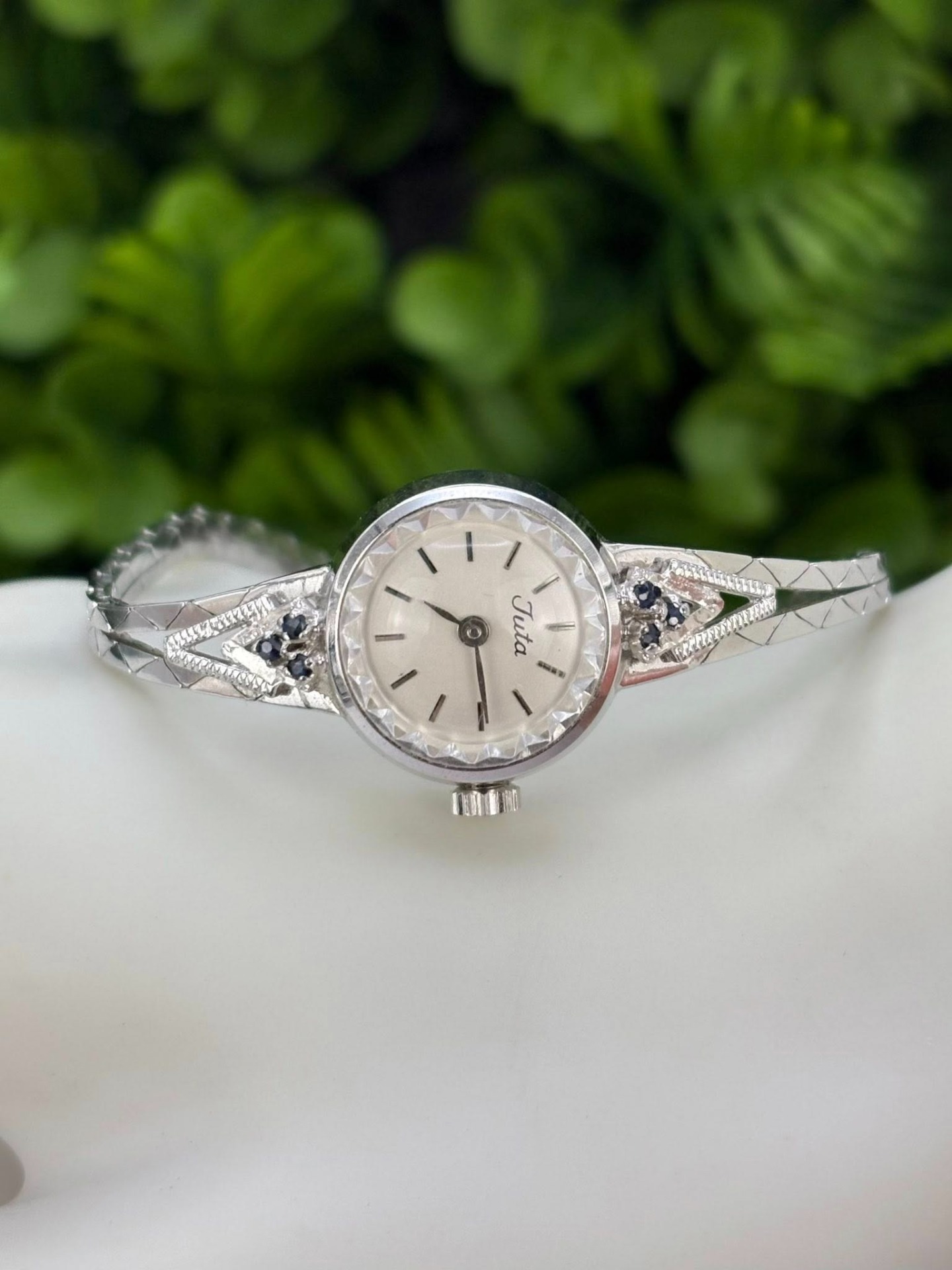 Ceas vechi din argint, cu 6 safire naturale, mecanism cu armare manuală în stare de funcționare.