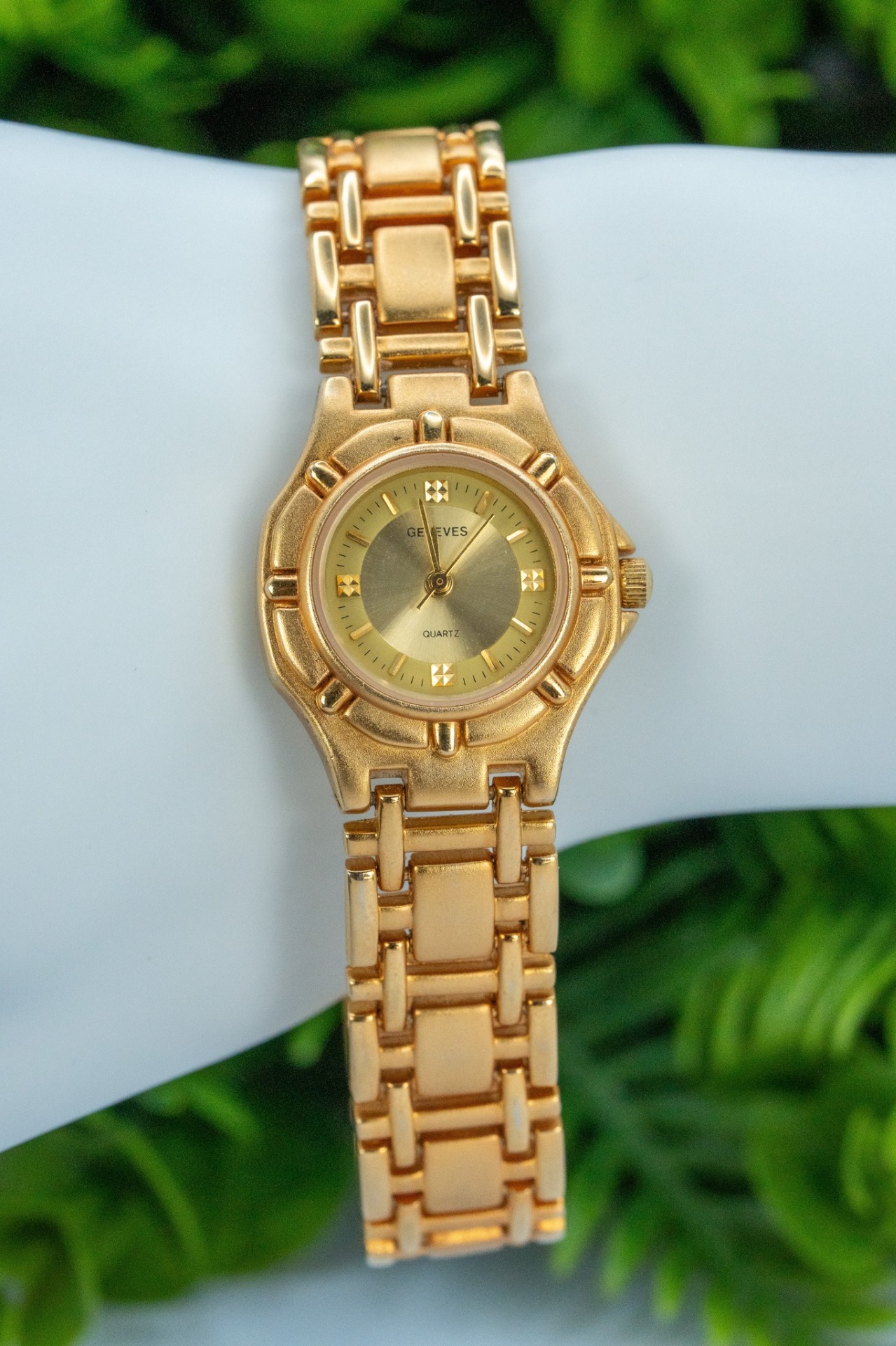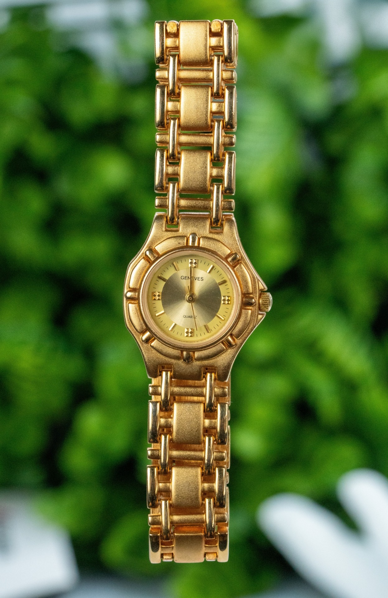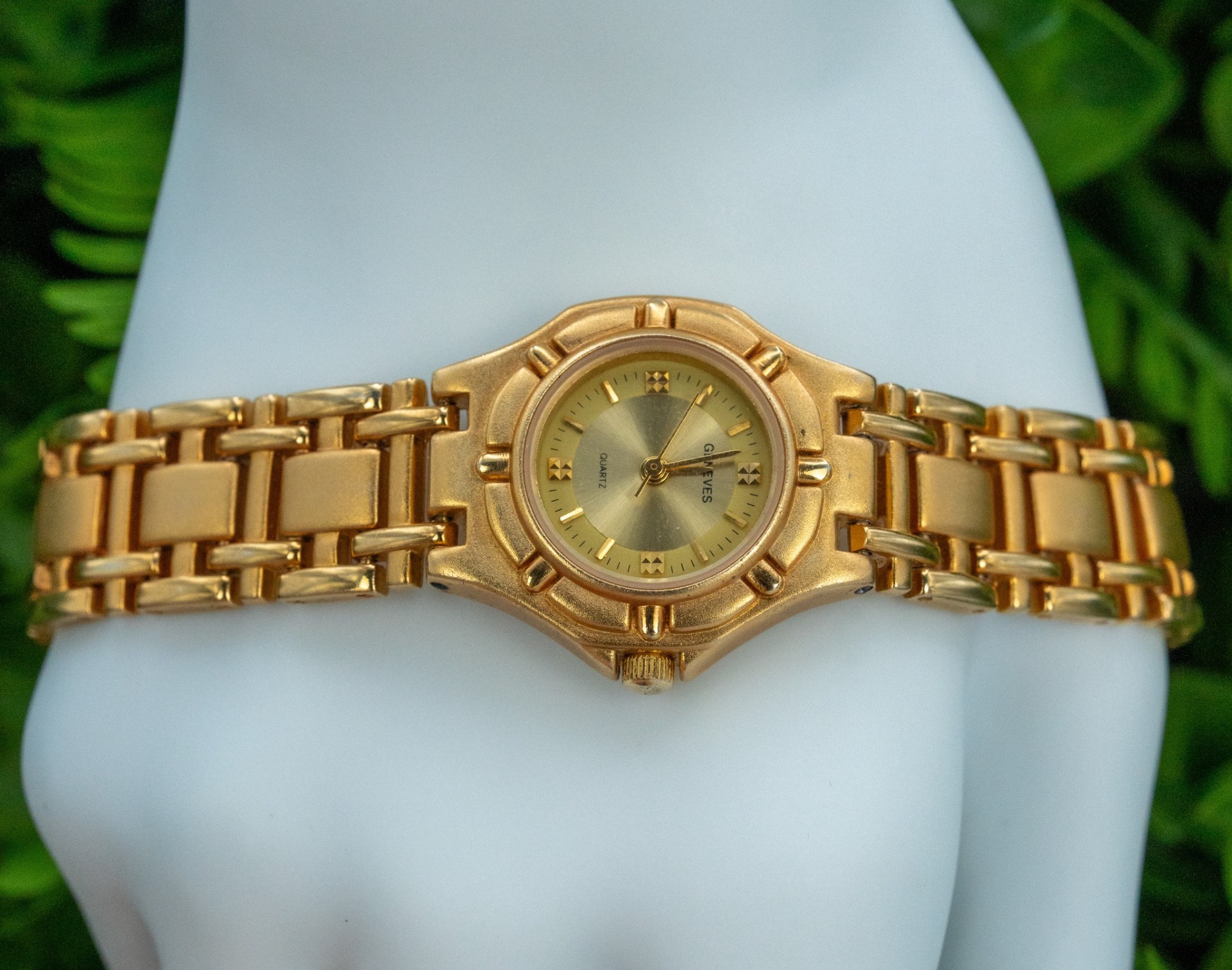 Ceas vintage de damă, din metal aurit, cu mecanism quartz în stare de funcționare.