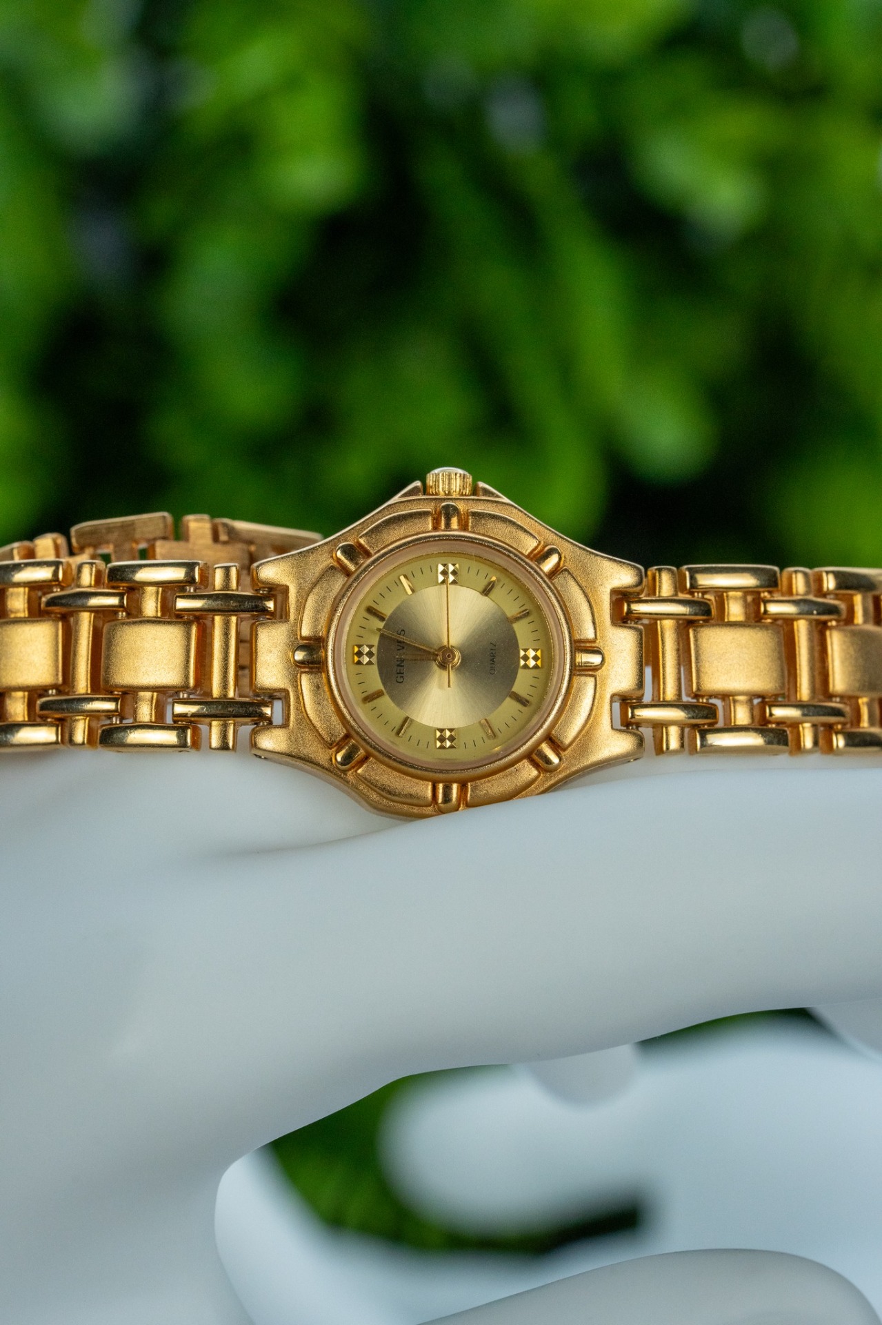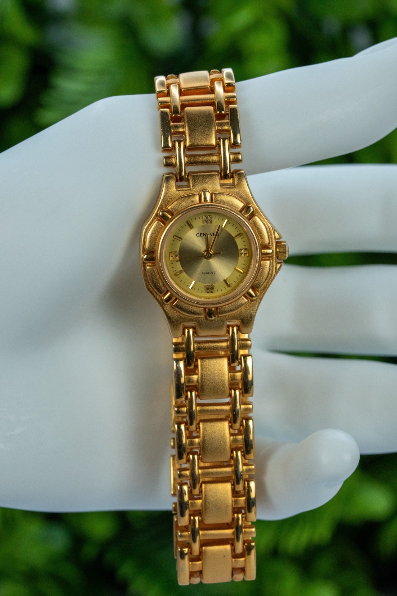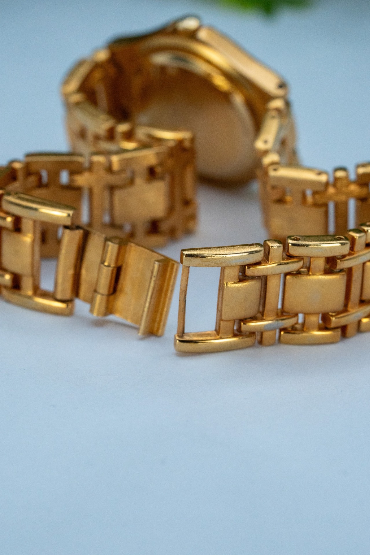 Ceas vintage de damă, din metal aurit, cu mecanism quartz în stare de funcționare.