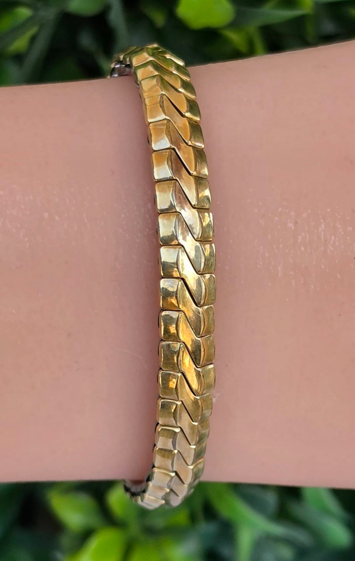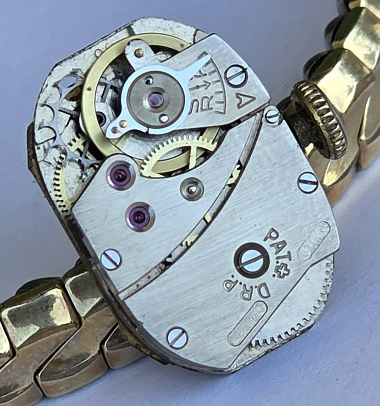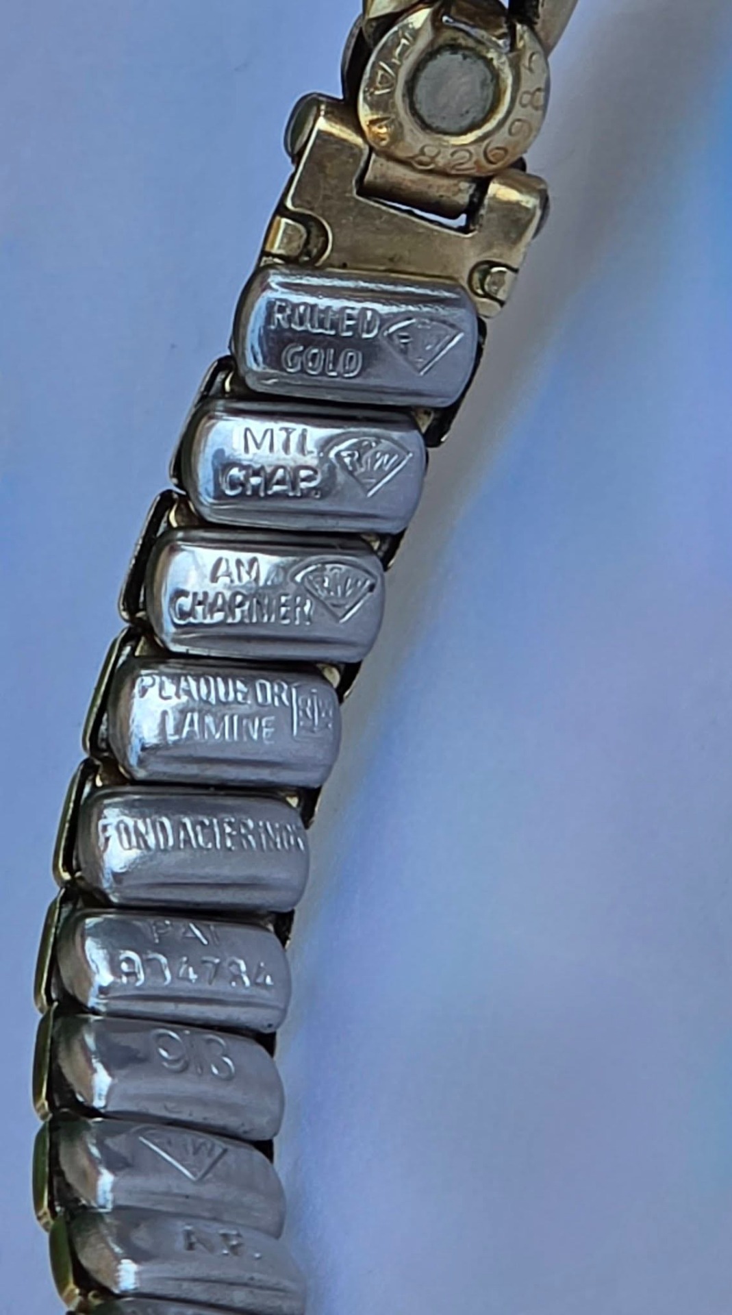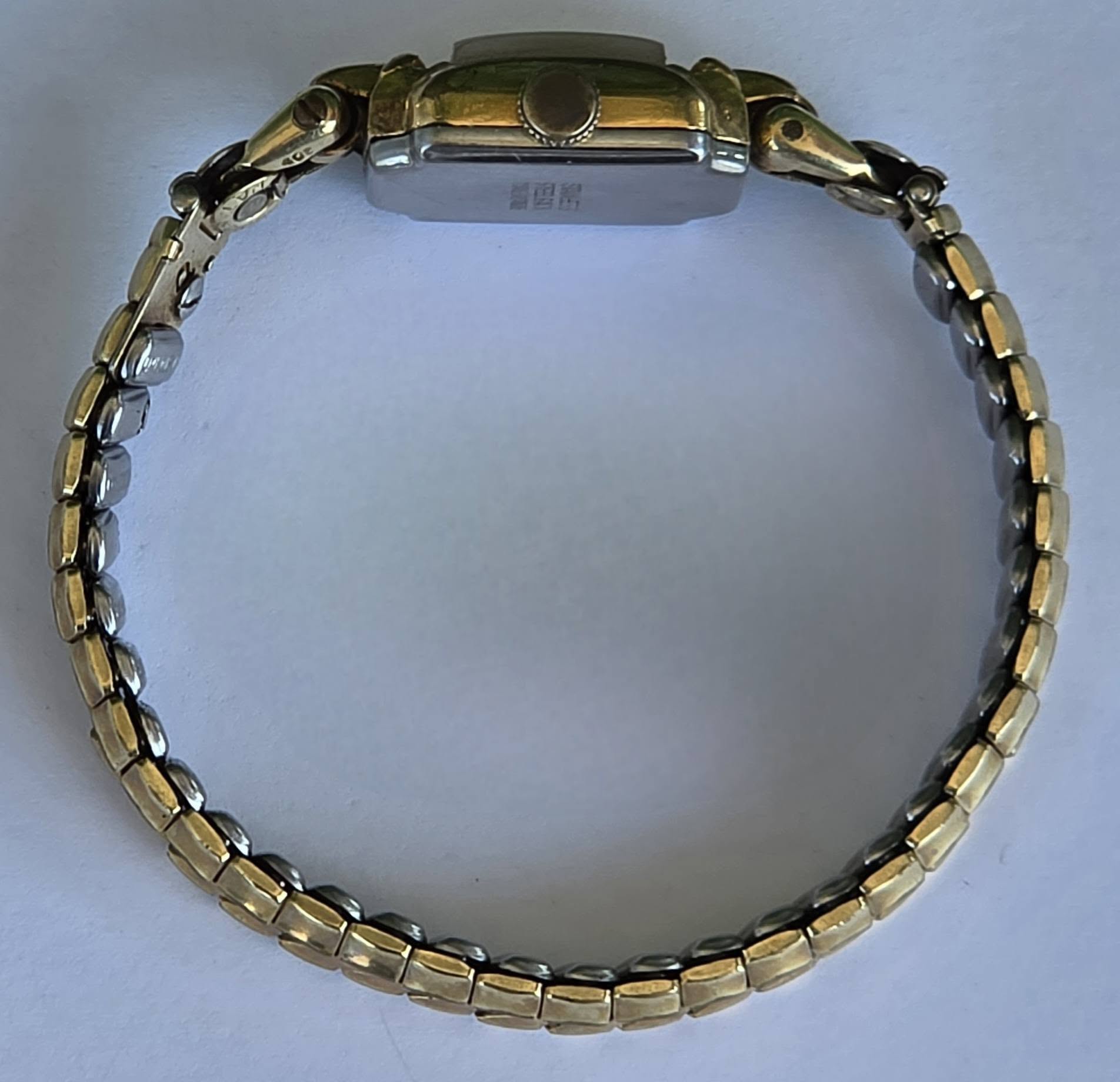 Ceas vintage Seporette elvețian, de damă, din metal aurit, cu mecanism cu armare manuală, 10 jewels, funcțional, cu brățară elastică.