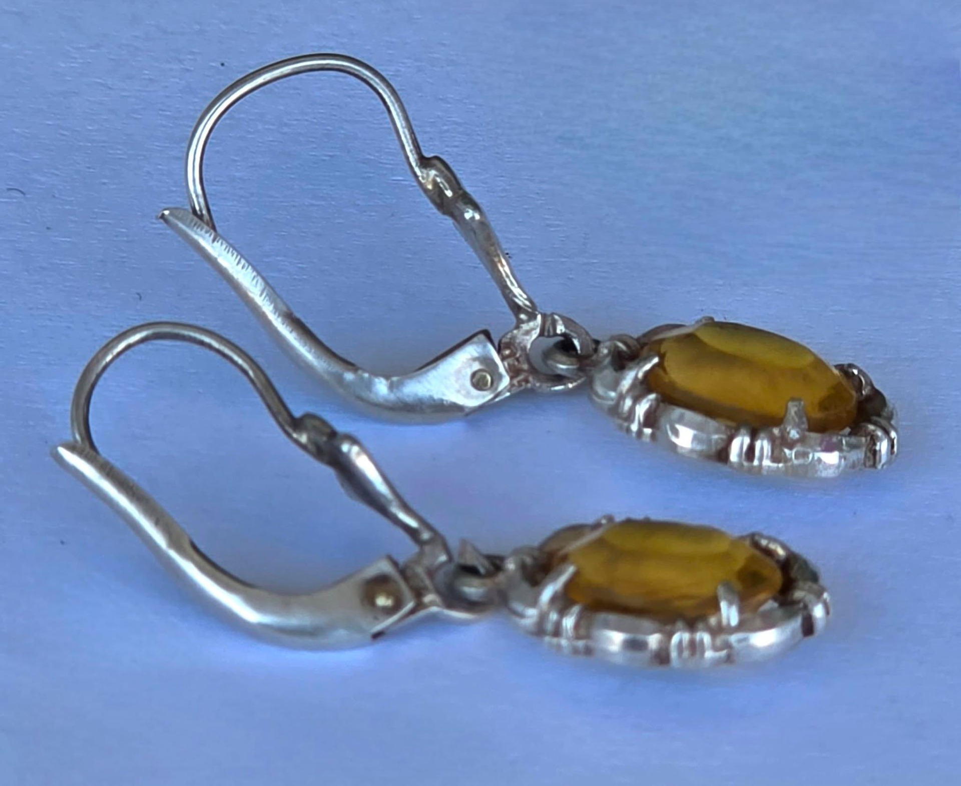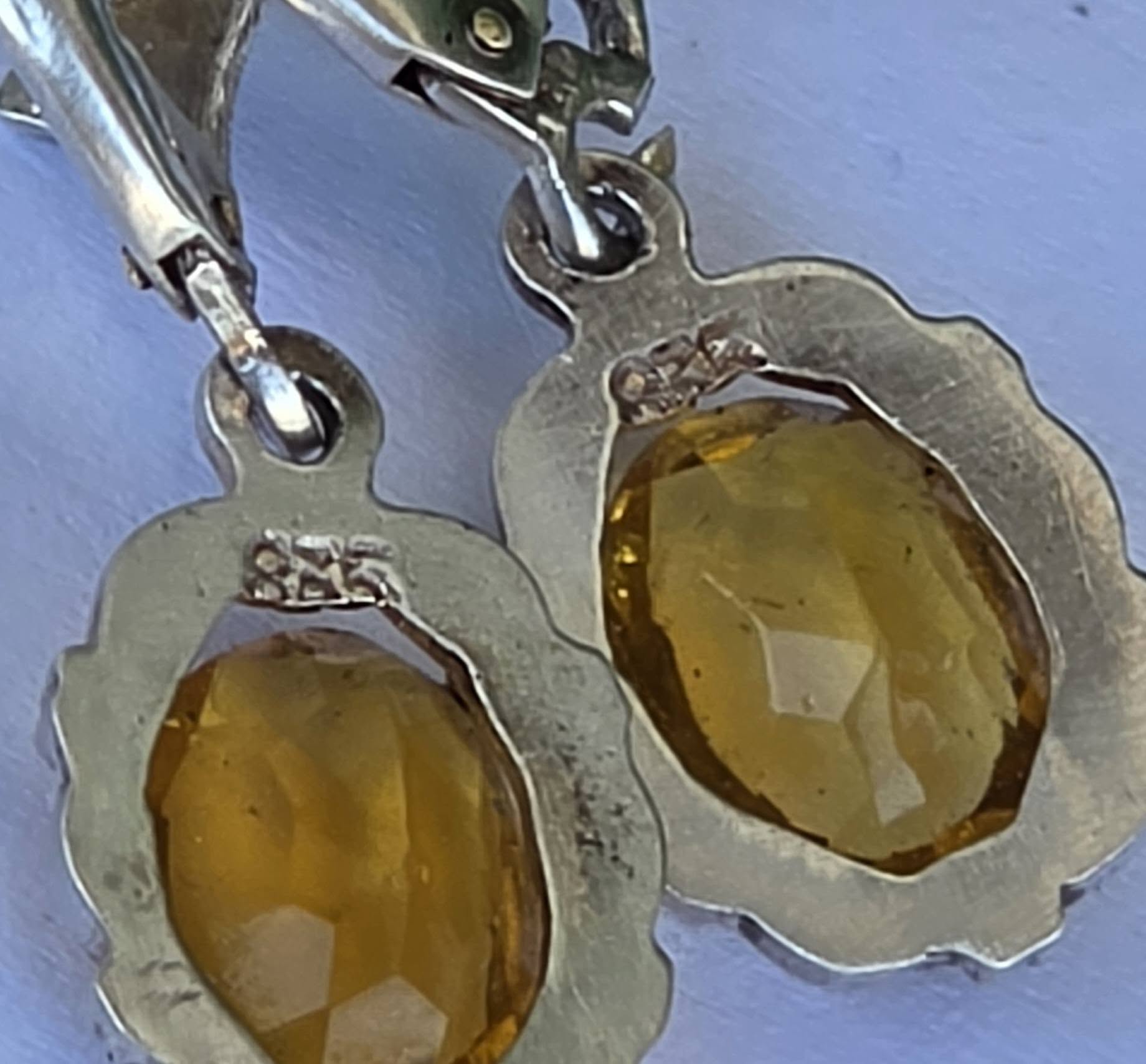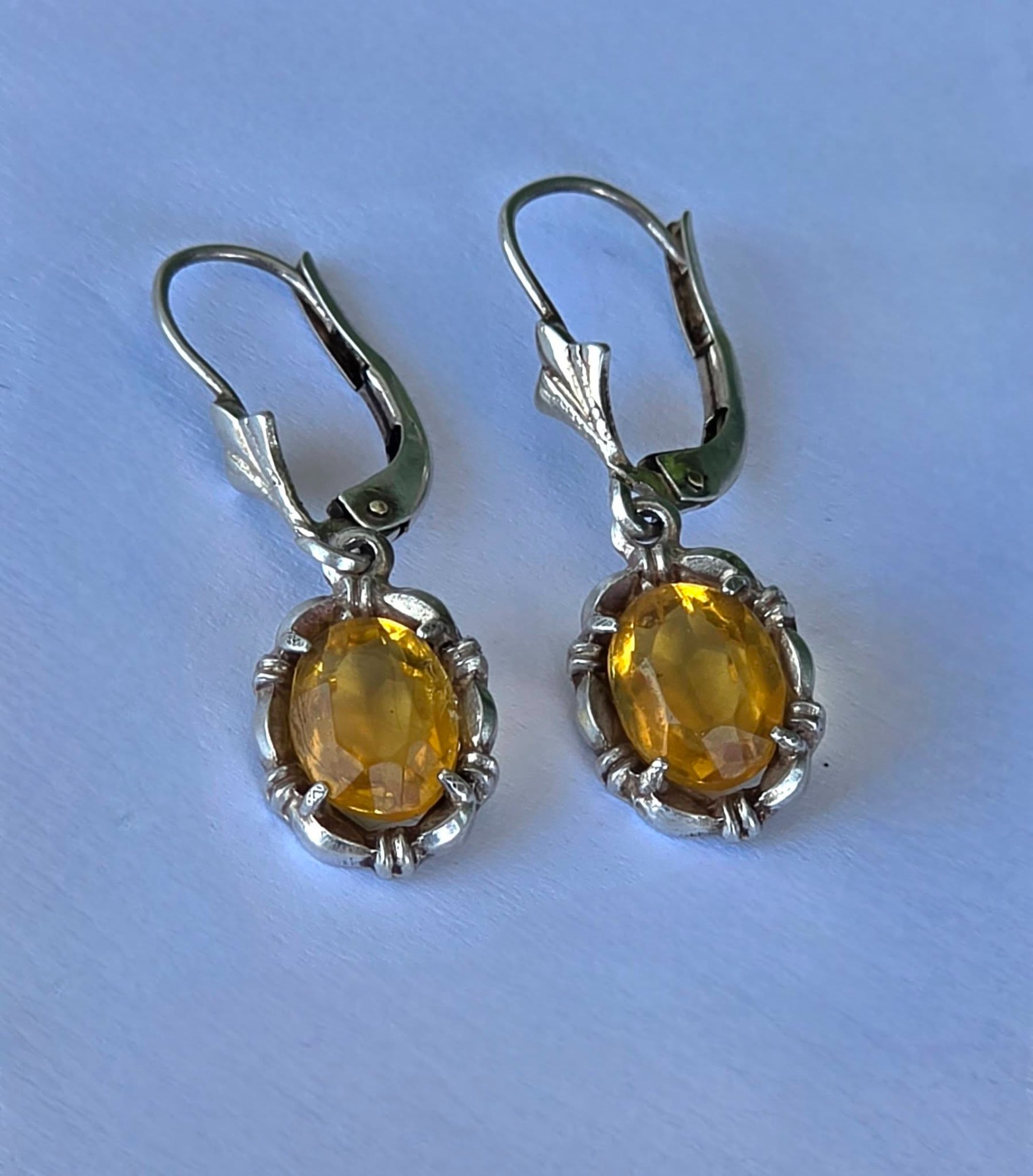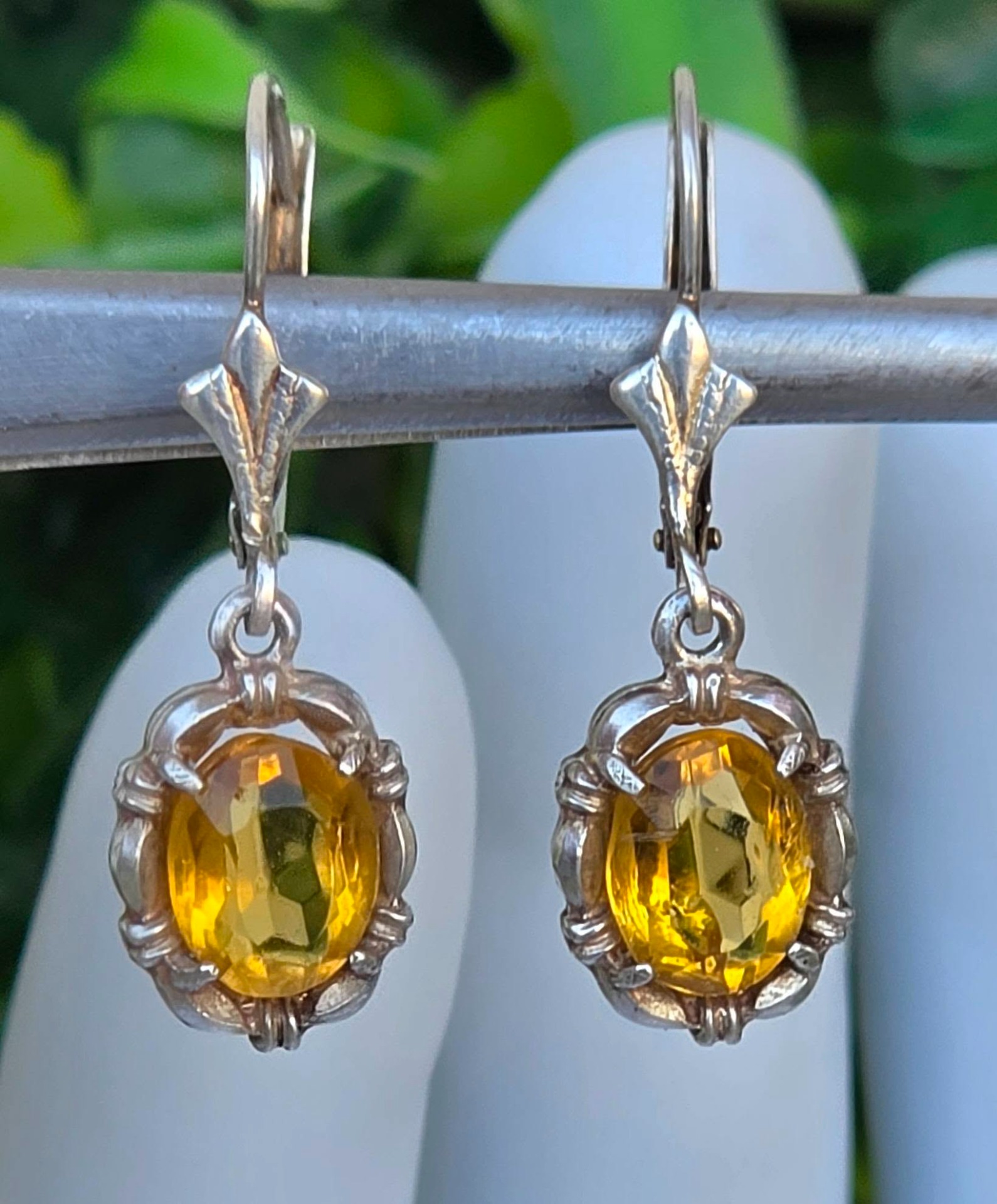 Cercei Art Deco din argint, cu "glass paste" galben.