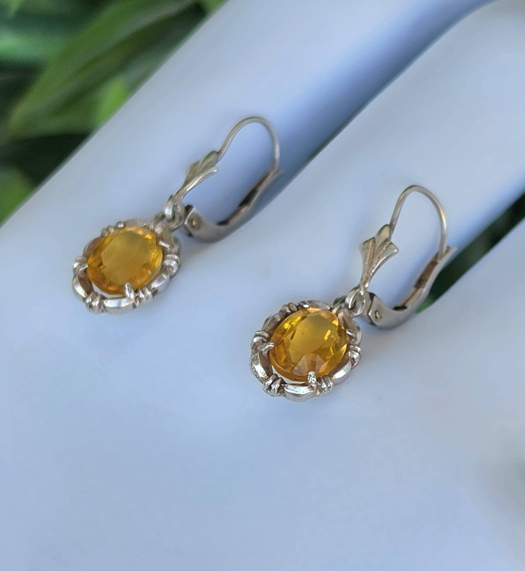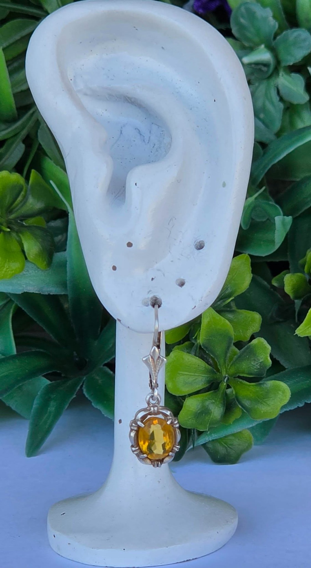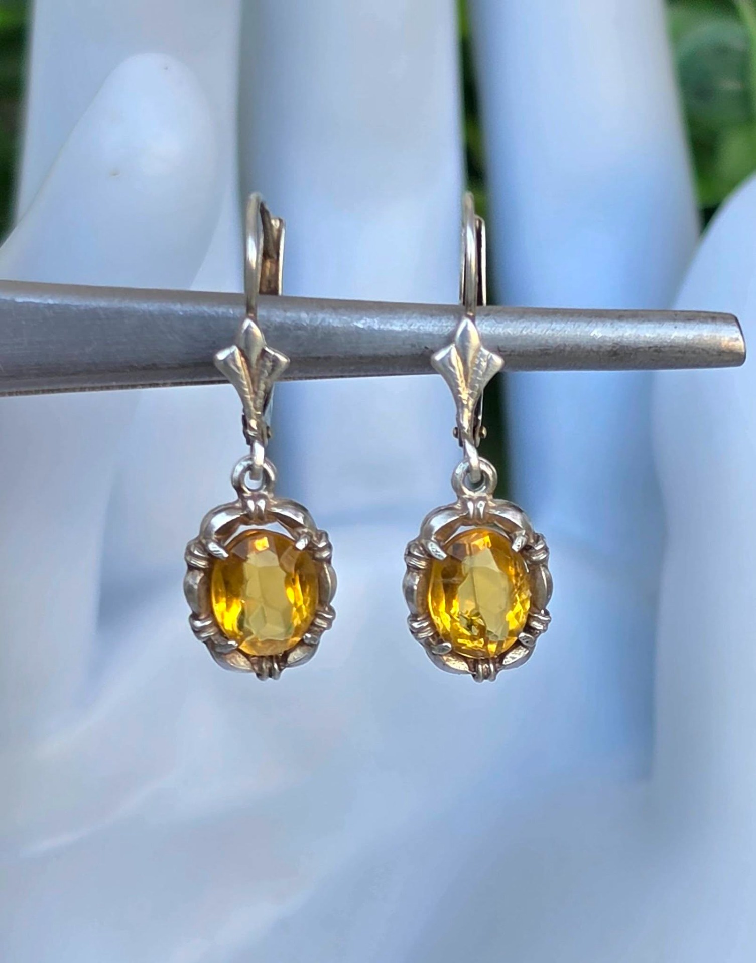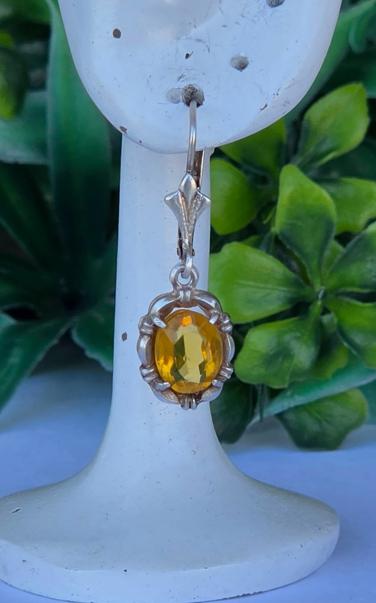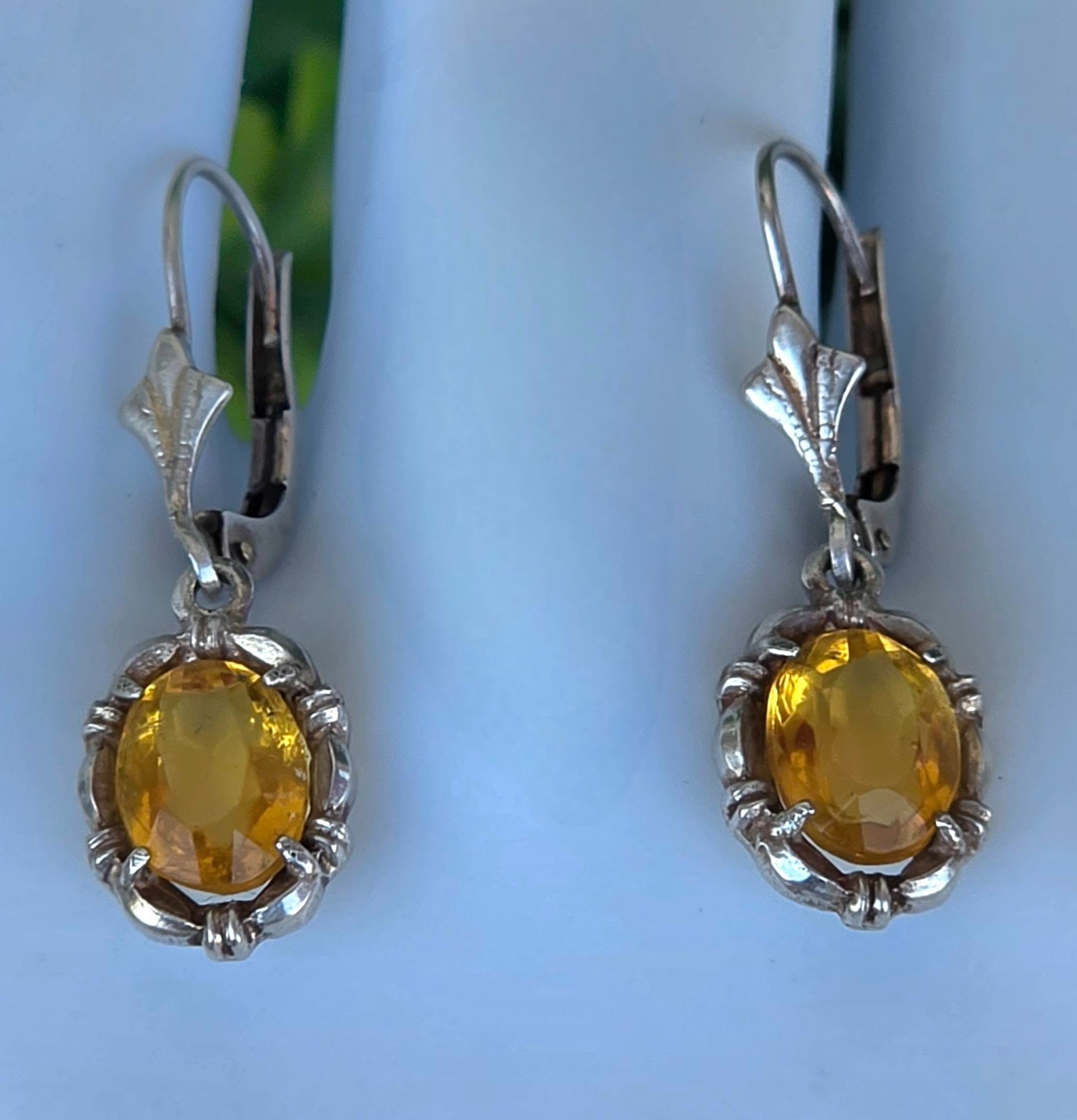 Cercei Art Deco din argint, cu "glass paste" galben.