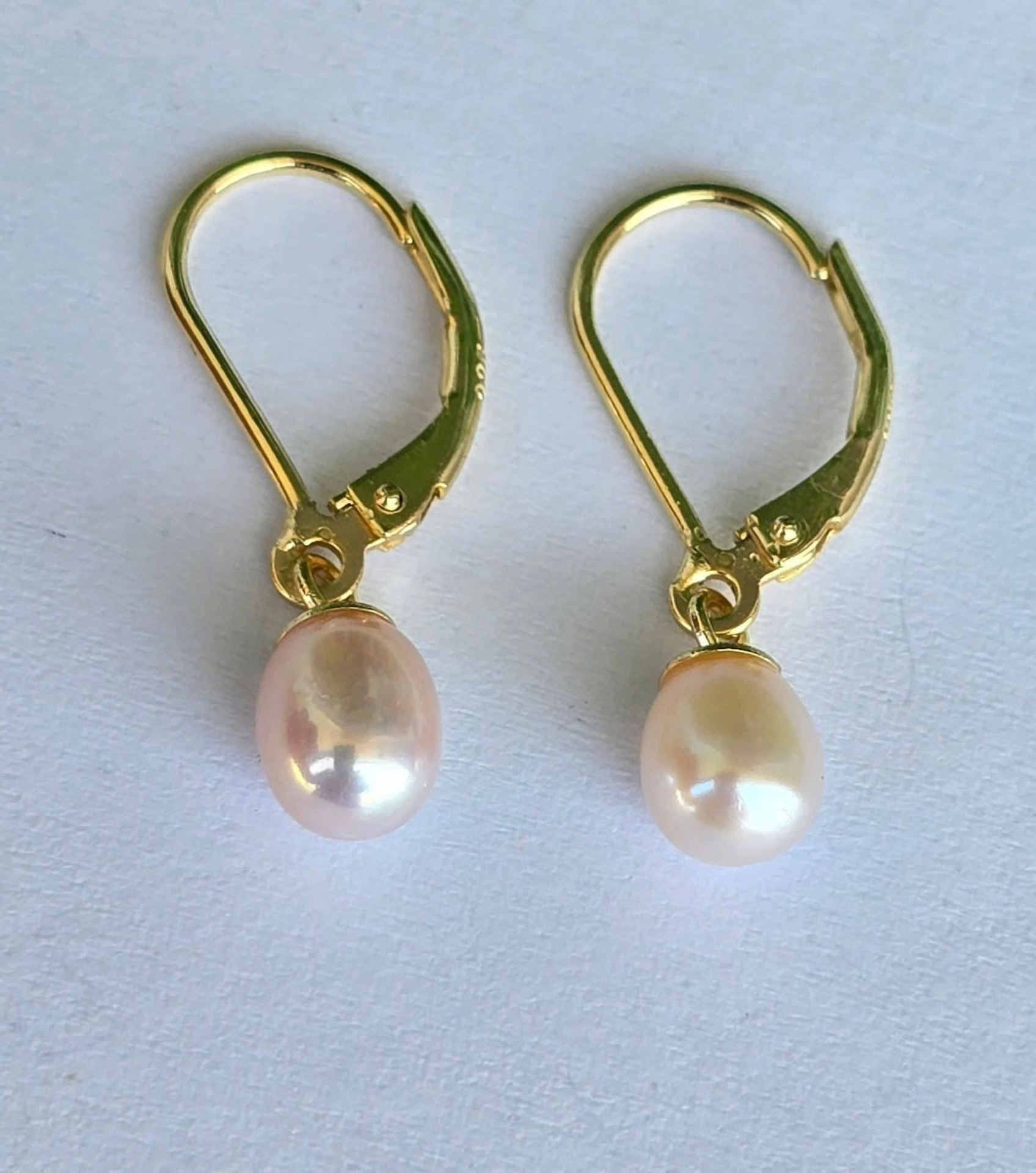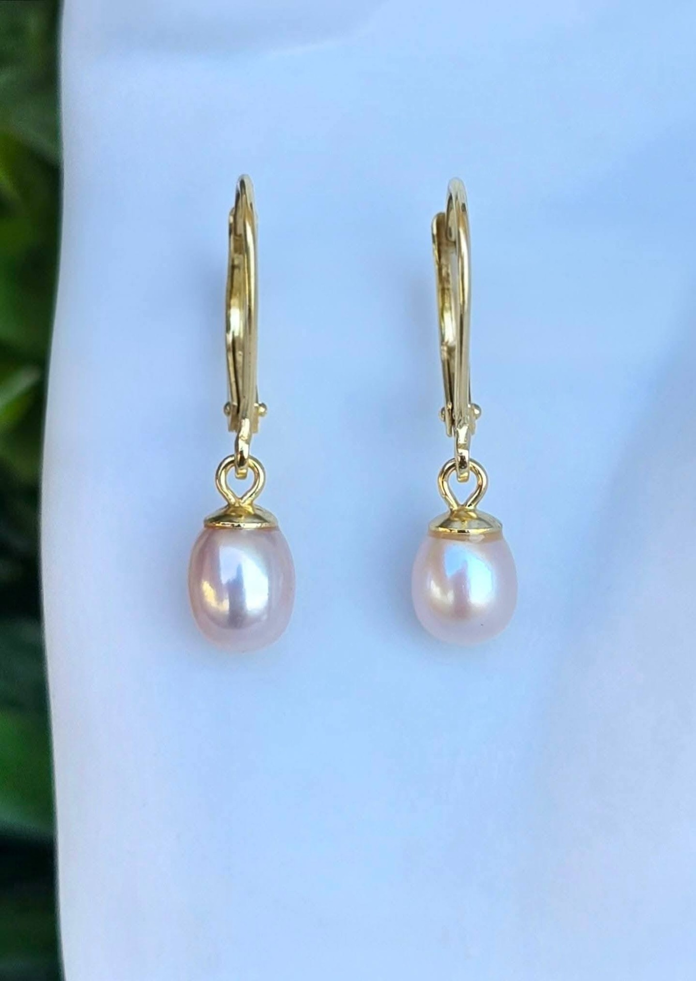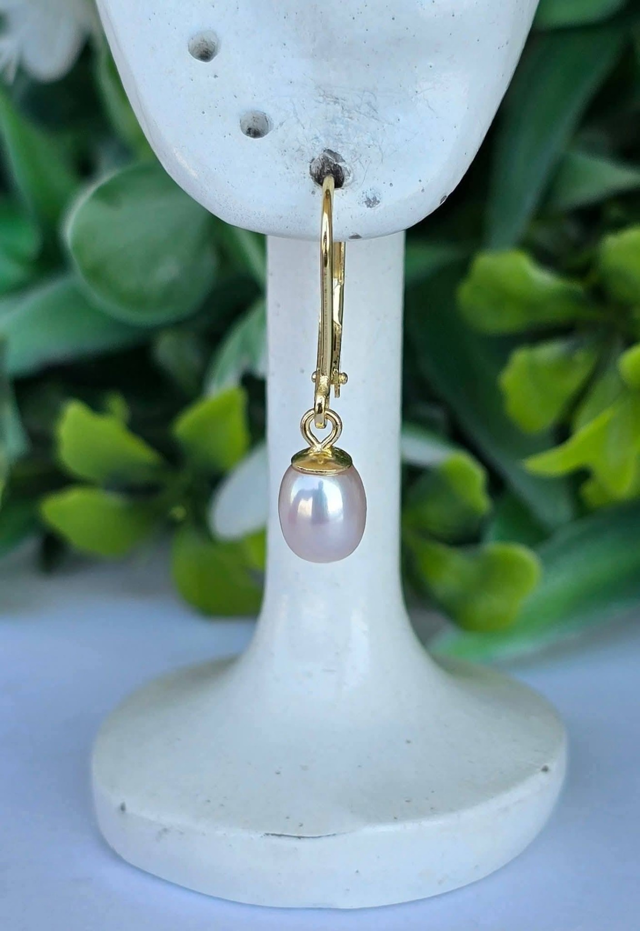 Cercei contemporani delicați, din argint aurit, cu perle roz naturale de cultură.