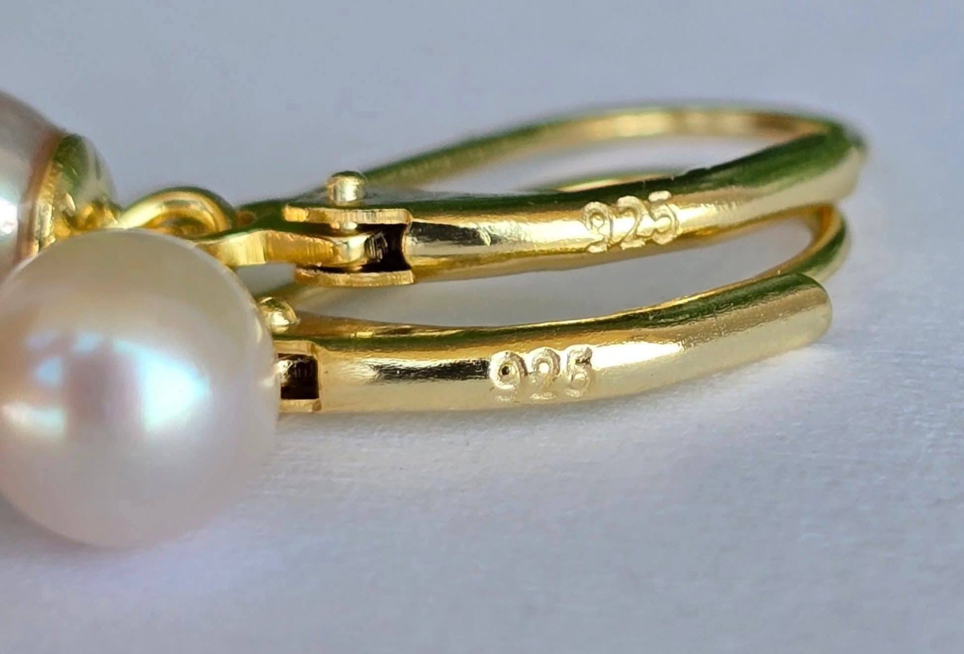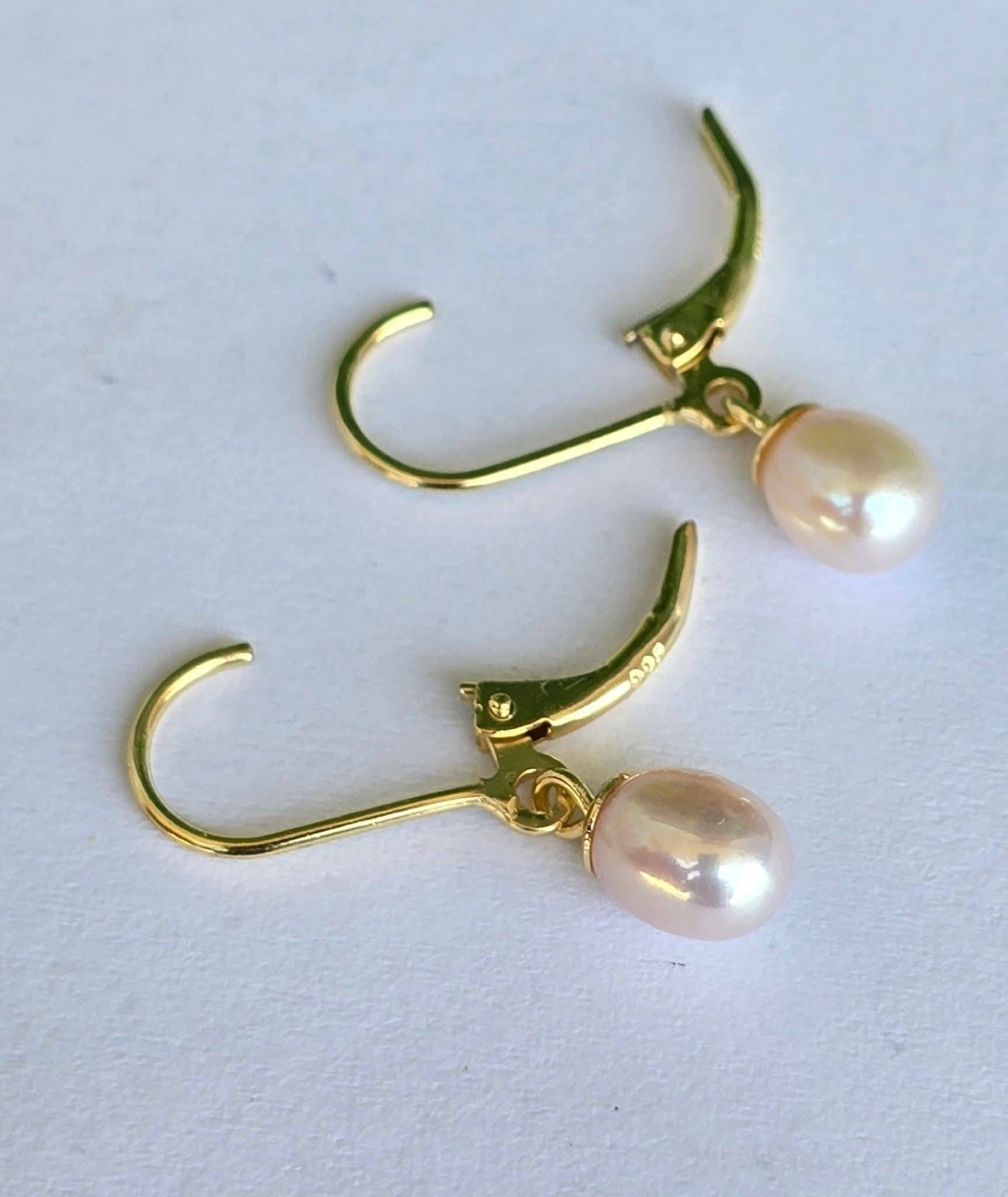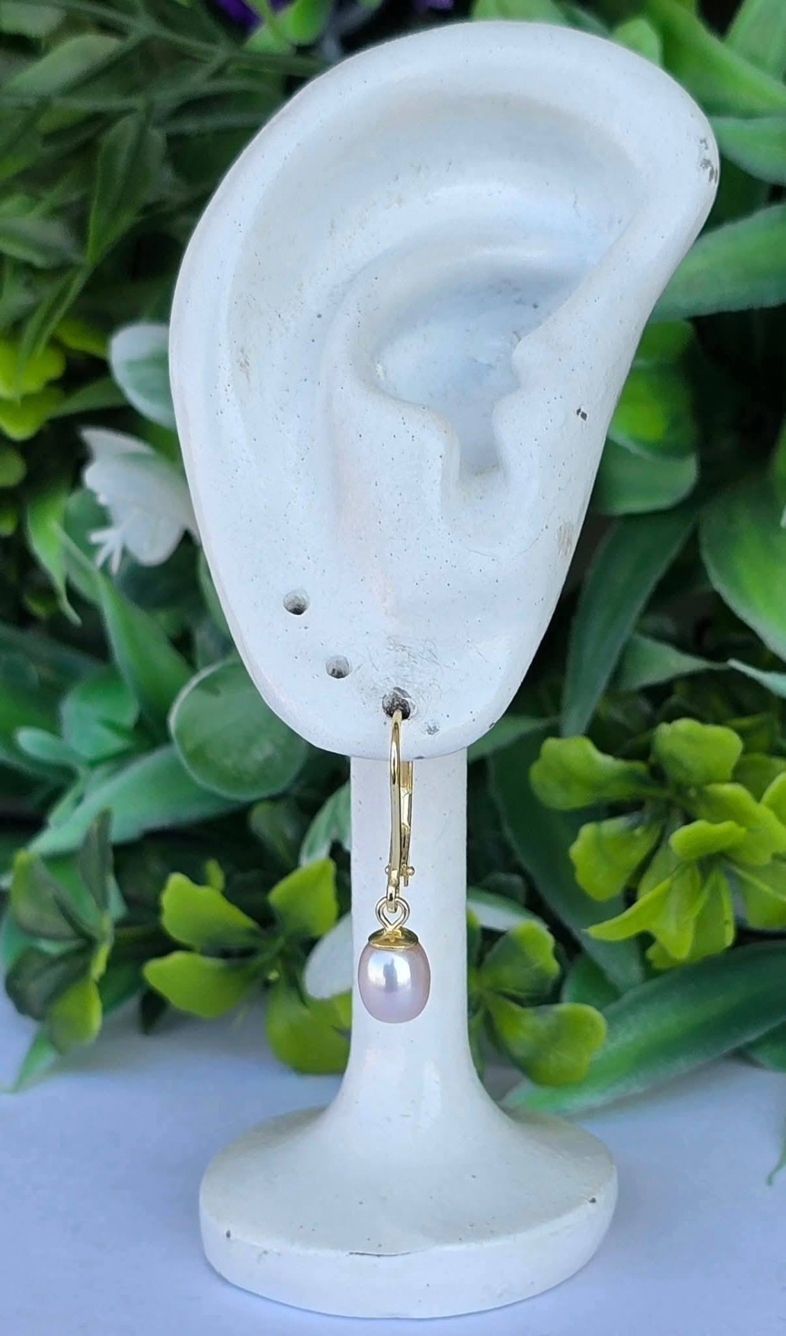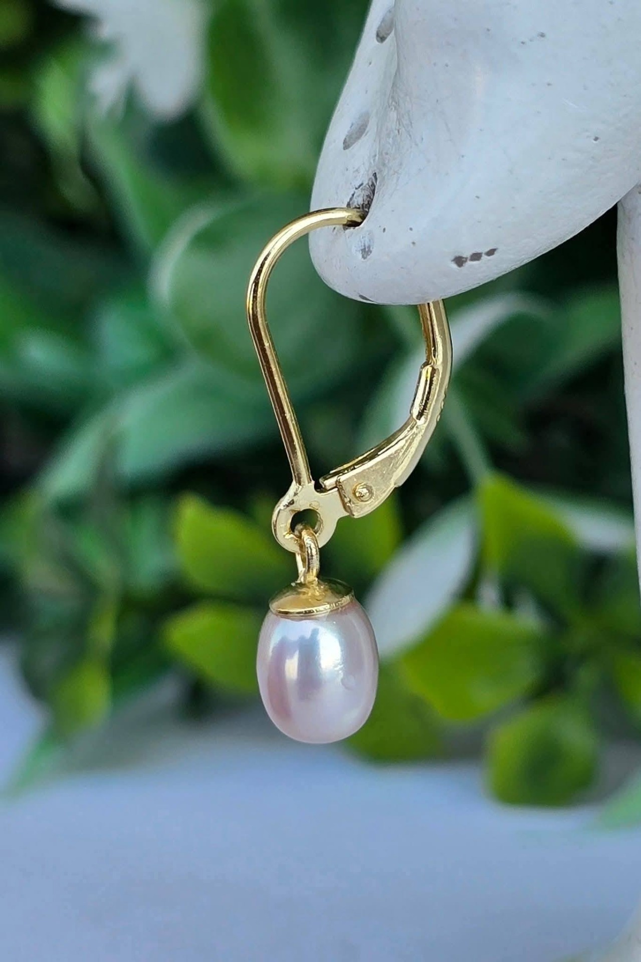 Cercei contemporani delicați, din argint aurit, cu perle roz naturale de cultură.