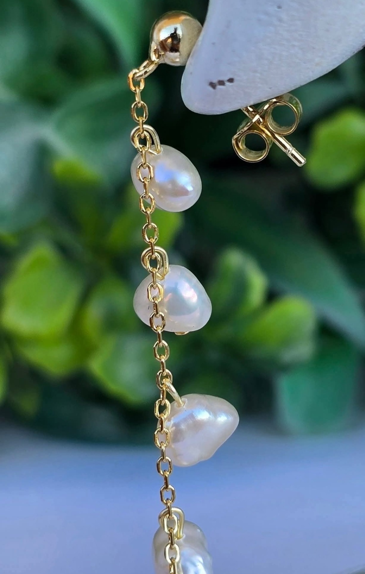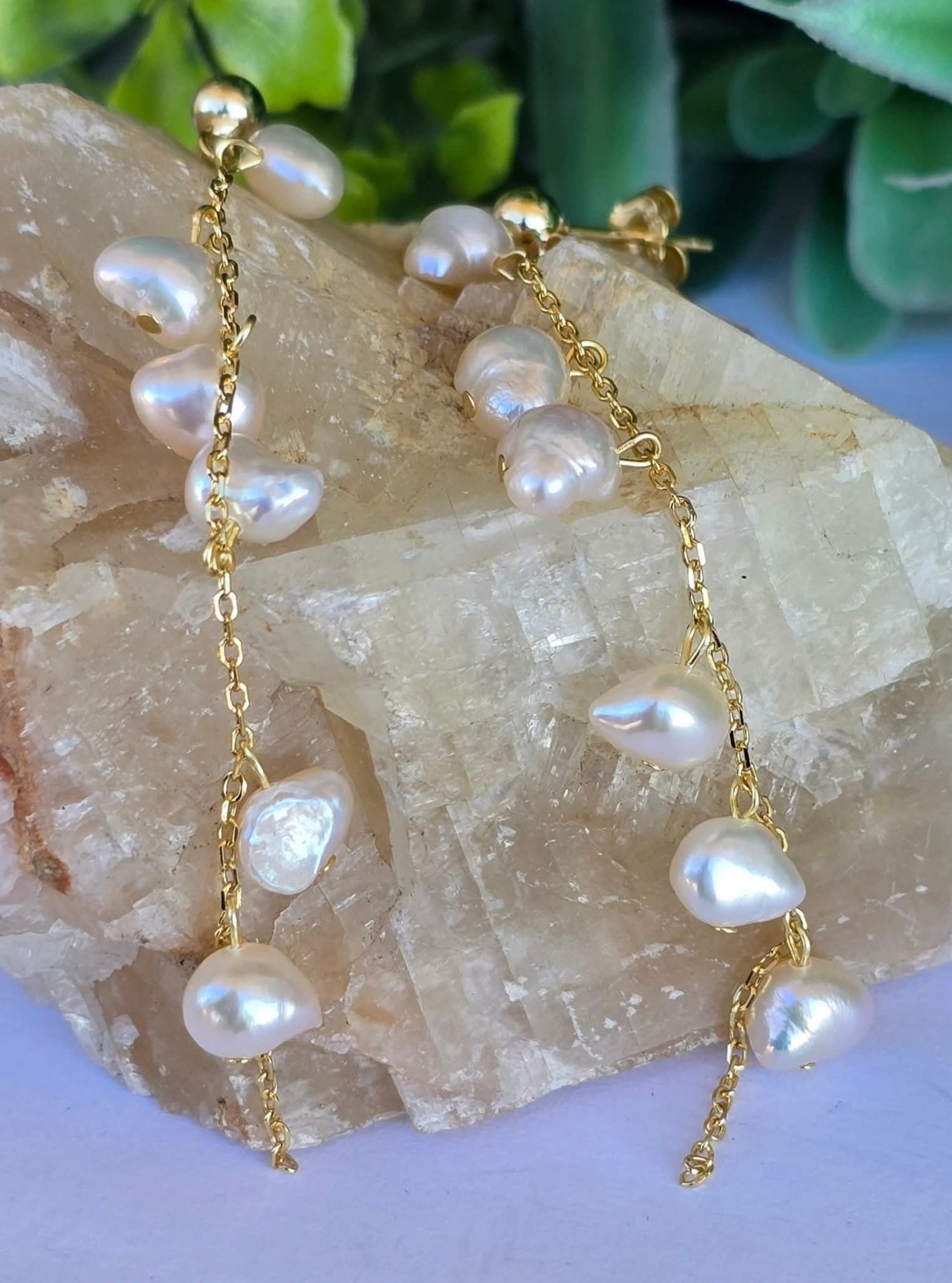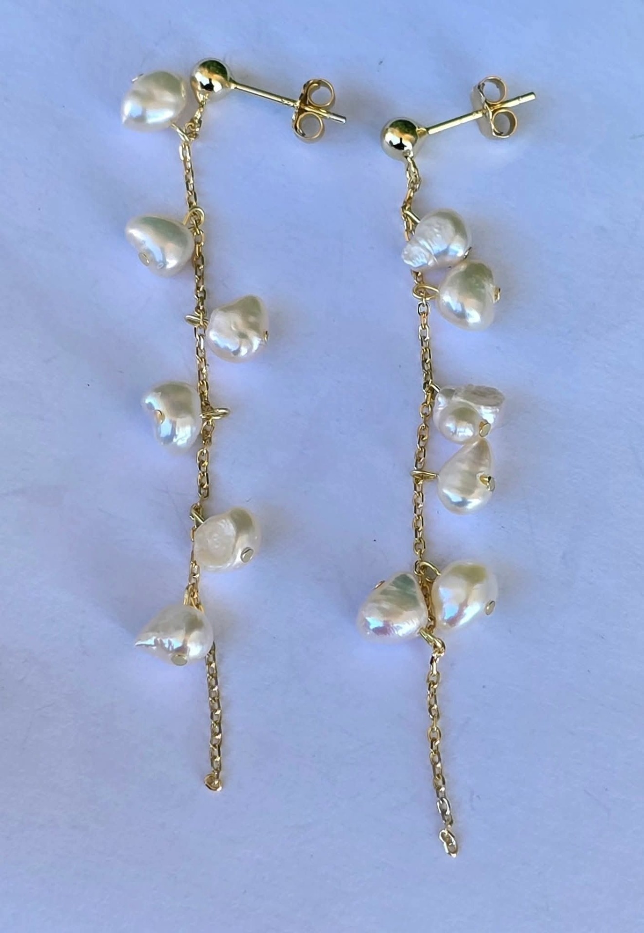 Cercei contemporani deosebiți, din argint aurit, cu perle baroque naturale de cultură.