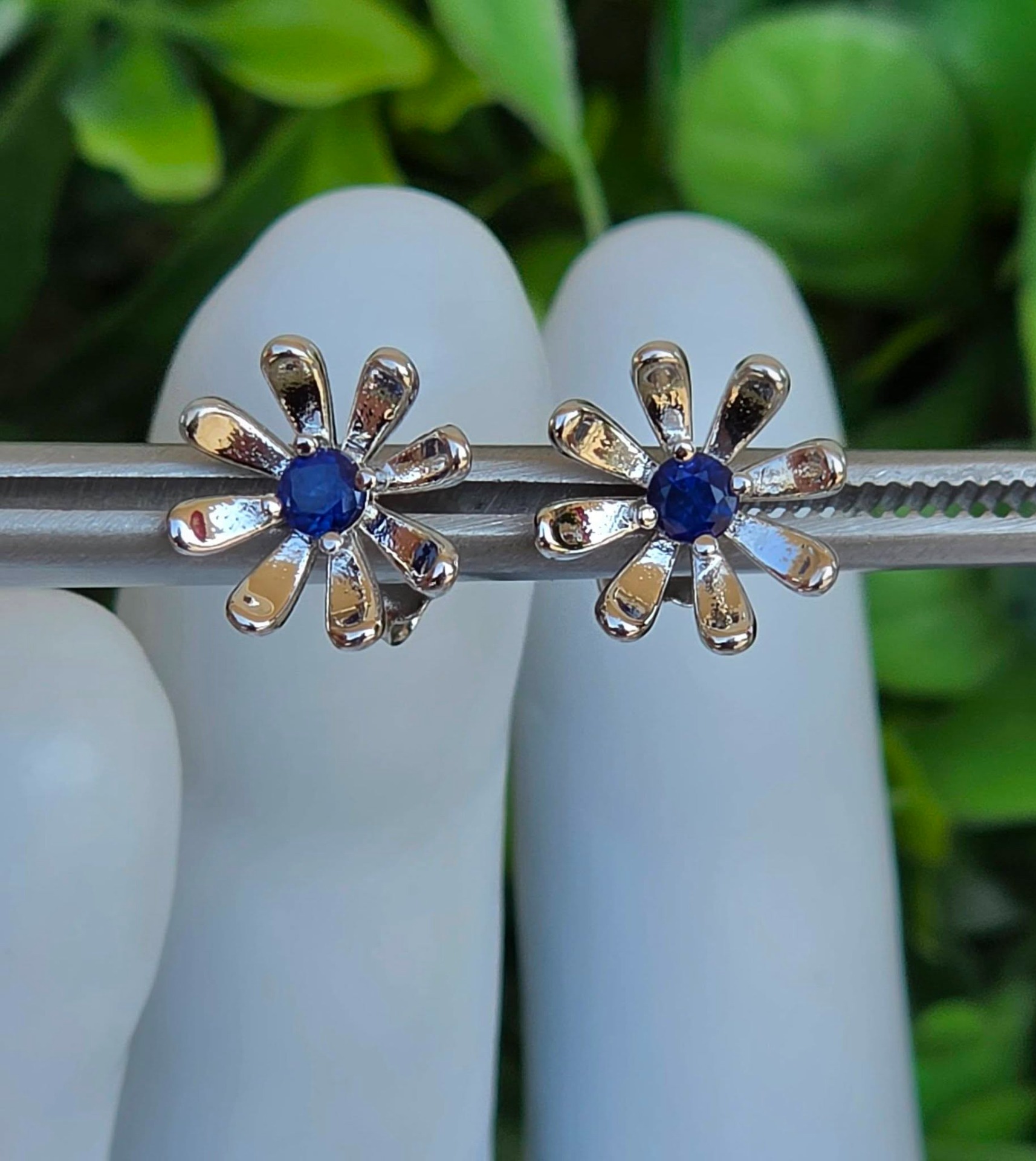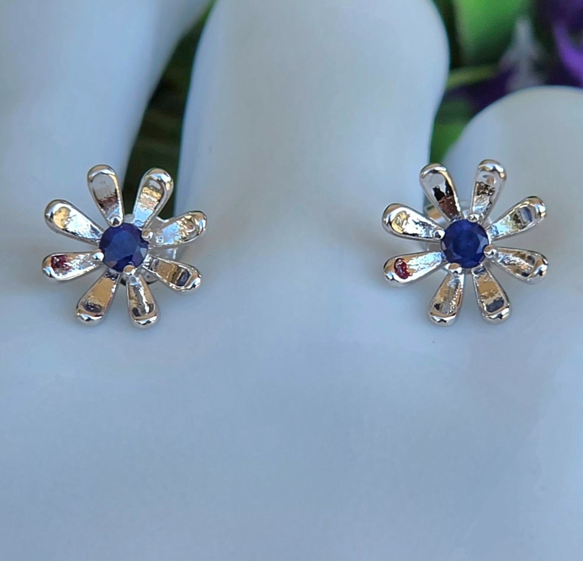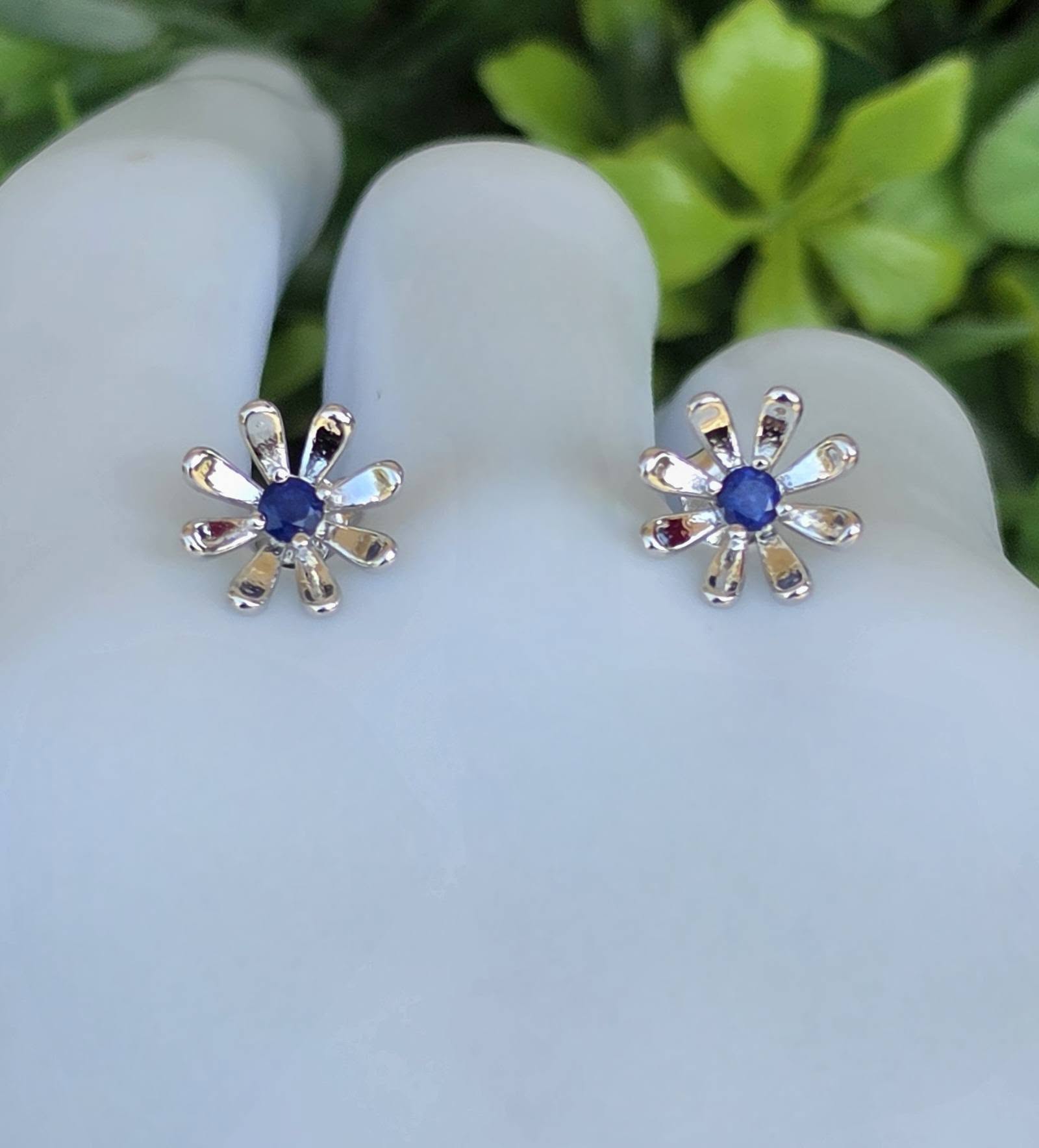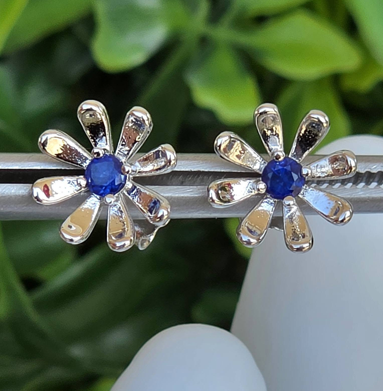 Cercei contemporani deosebiți, din argint placat cu aur alb de 18K, cu două superbe safire naturale.