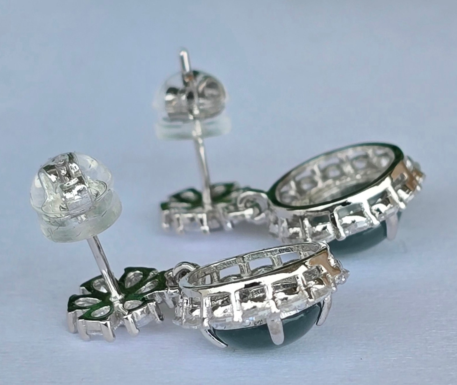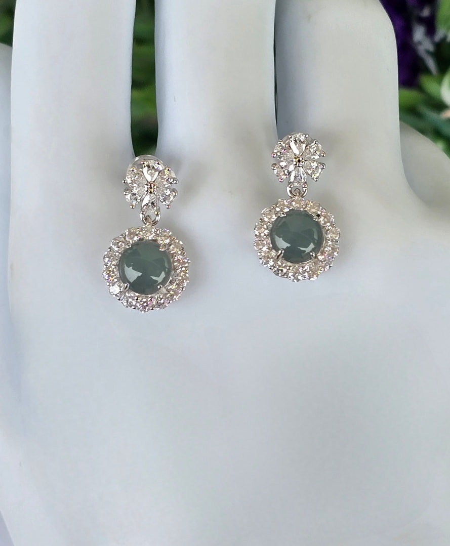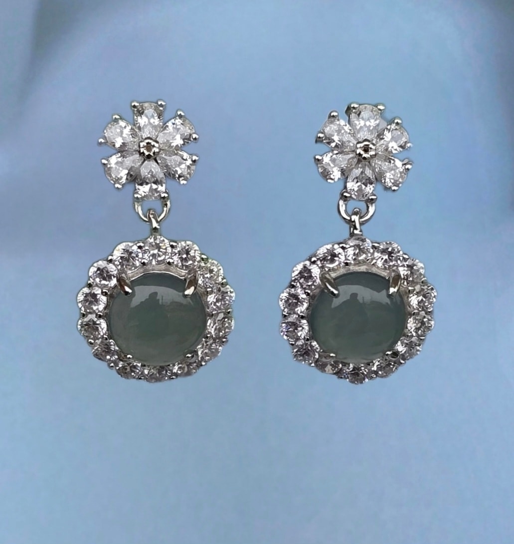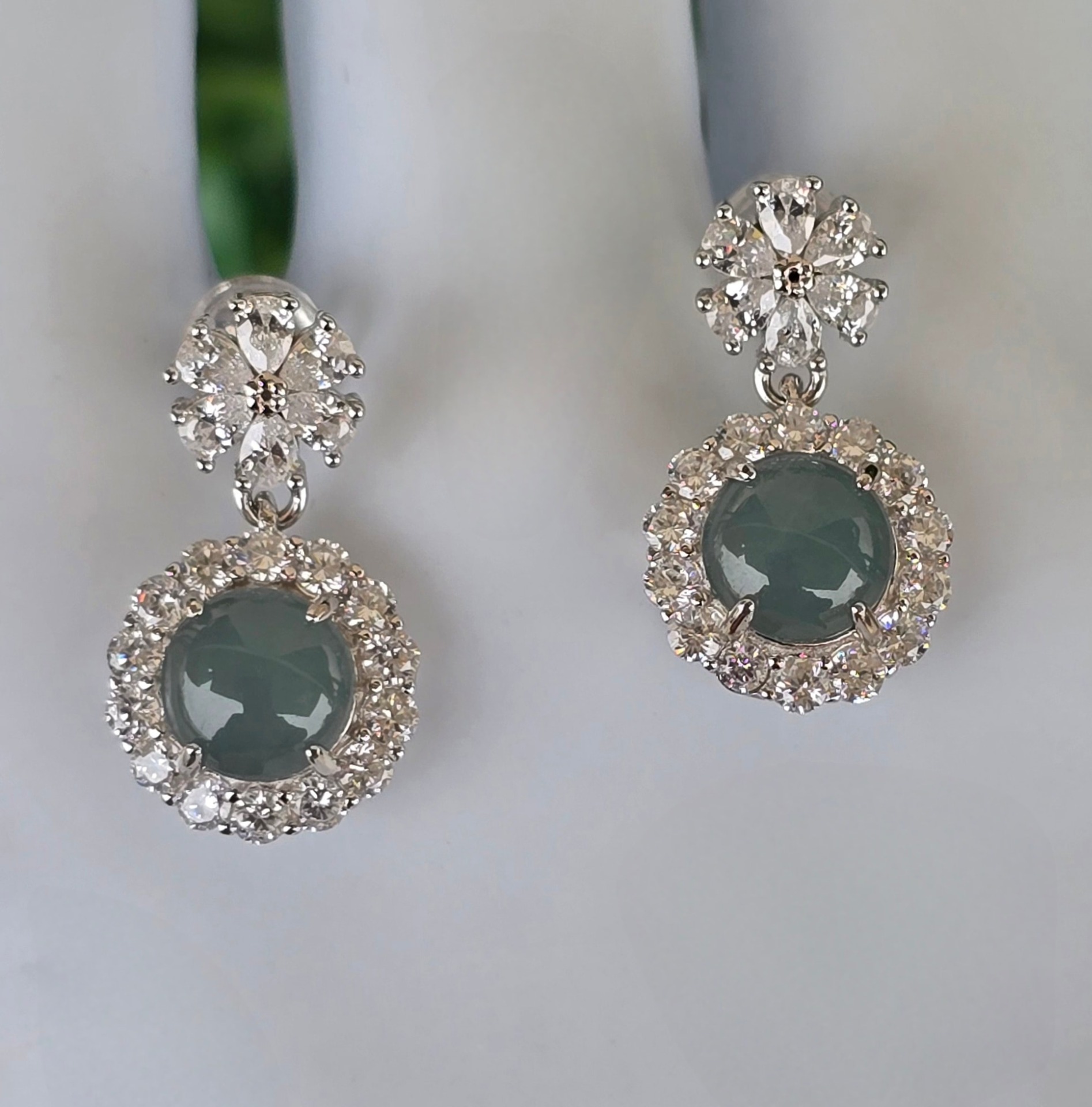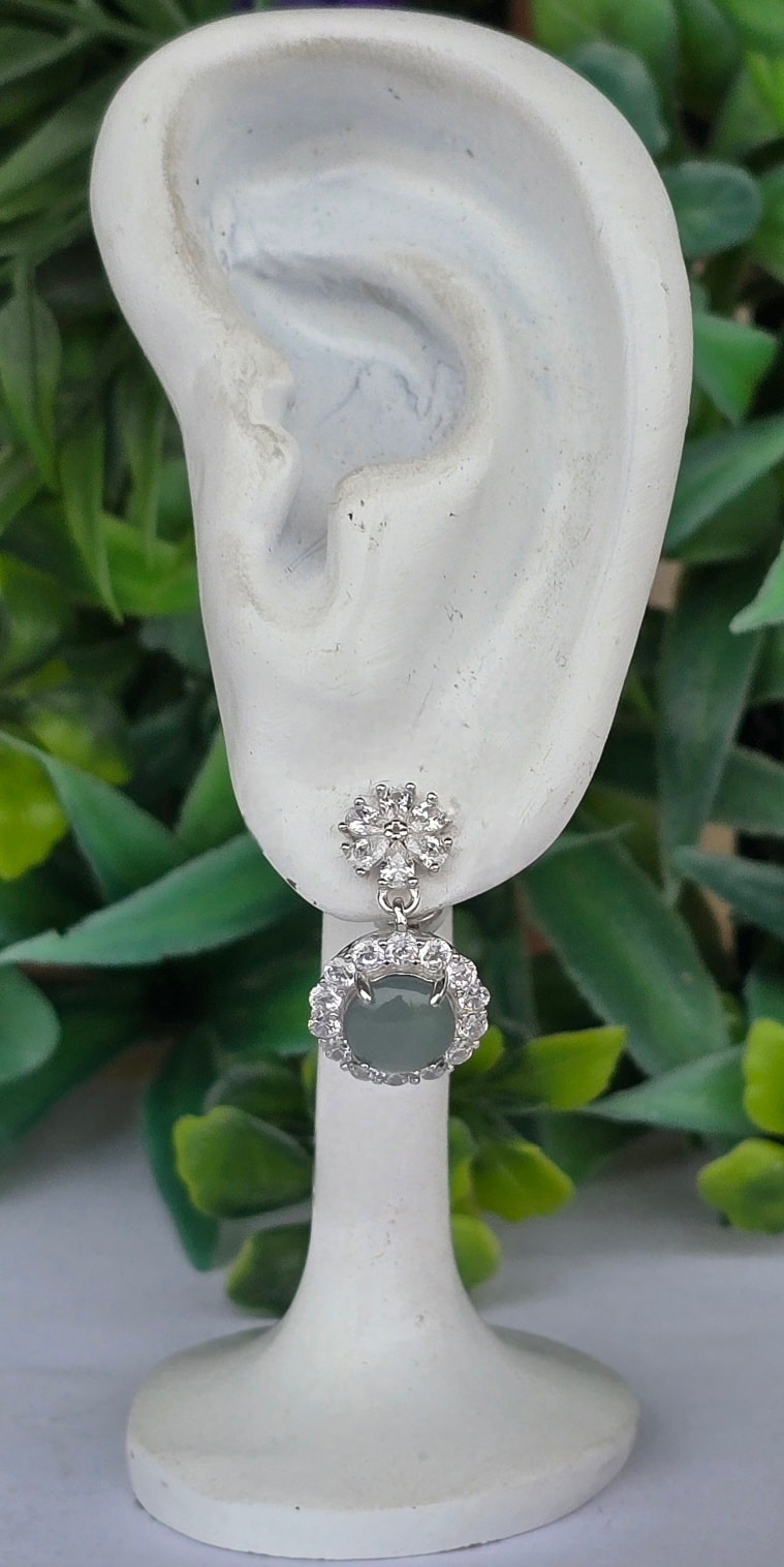 Cercei contemporani din argint platinat, cu jadeit natural și pietre cubic zirconia.