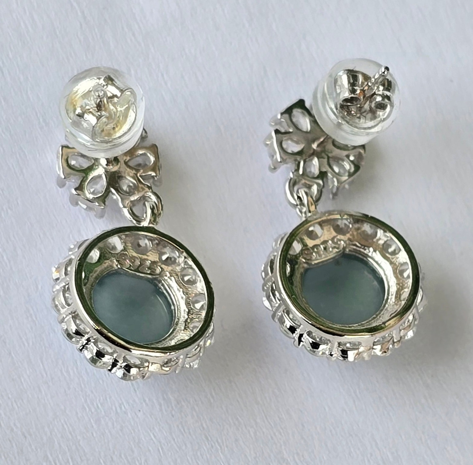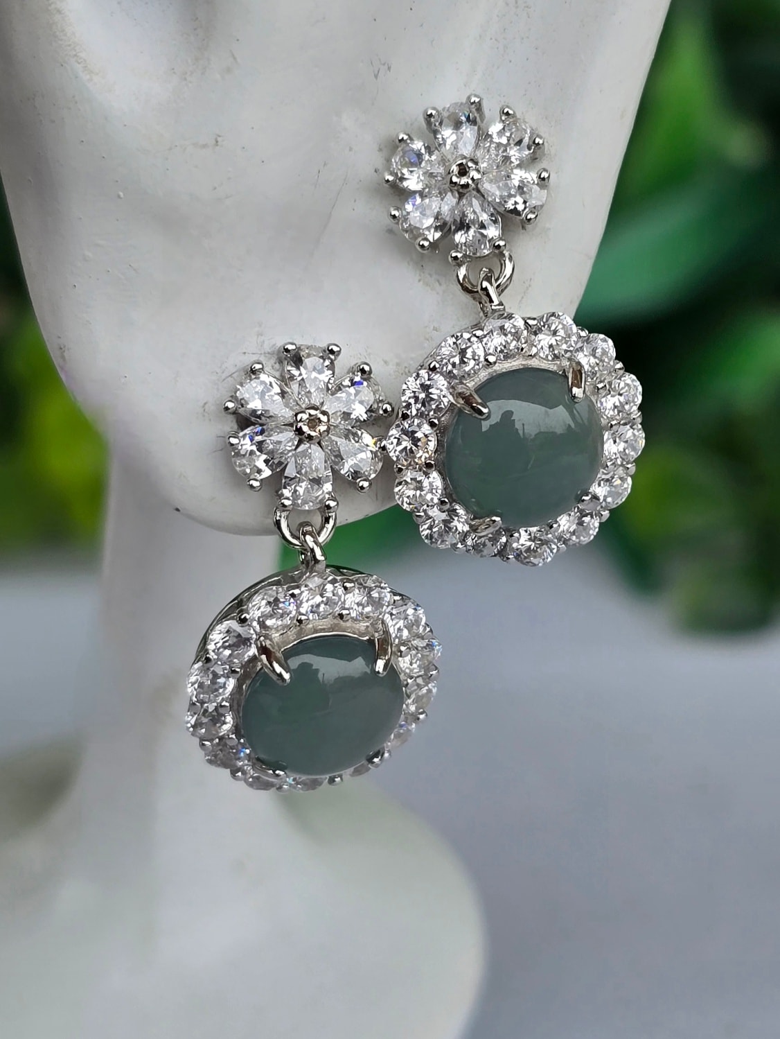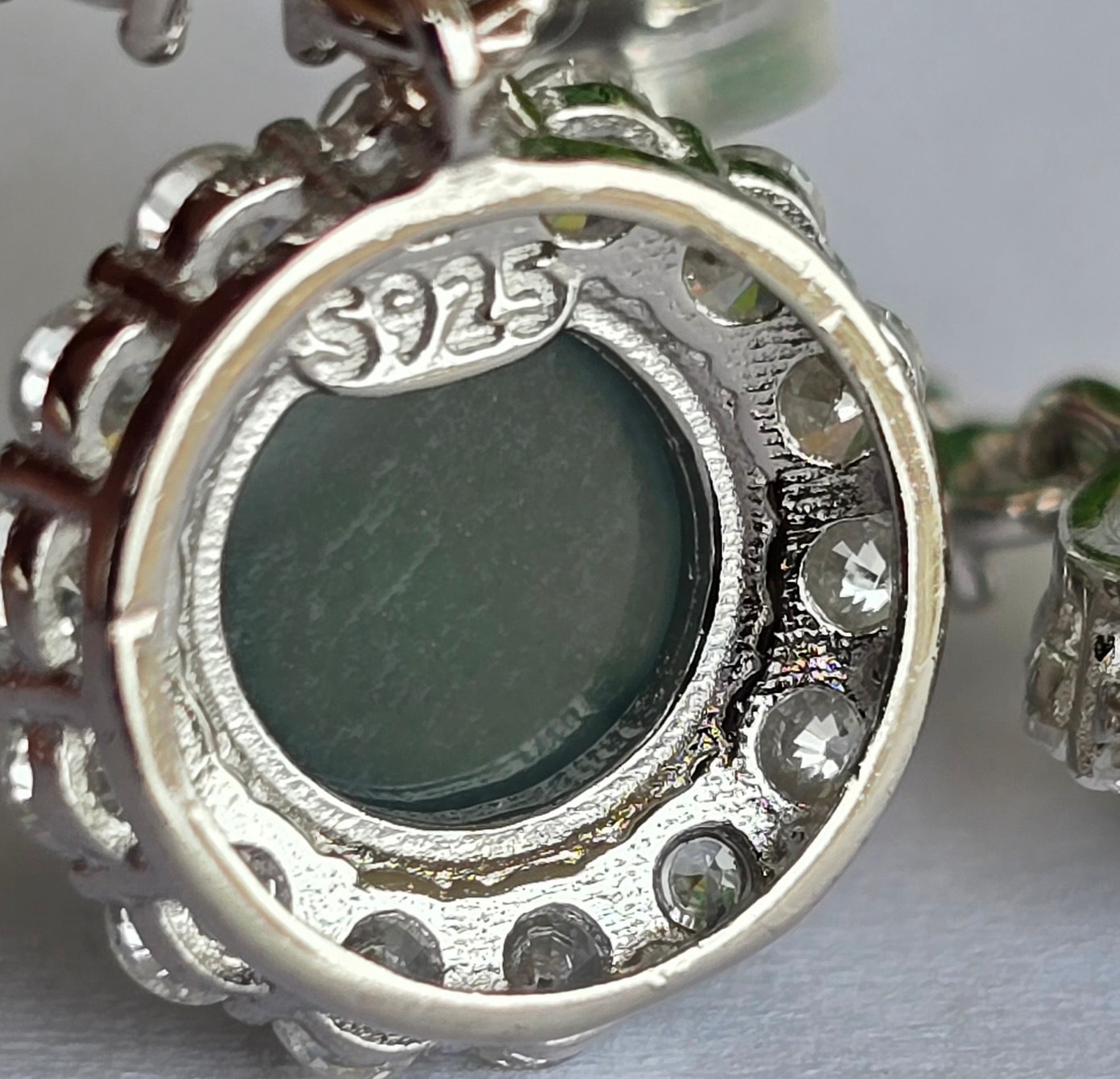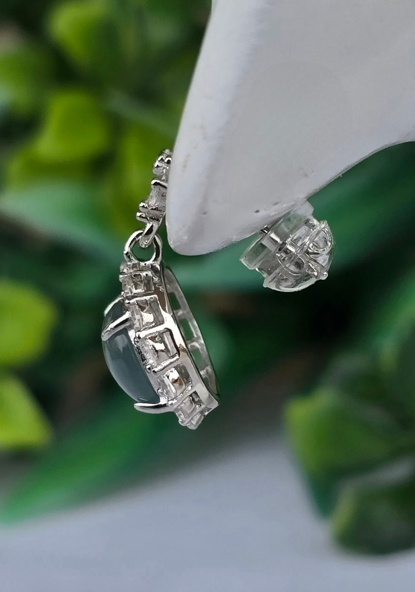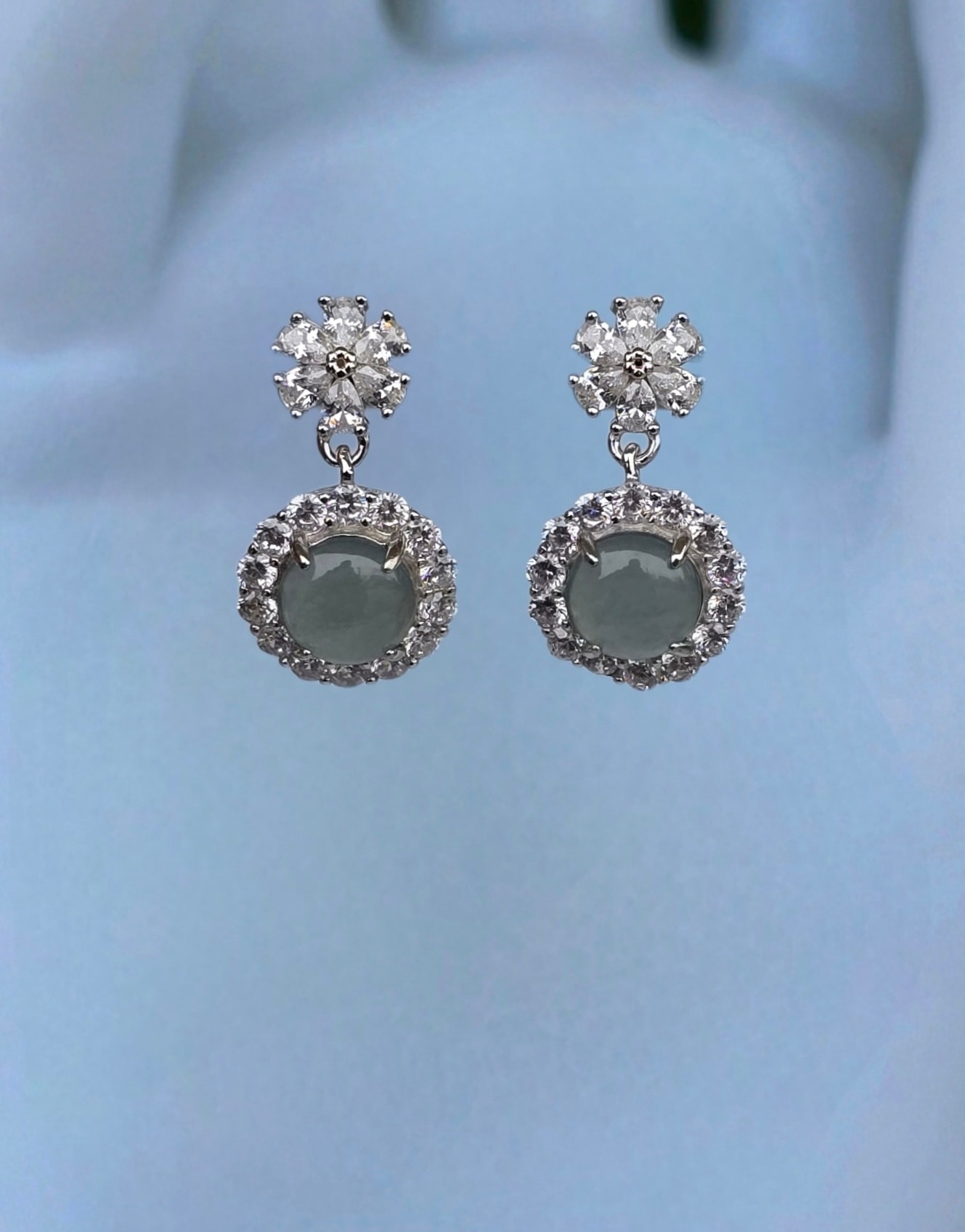 Cercei contemporani din argint platinat, cu jadeit natural și pietre cubic zirconia.
