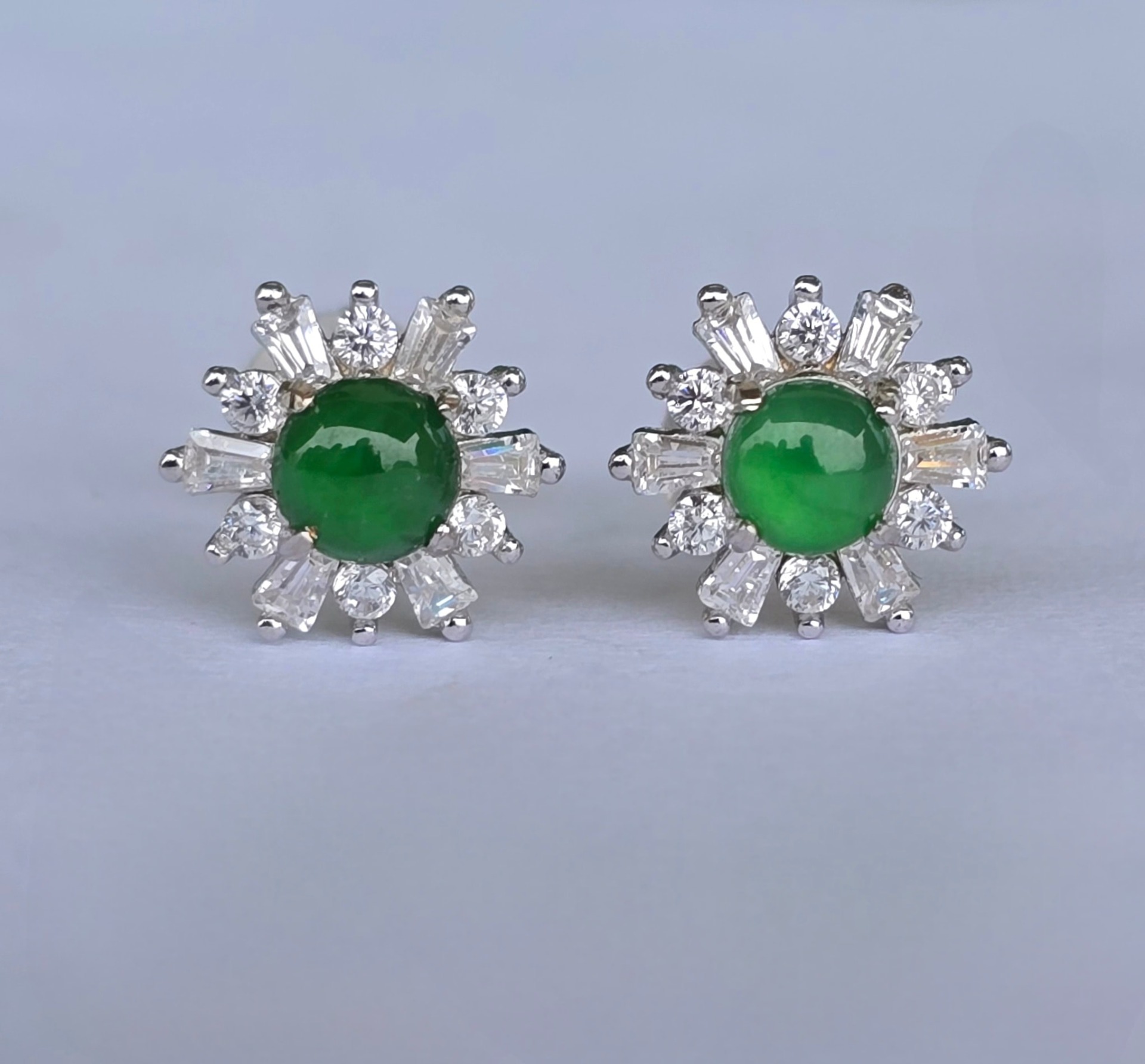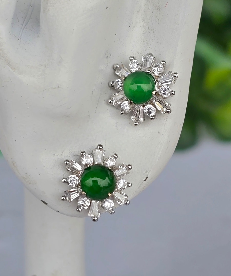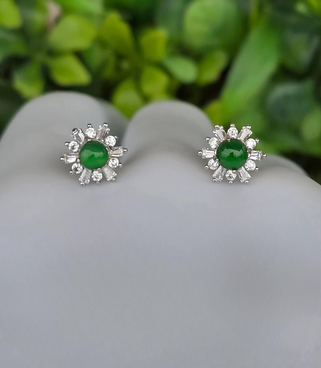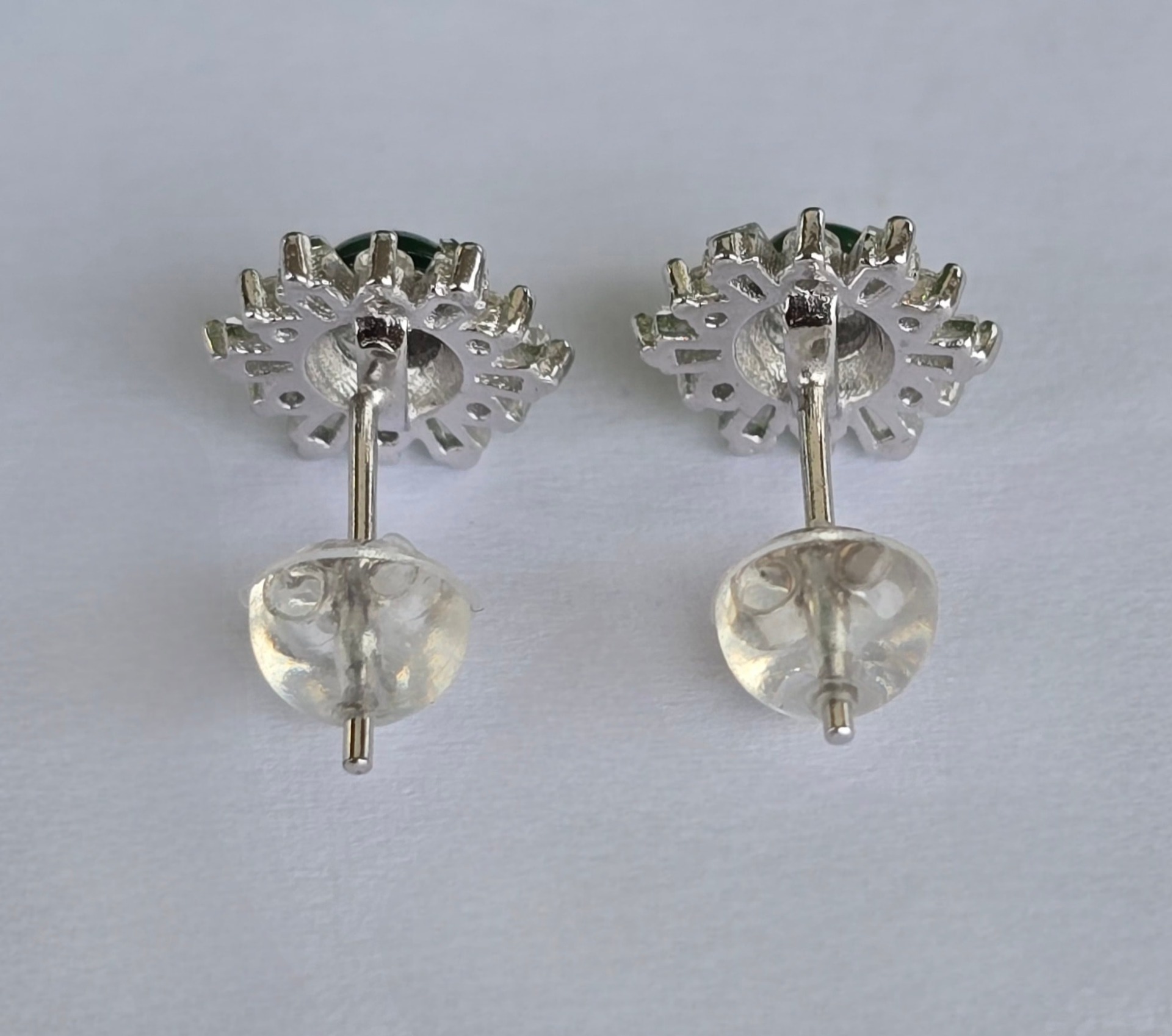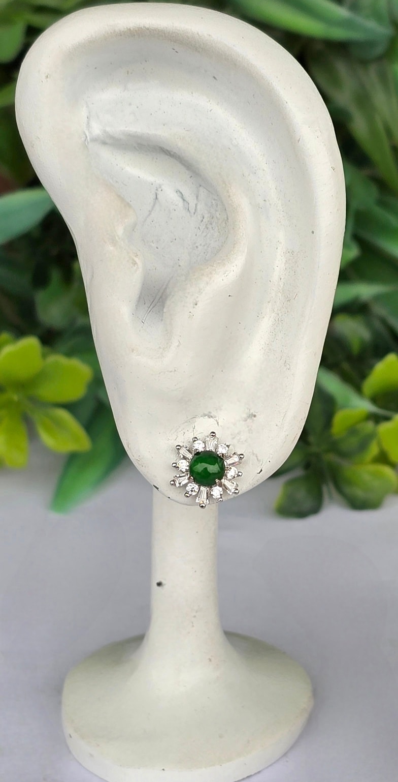 Cercei contemporani din argint platinat, cu jadeit natural și pietre cubic zirconia.