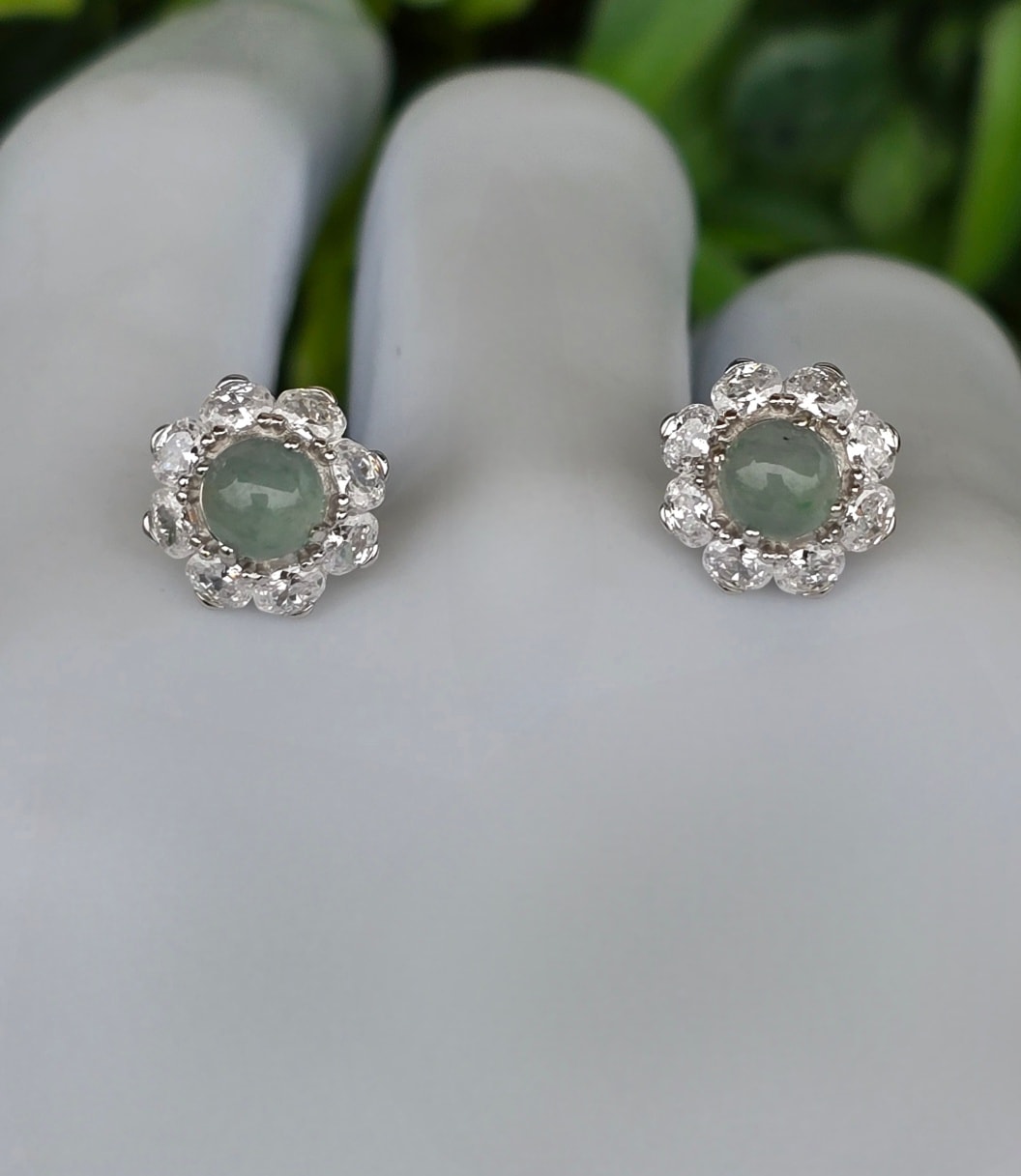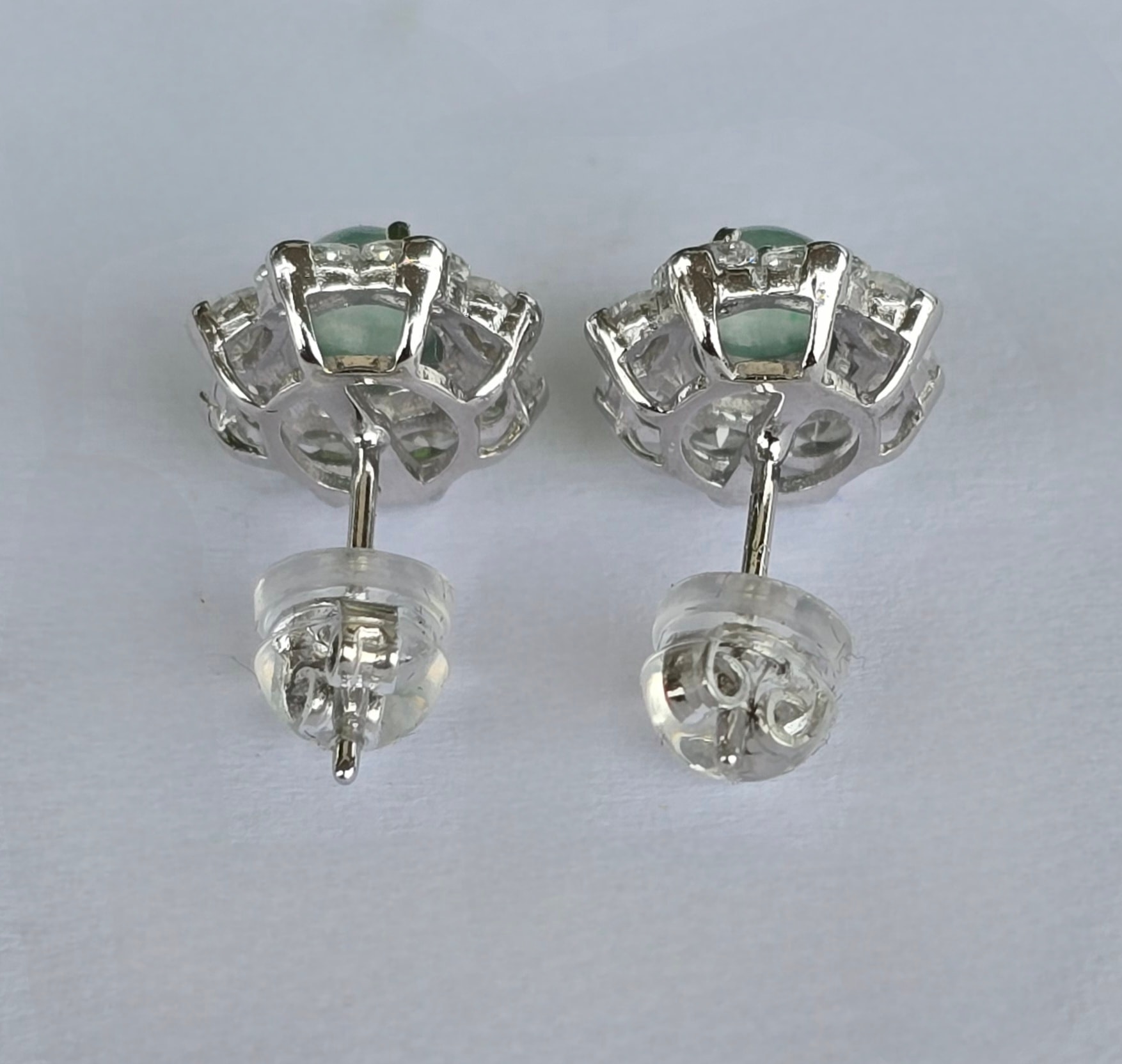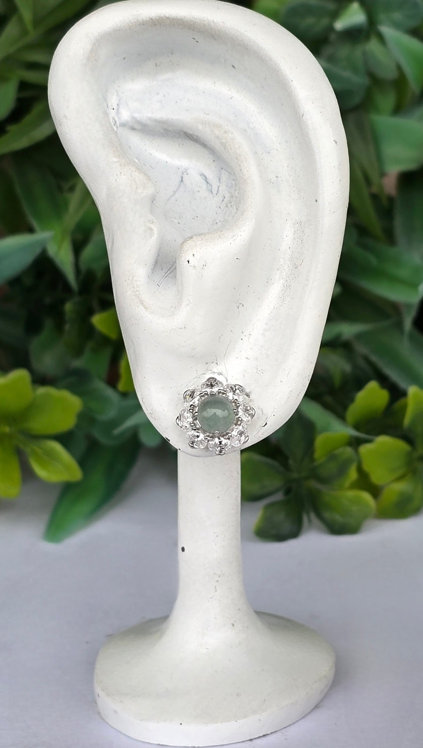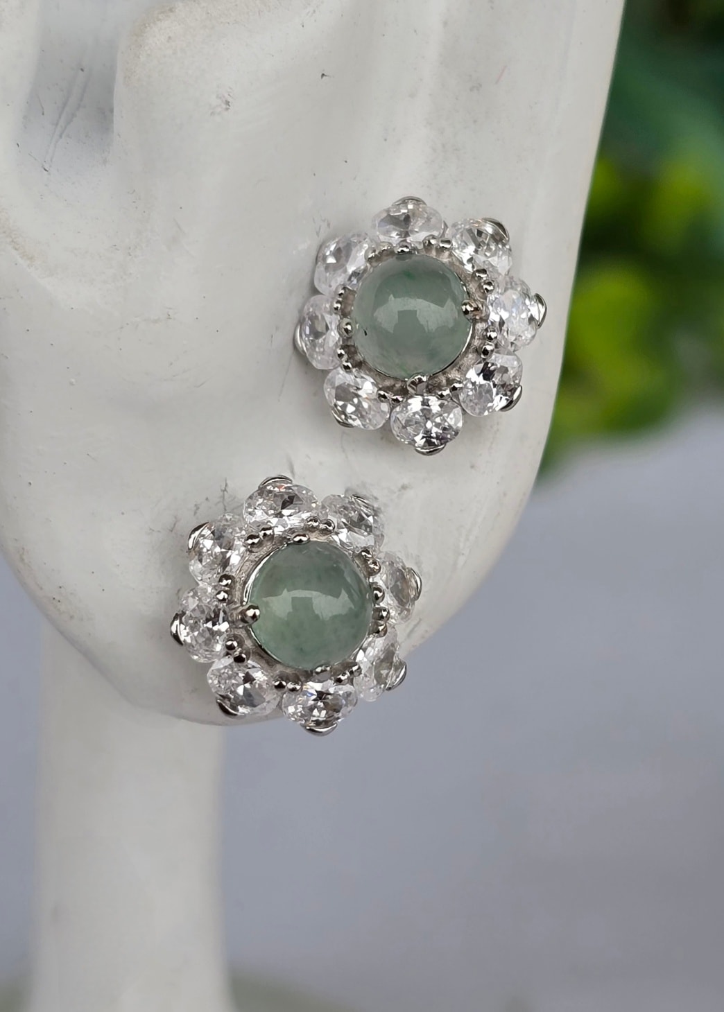 Cercei contemporani din argint platinat, cu jadeit natural și pietre cubic zirconia.