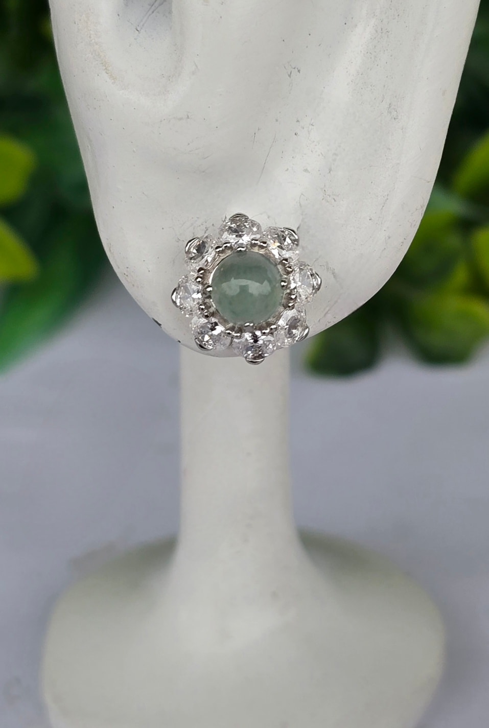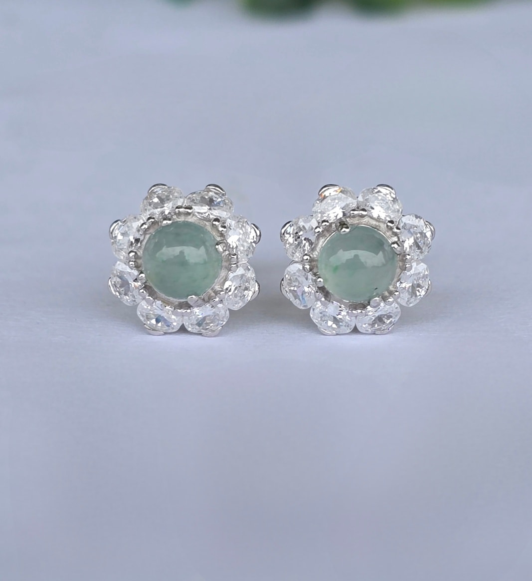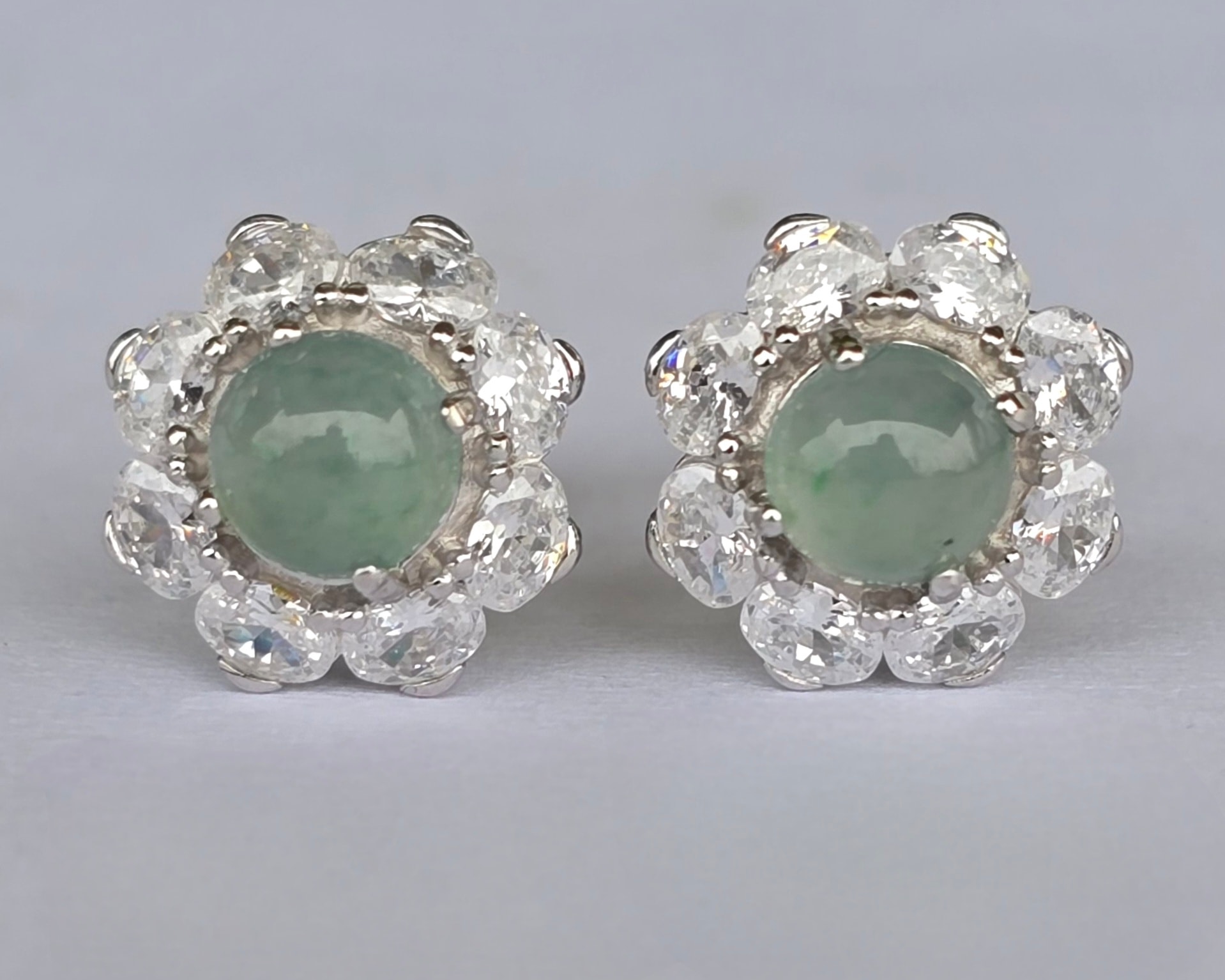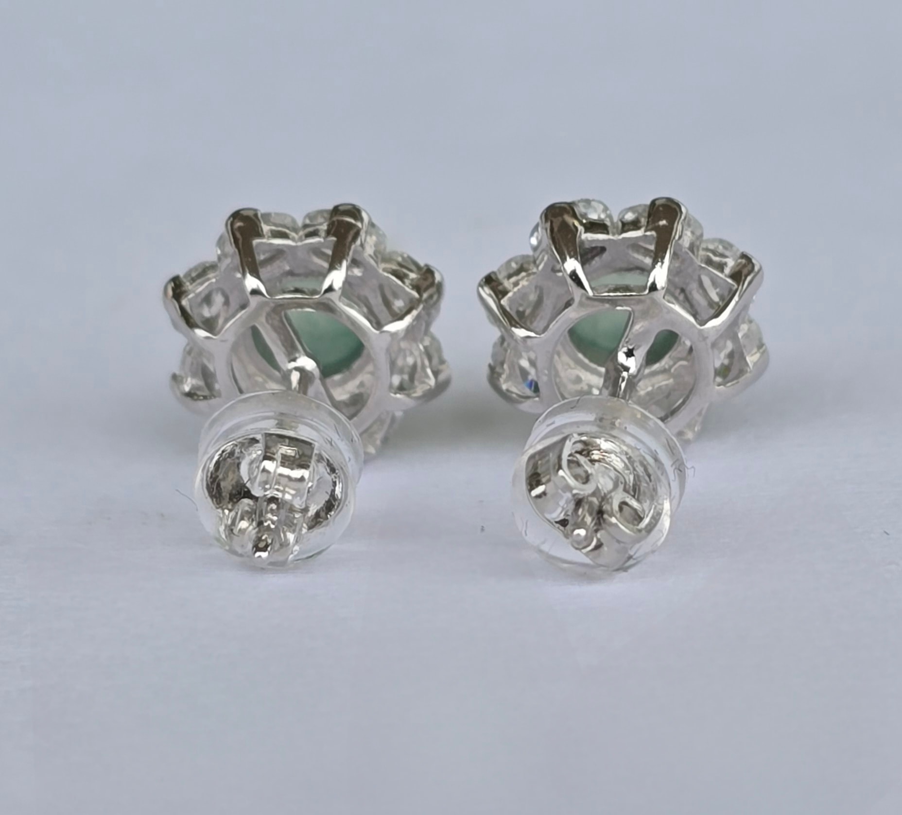 Cercei contemporani din argint platinat, cu jadeit natural și pietre cubic zirconia.