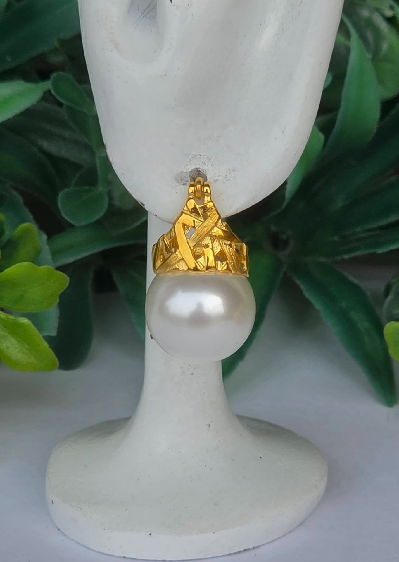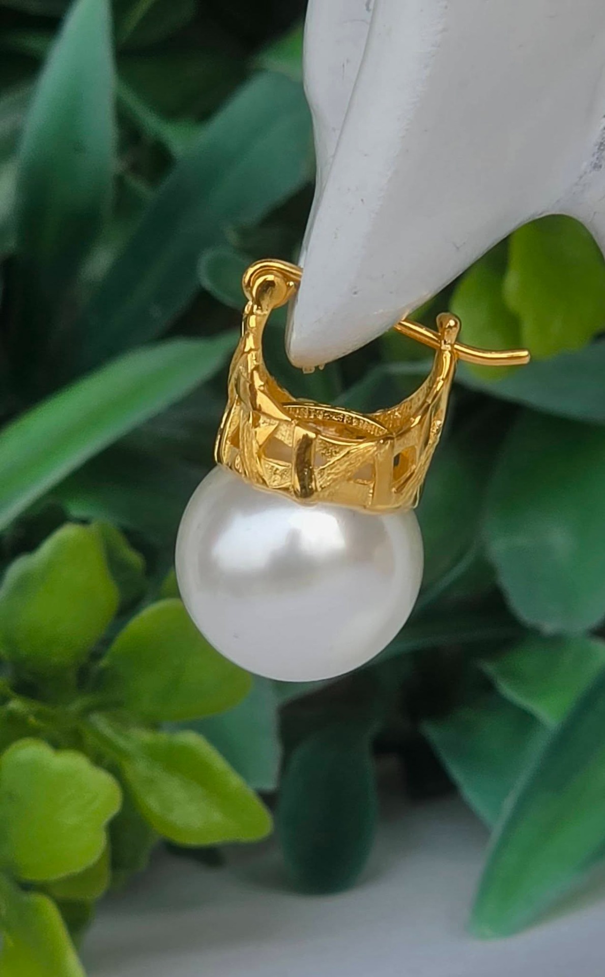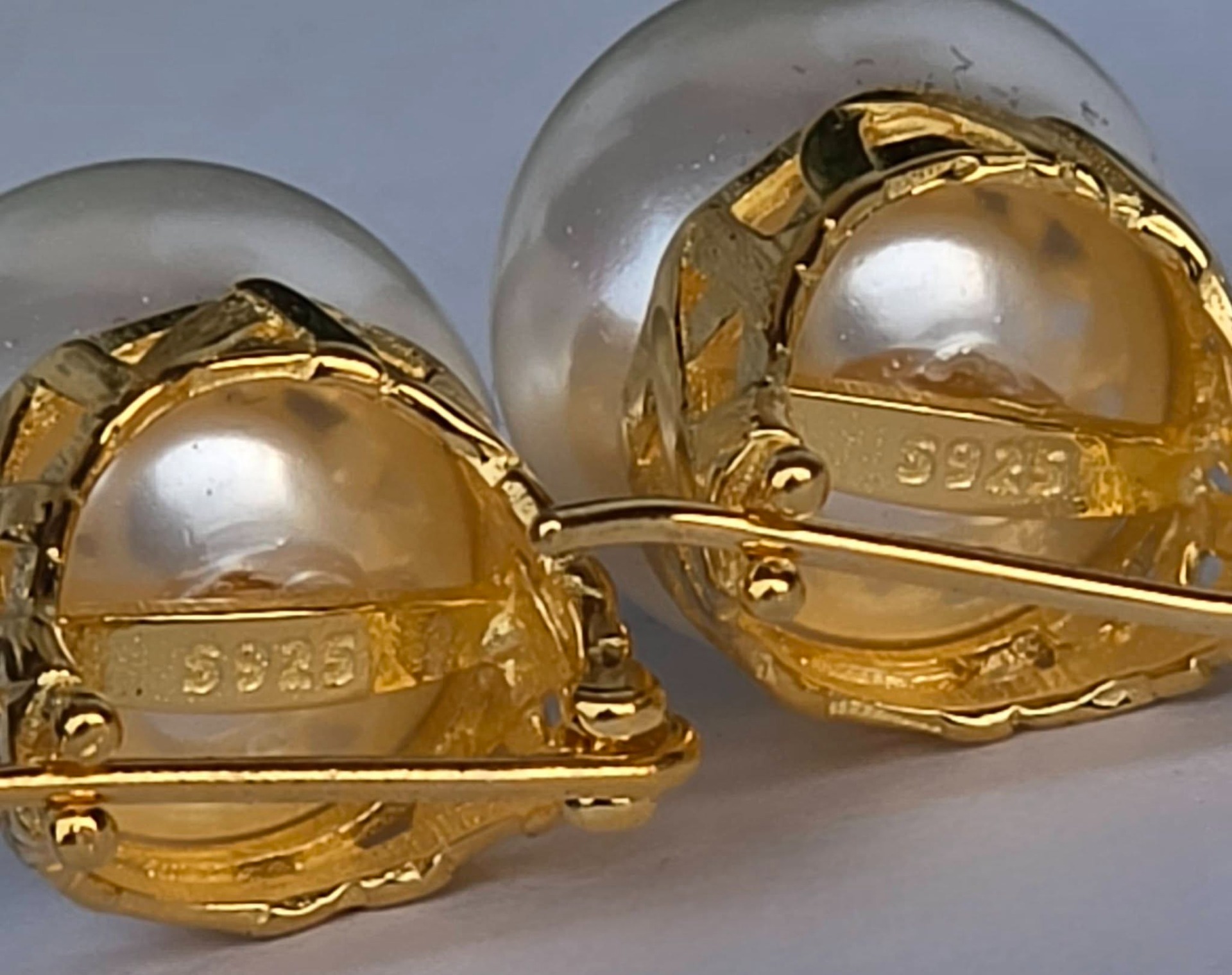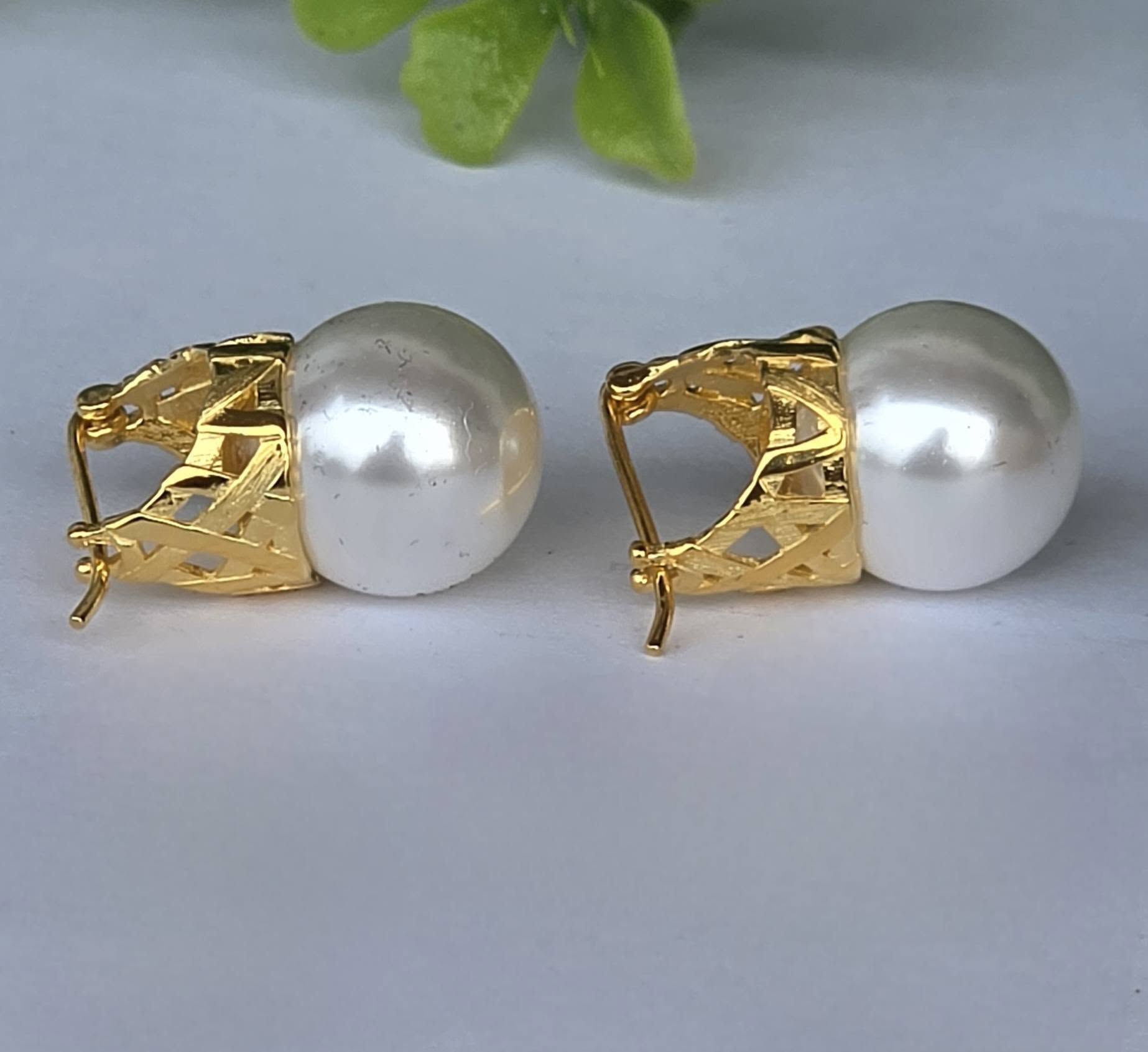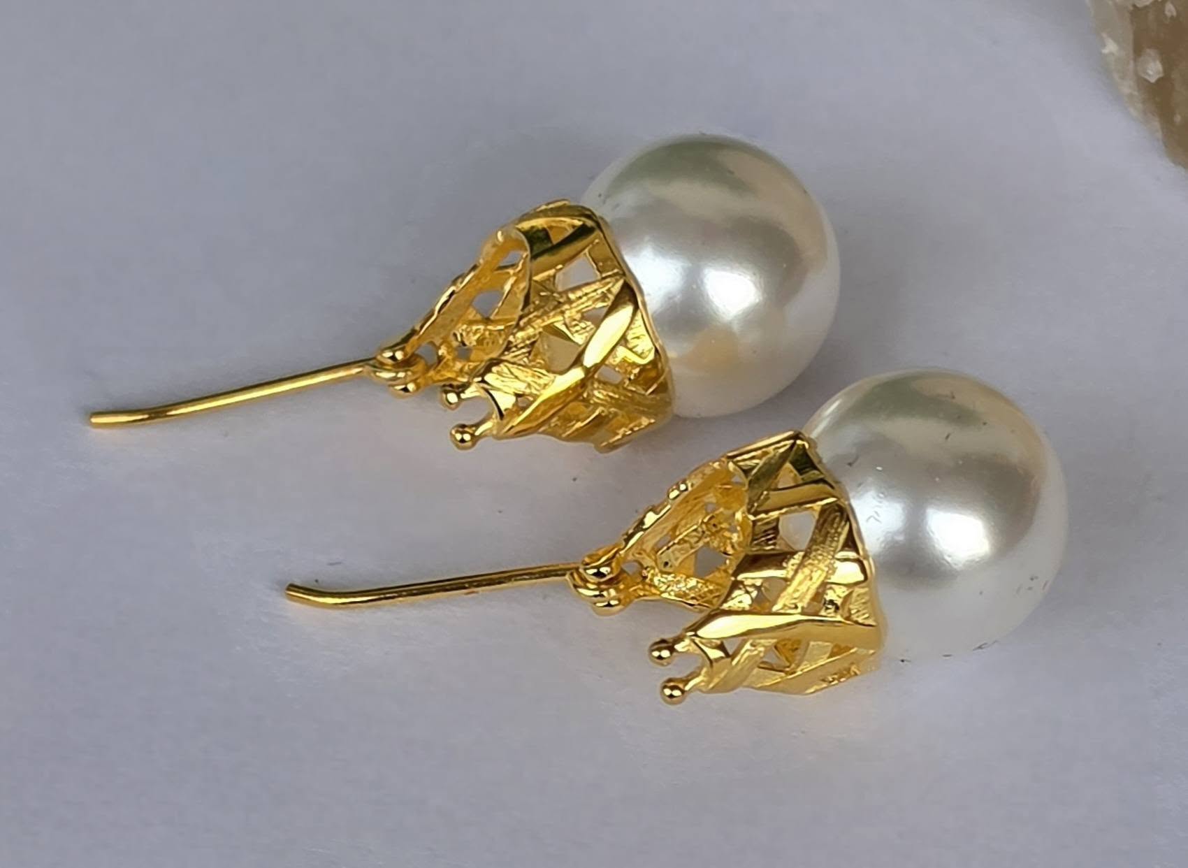 Cercei contemporani impresionanți, din argint aurit, cu perle "shell" sintetice de înaltă calitate.
