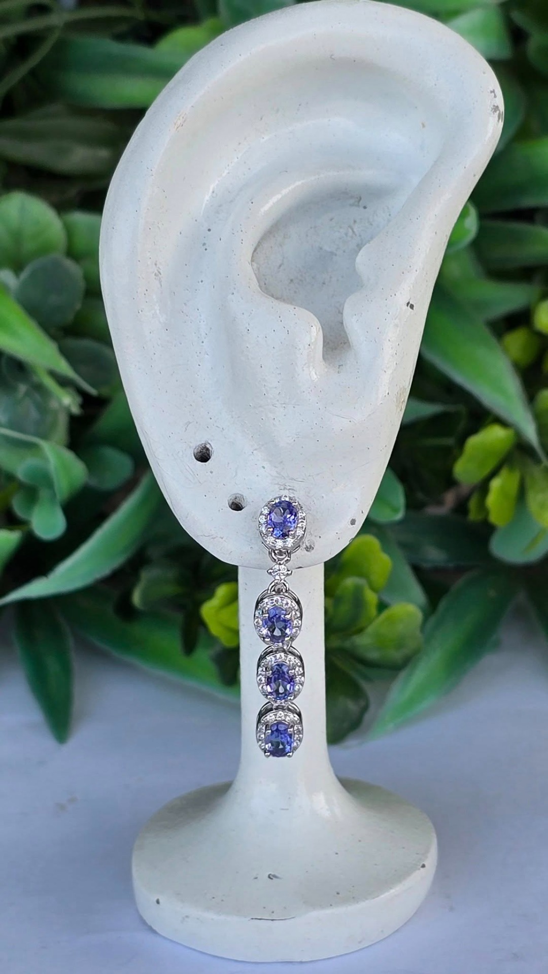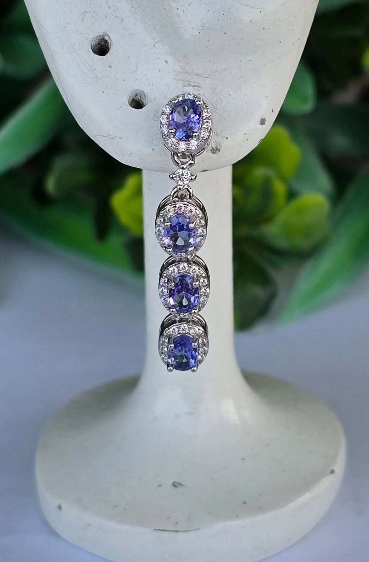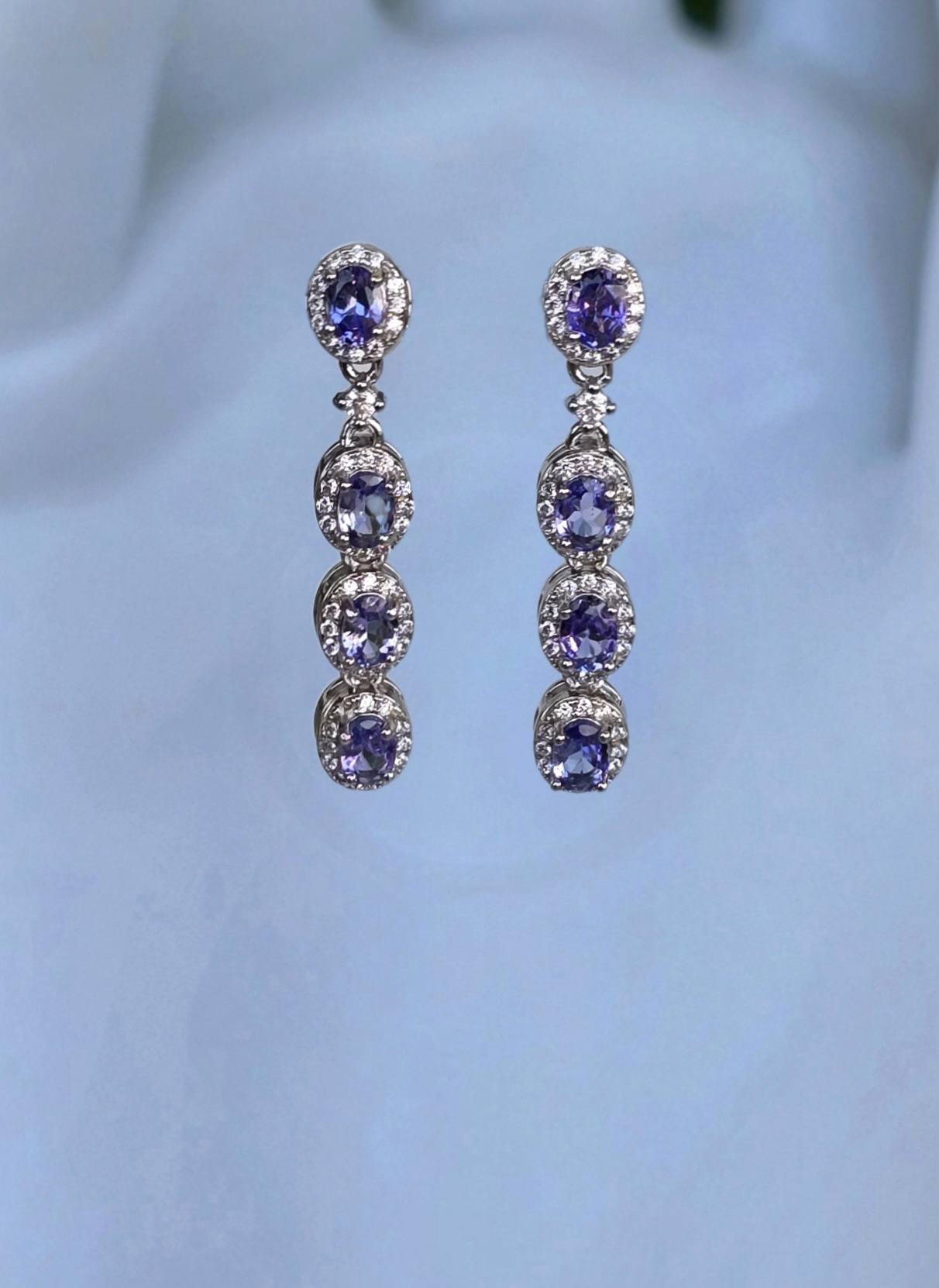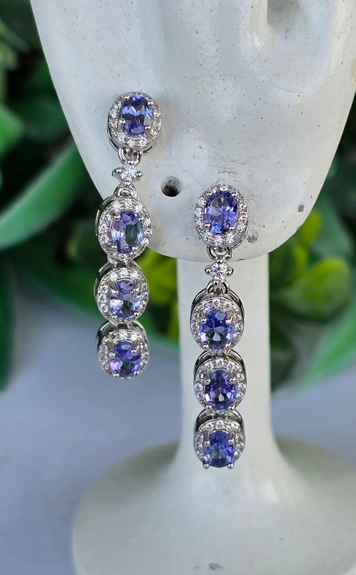 Cercei contemporani impresionanți, din argint platinat, cu 8 tanzanite naturale și pietre cubic zirconia.