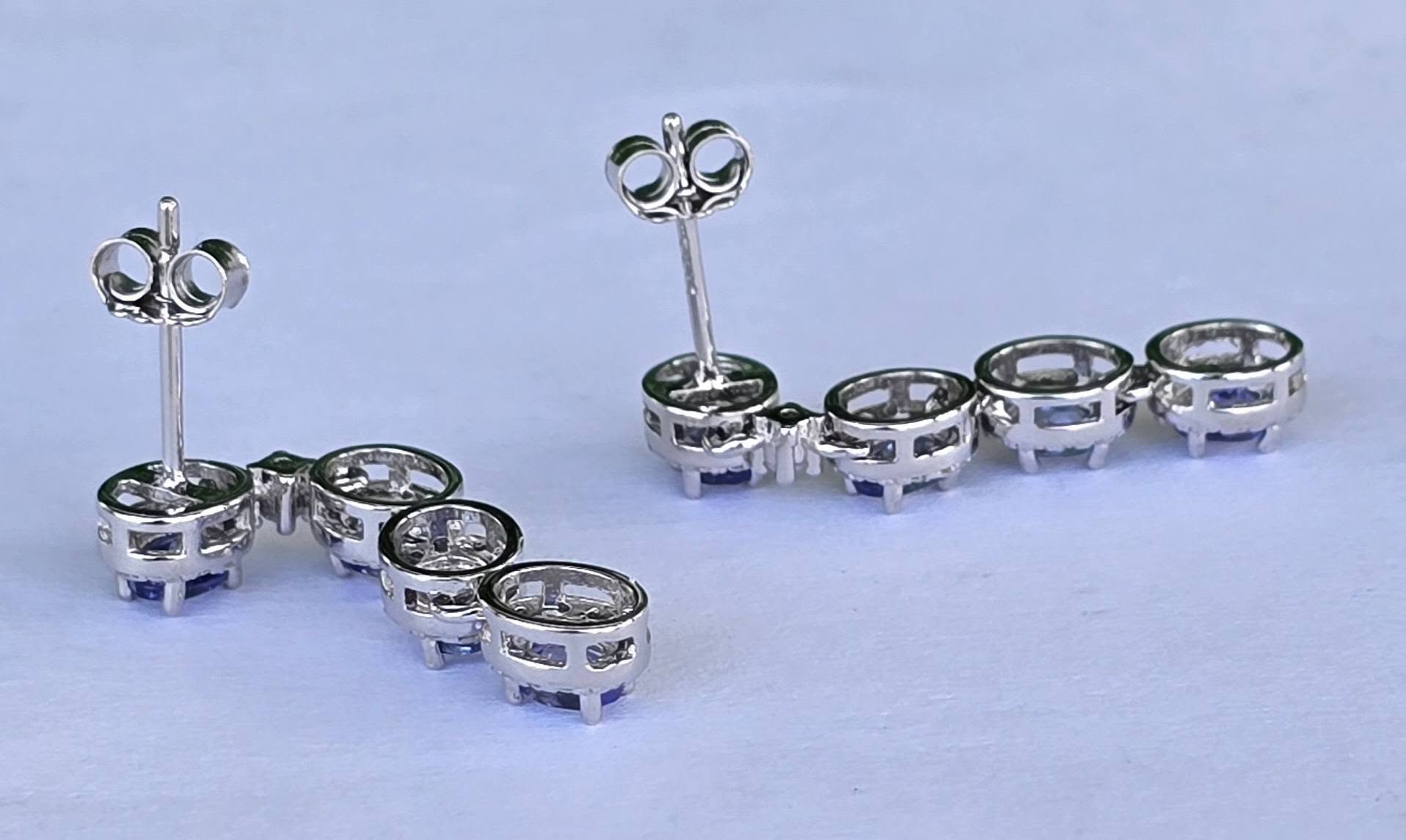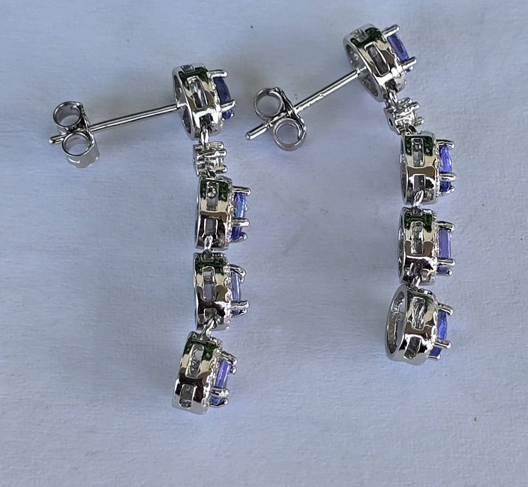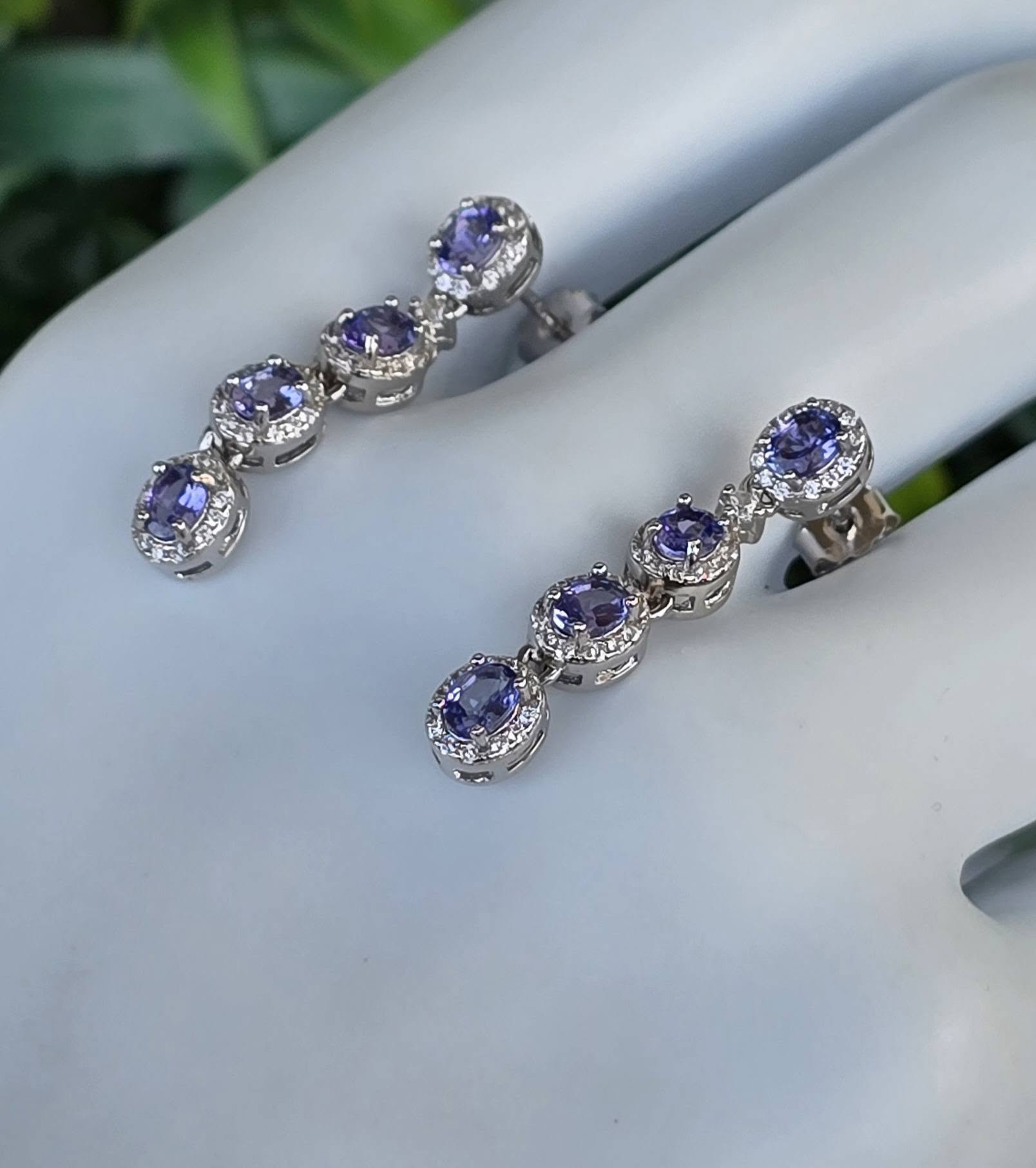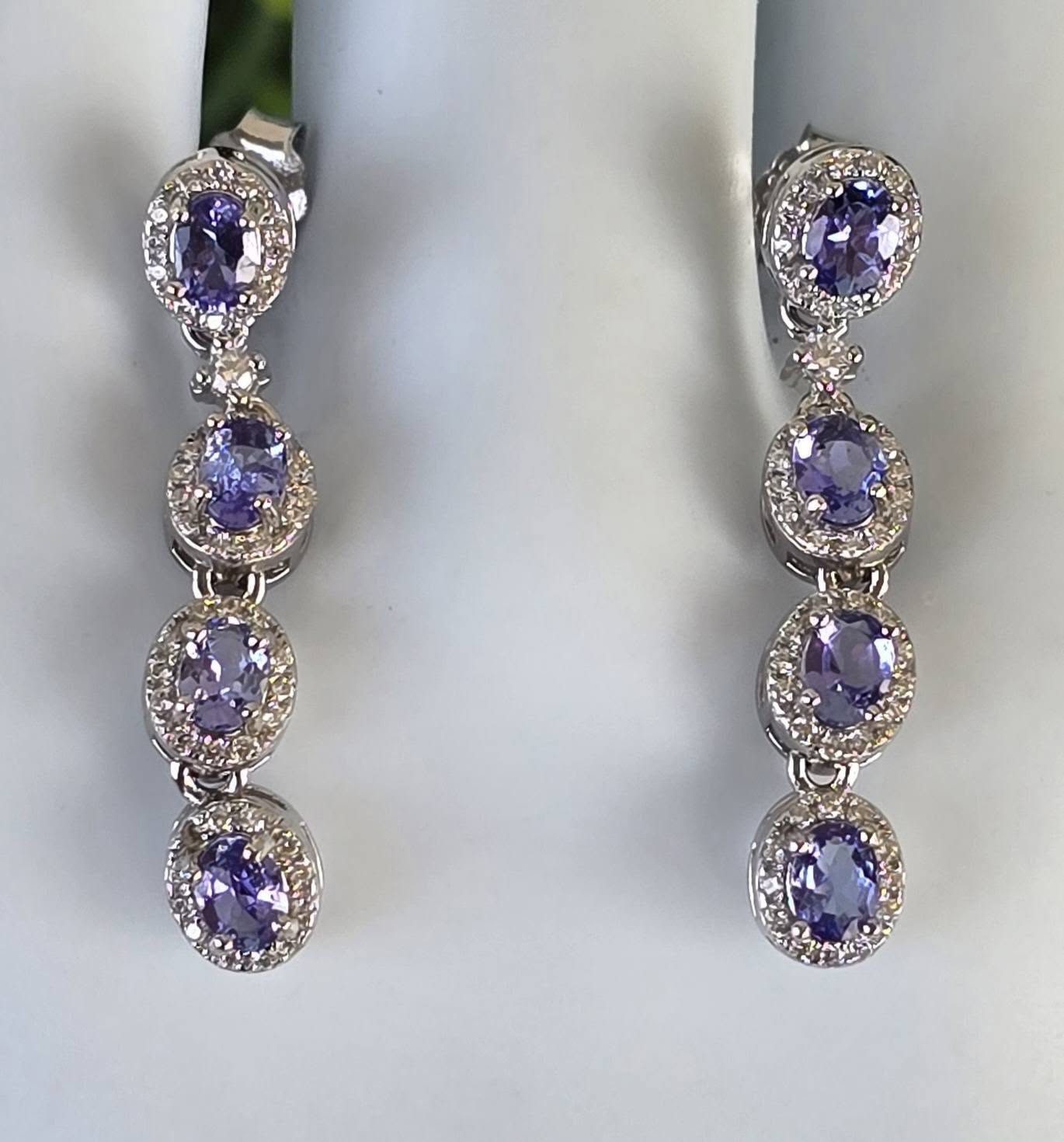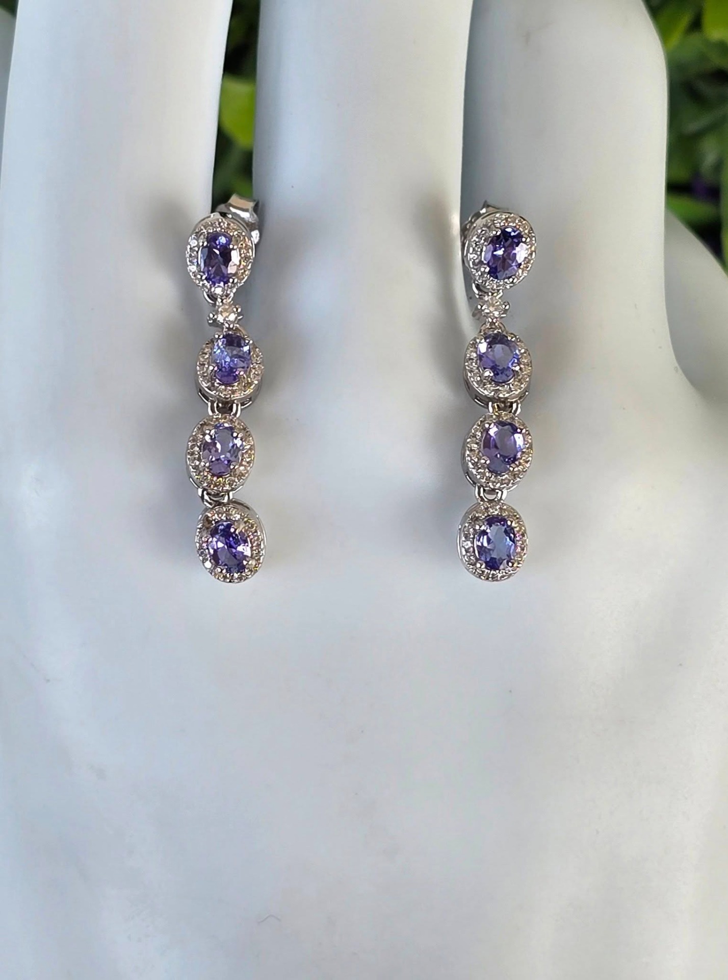 Cercei contemporani impresionanți, din argint platinat, cu 8 tanzanite naturale și pietre cubic zirconia.
