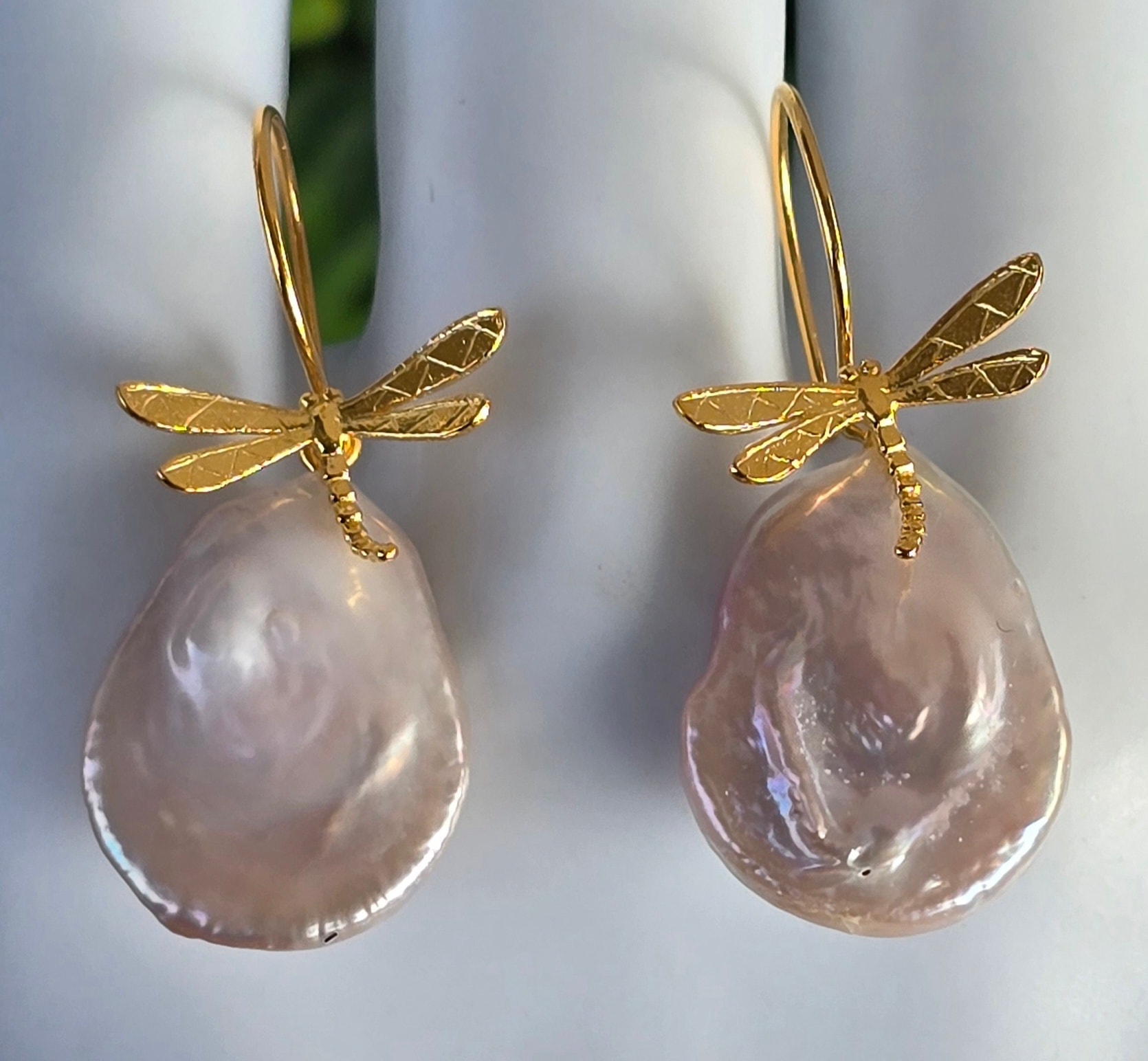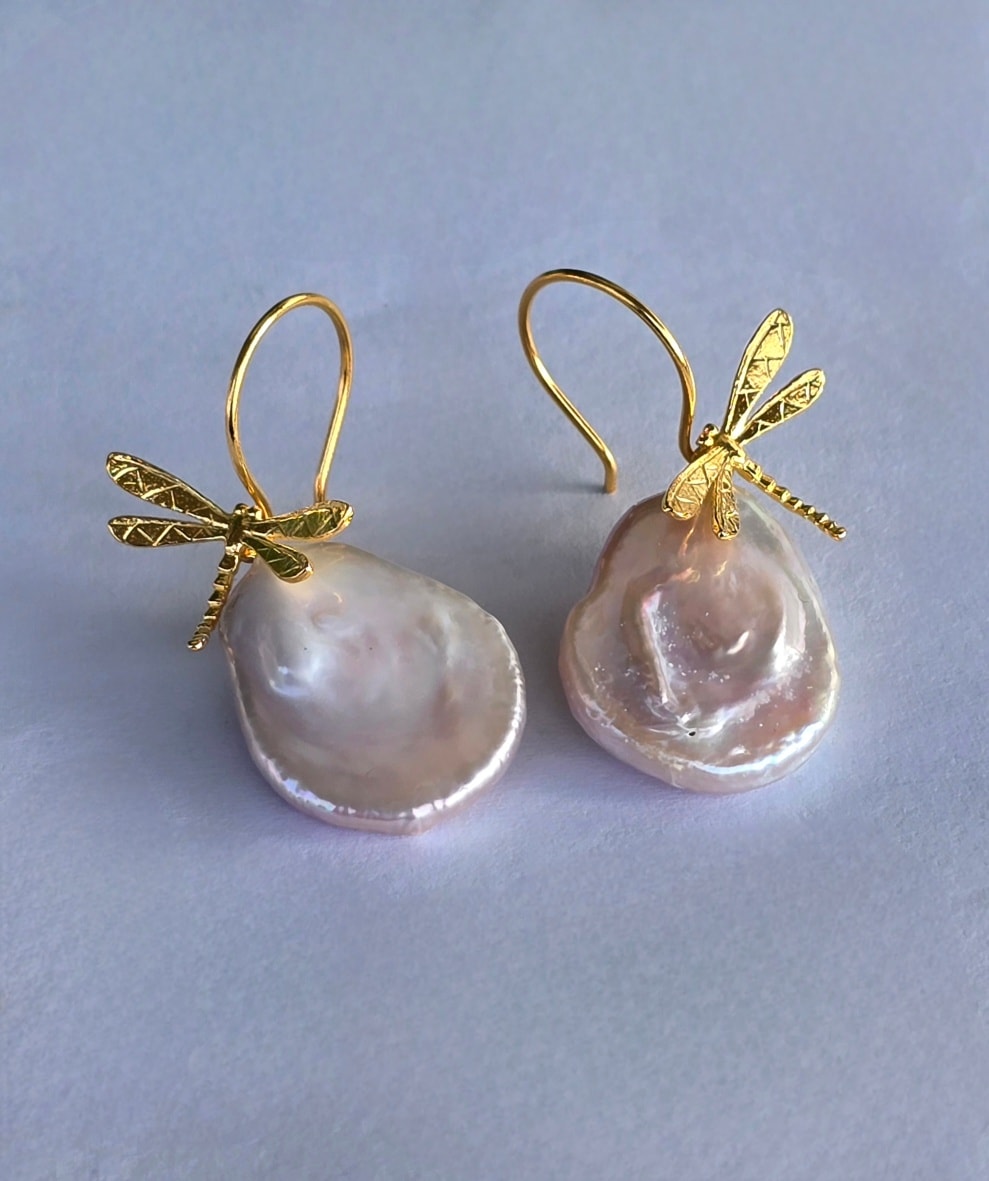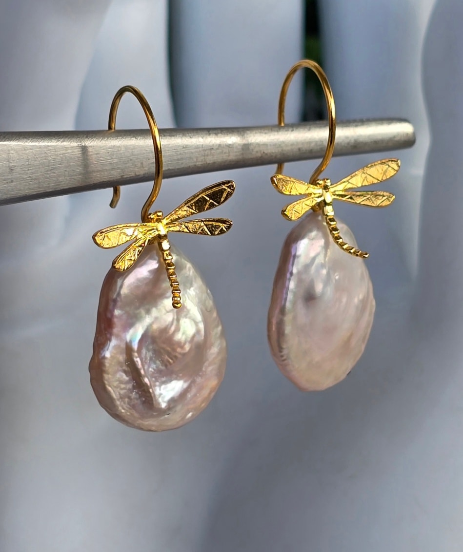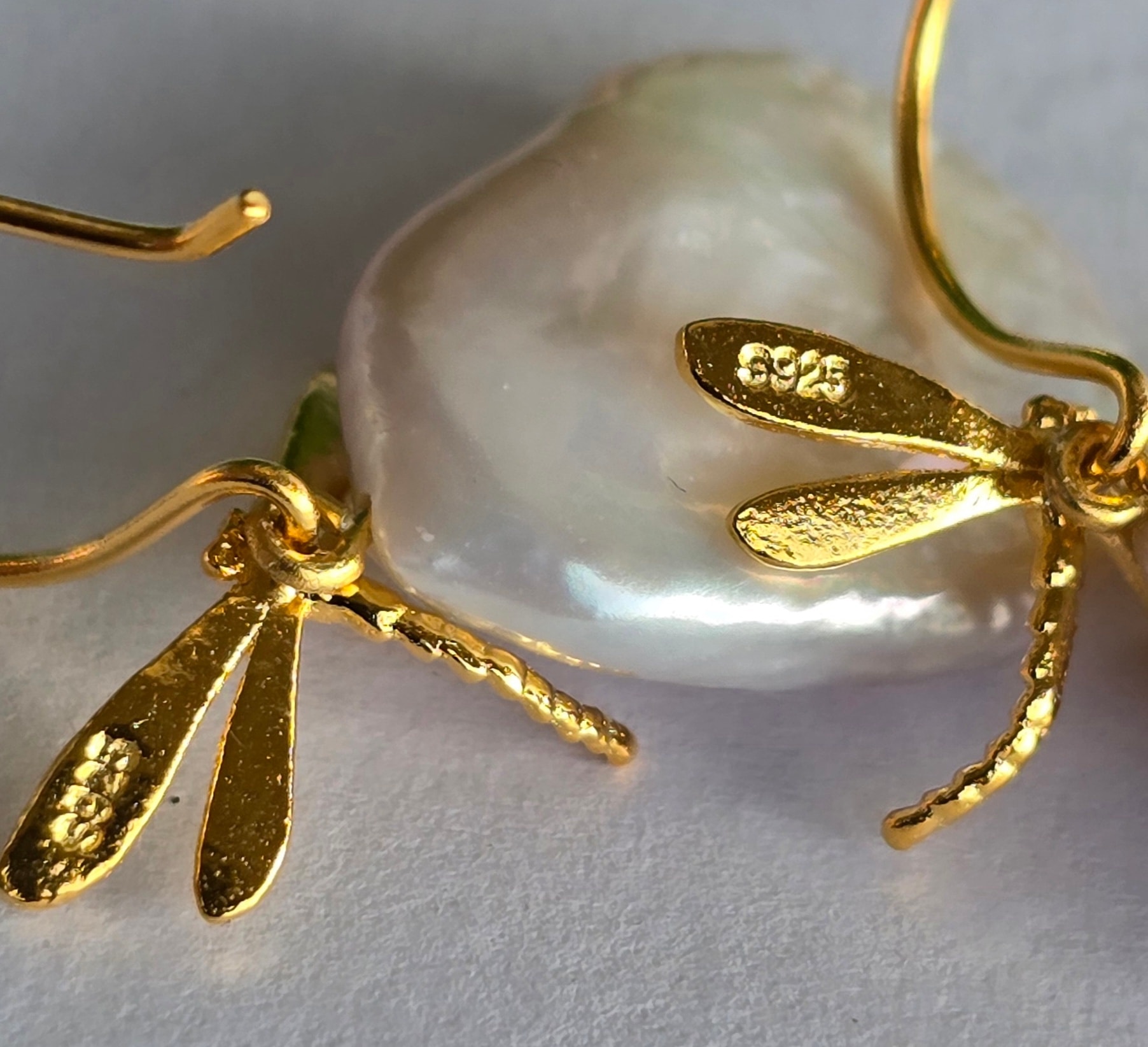 Cercei contemporani spectaculoși, din argint aurit, cu perle baroque naturale.