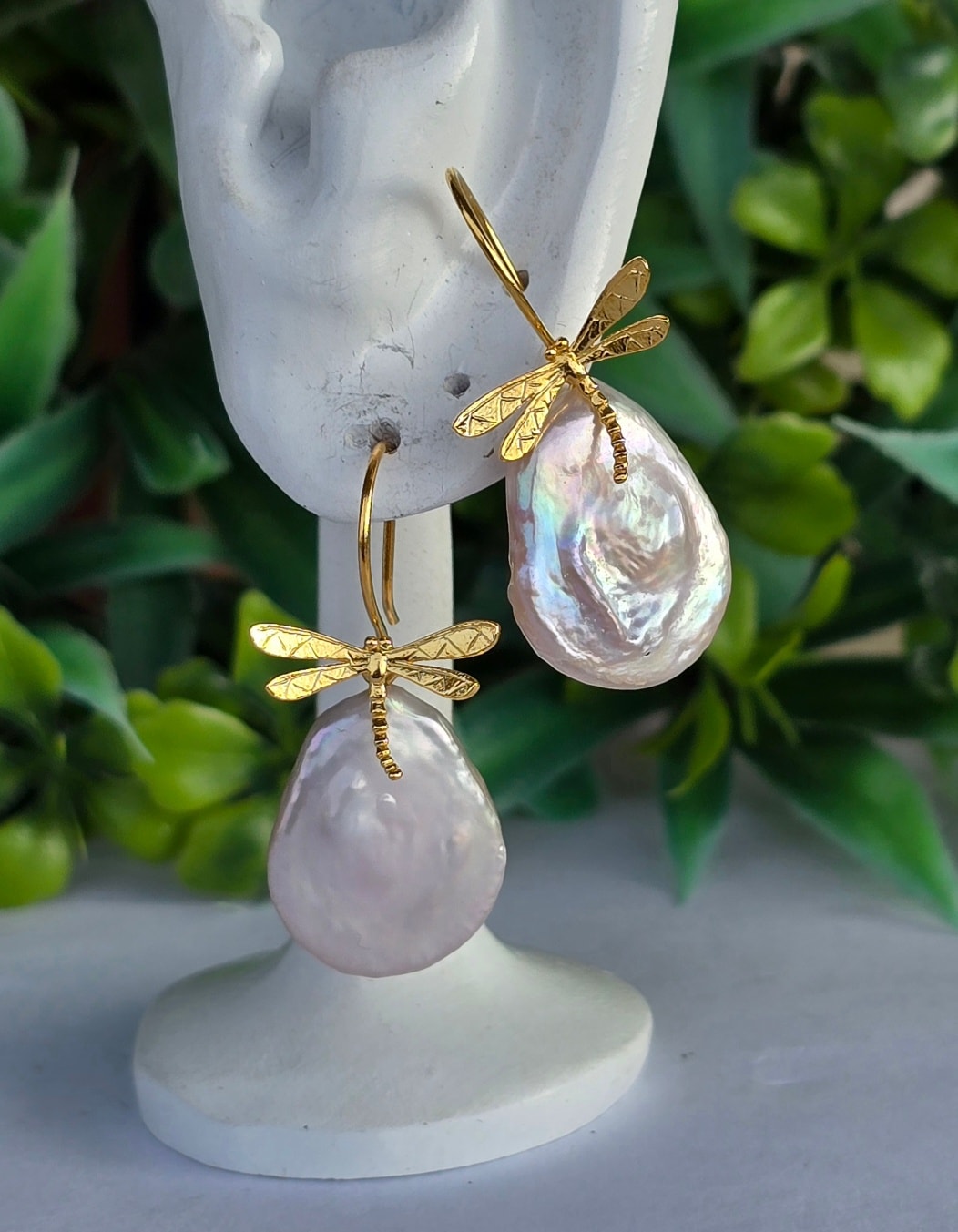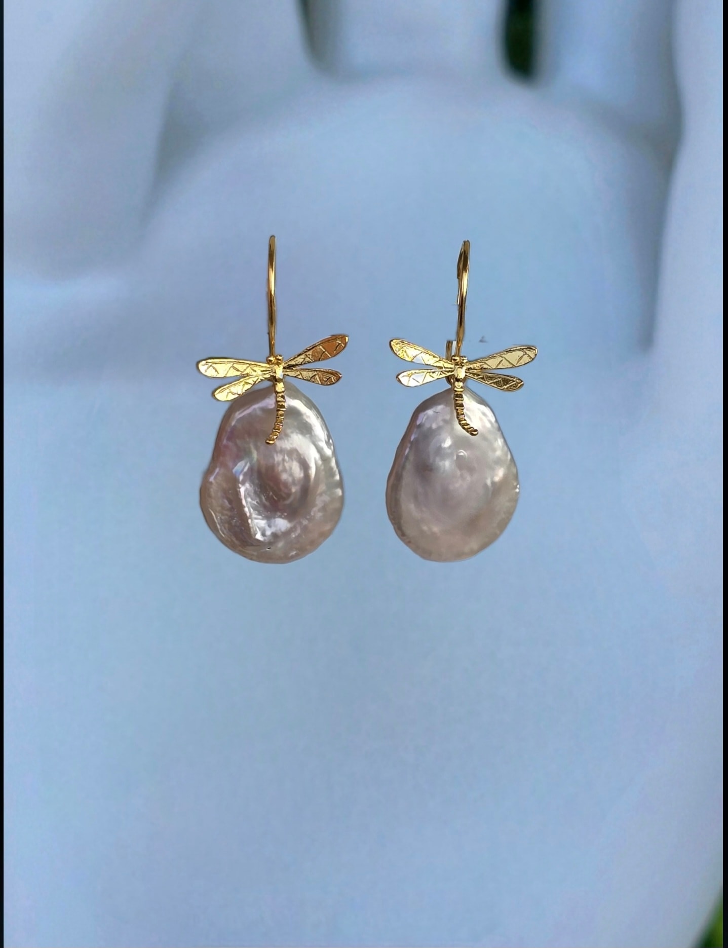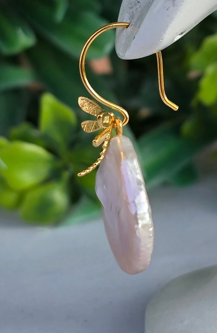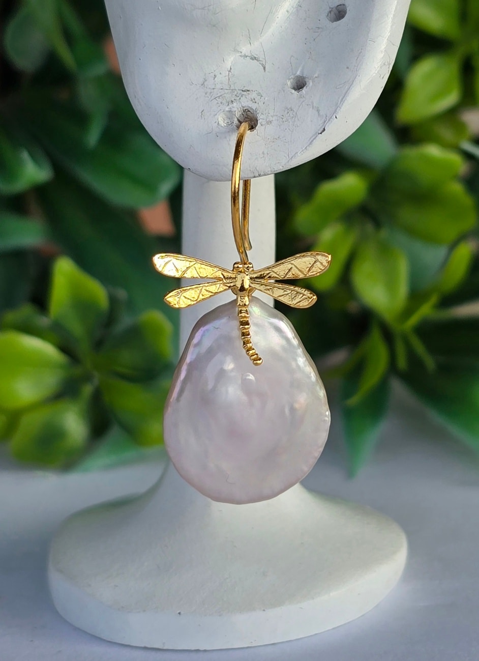 Cercei contemporani spectaculoși, din argint aurit, cu perle baroque naturale.