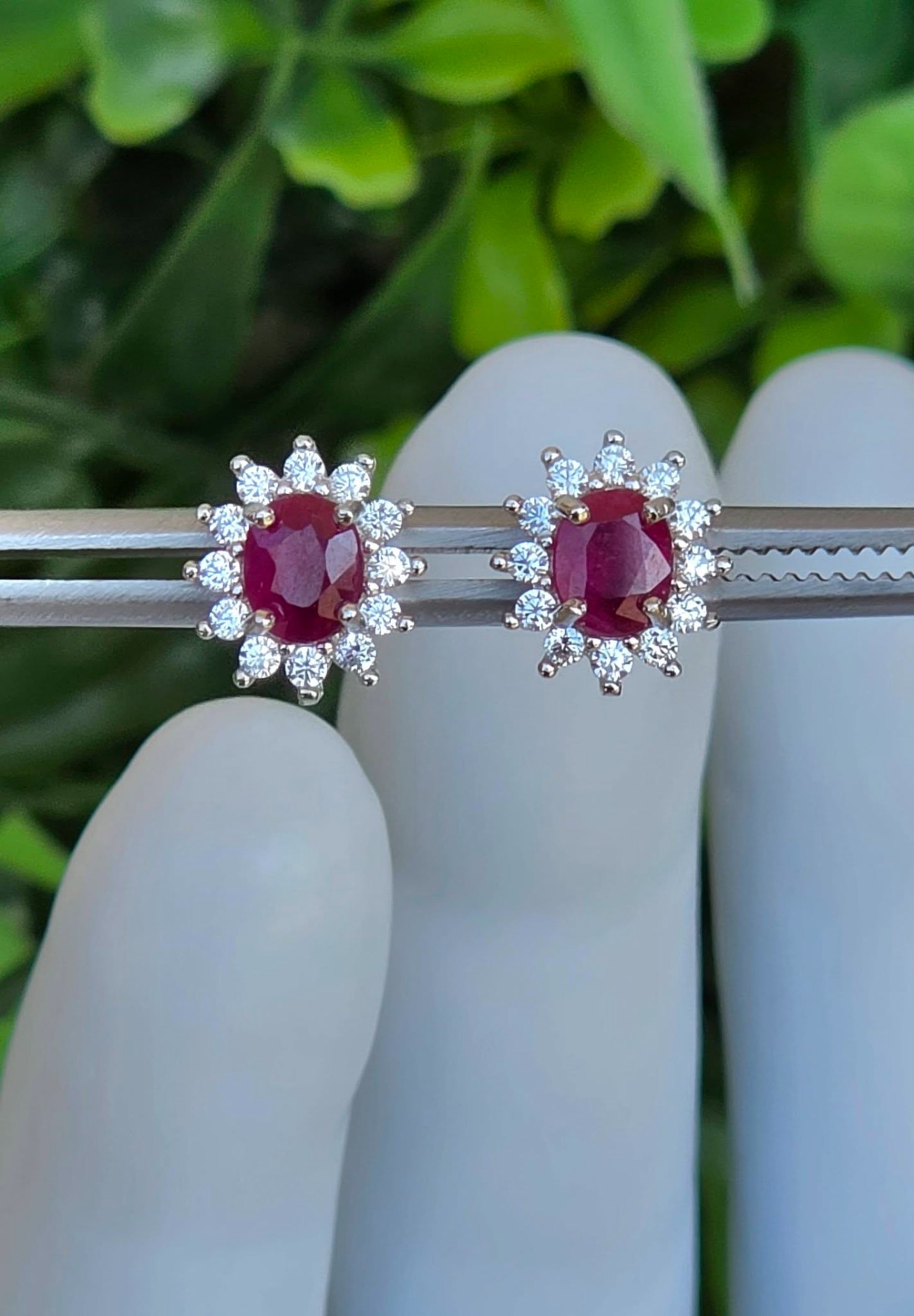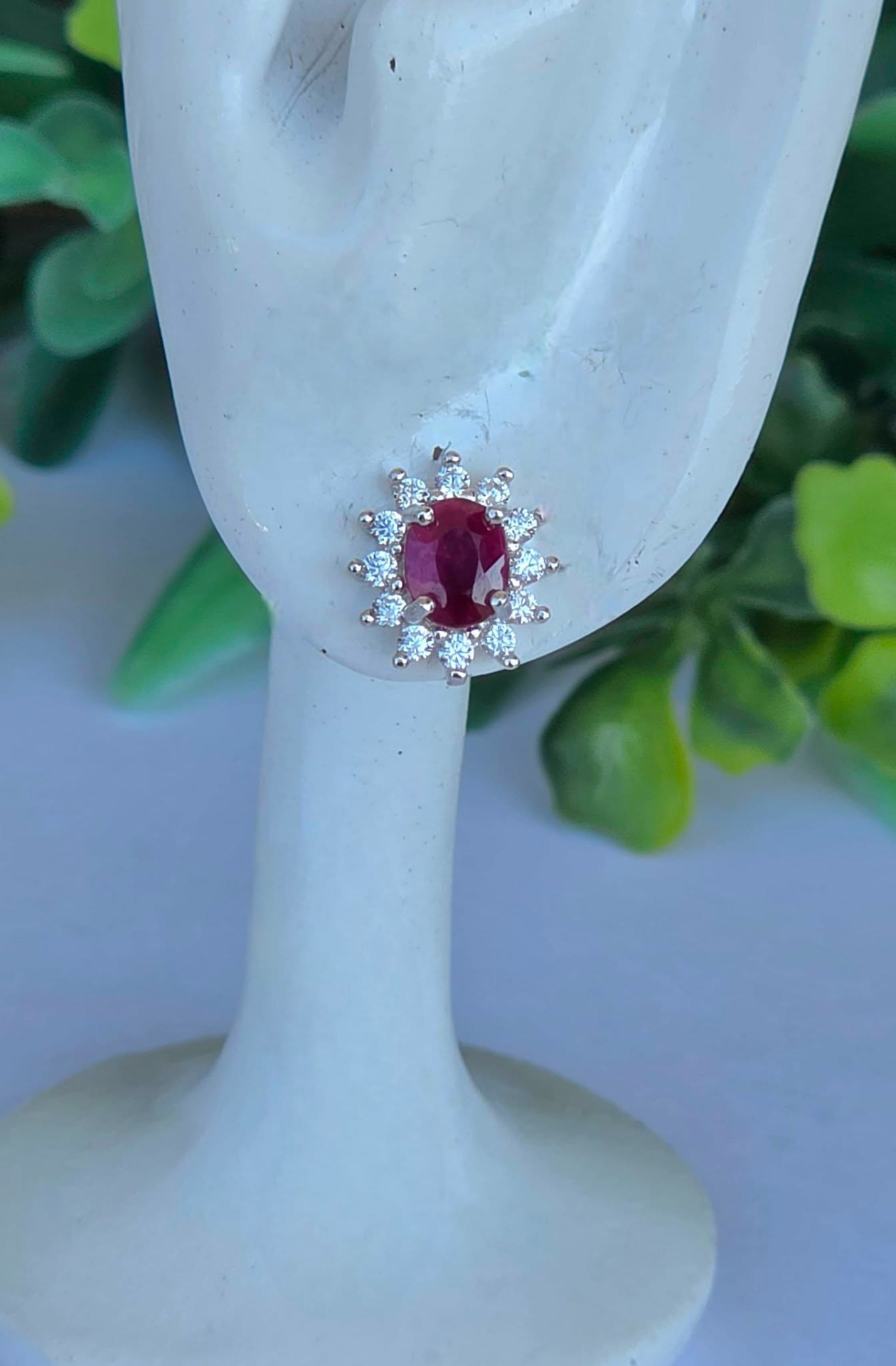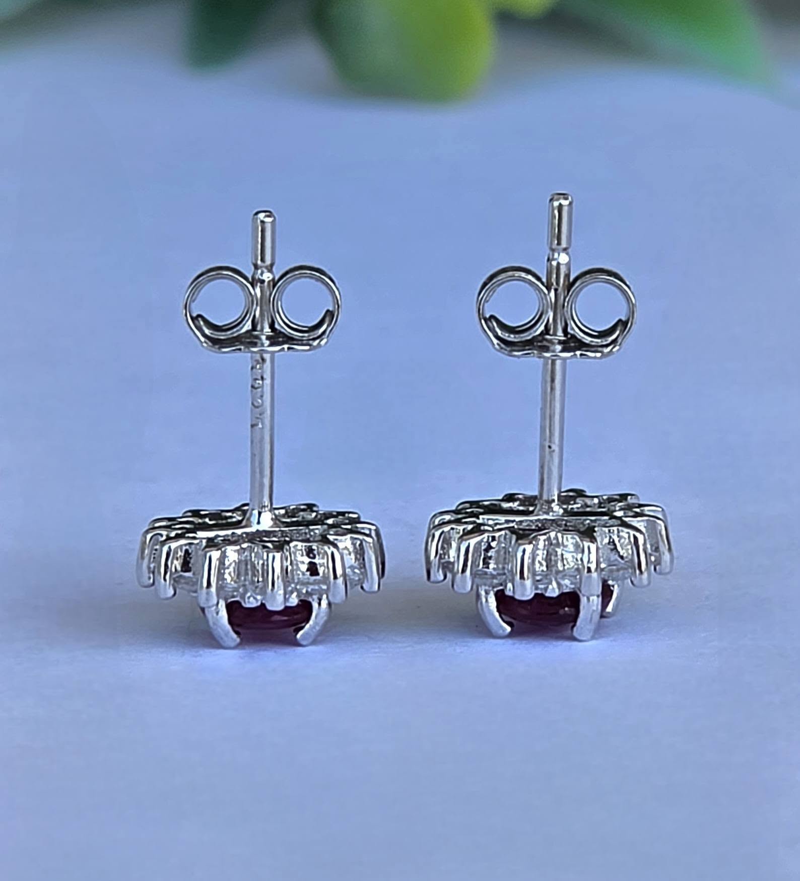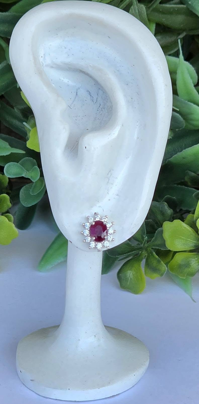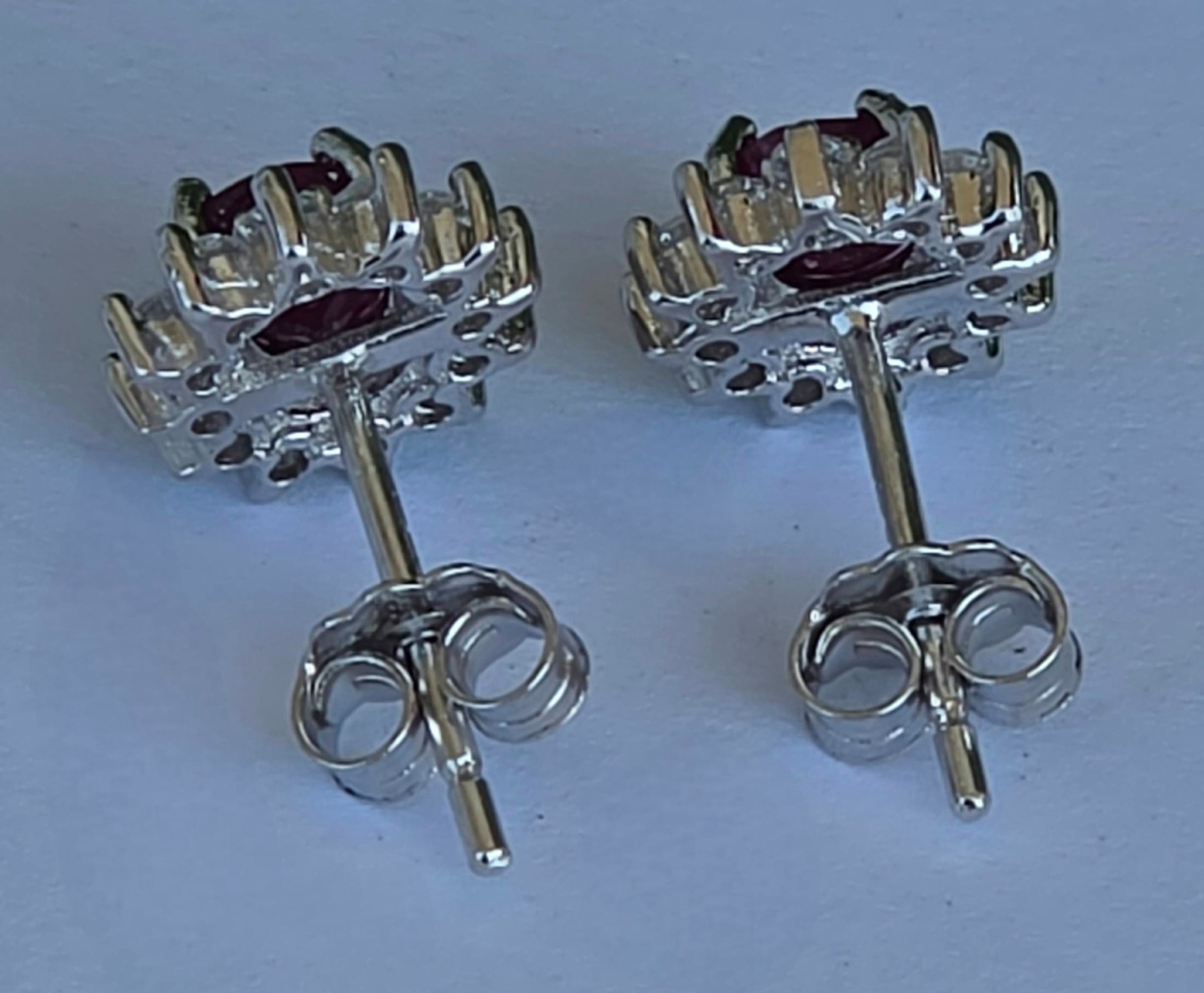 Cercei contemporani spectaculoși, din argint platinat, cu 2 superbe rubine naturale și pietre cubic zirconia.