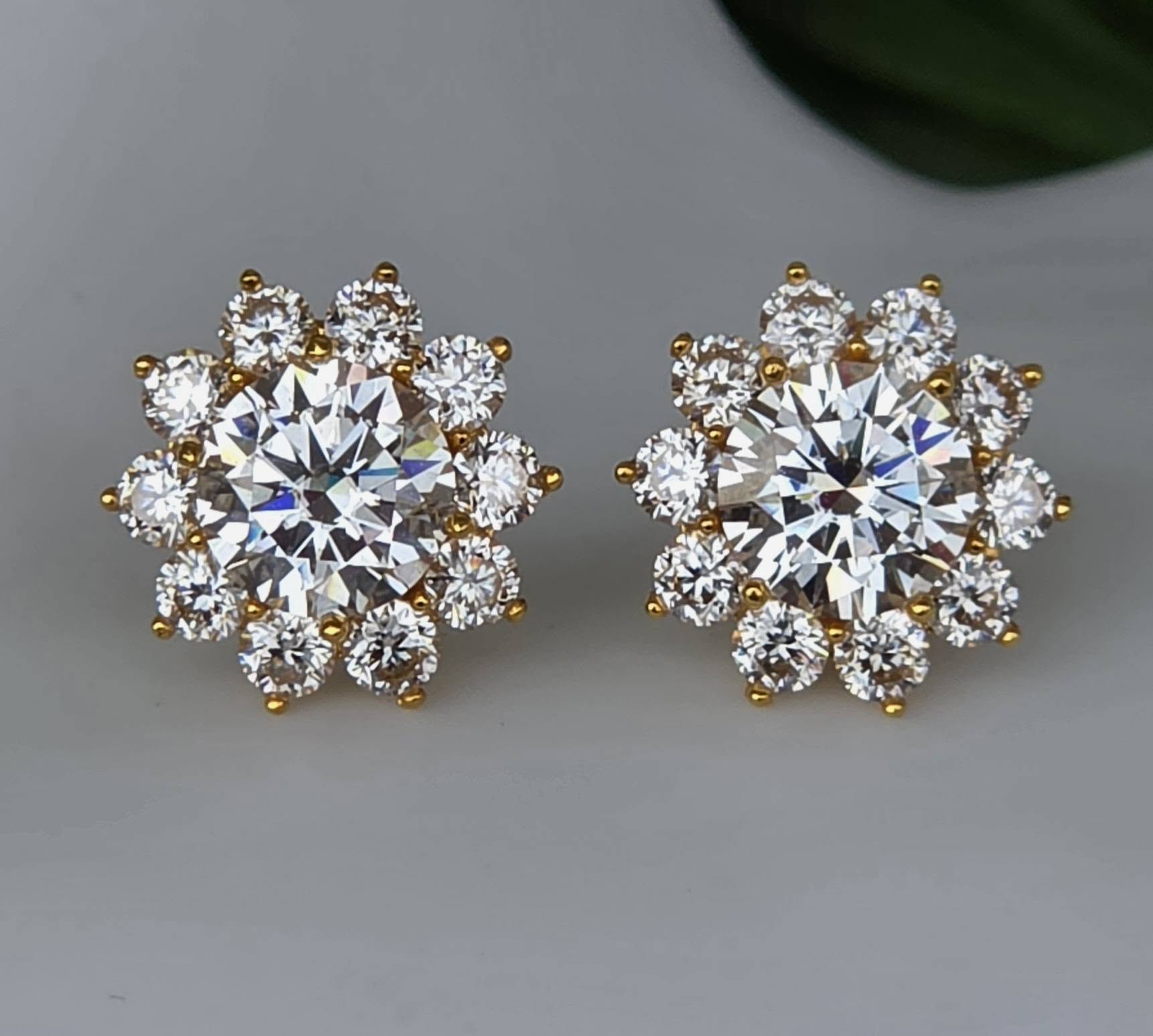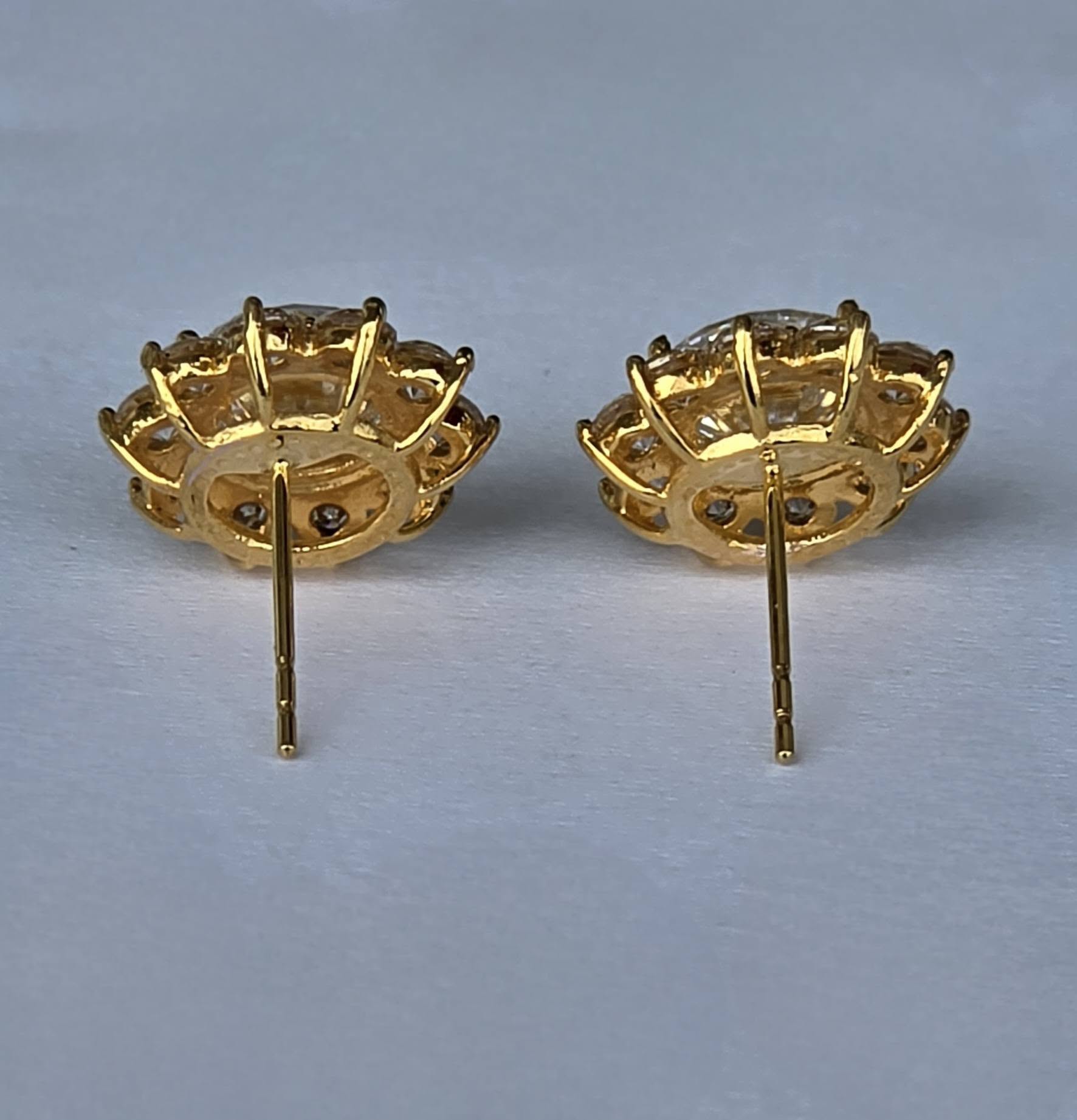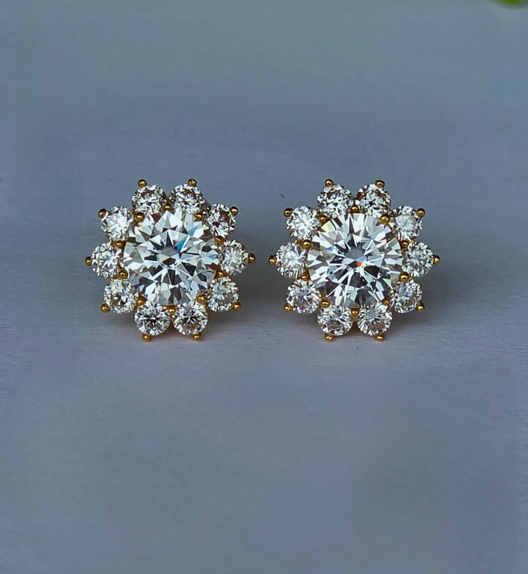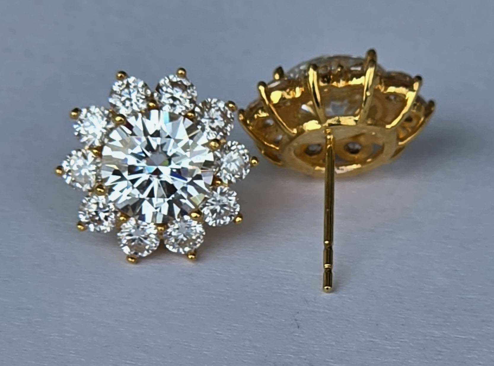 Cercei contemporani strălucitori, din aur de 14K, cu 22 moissanite "brilliant-cut" de calitate excepțională.