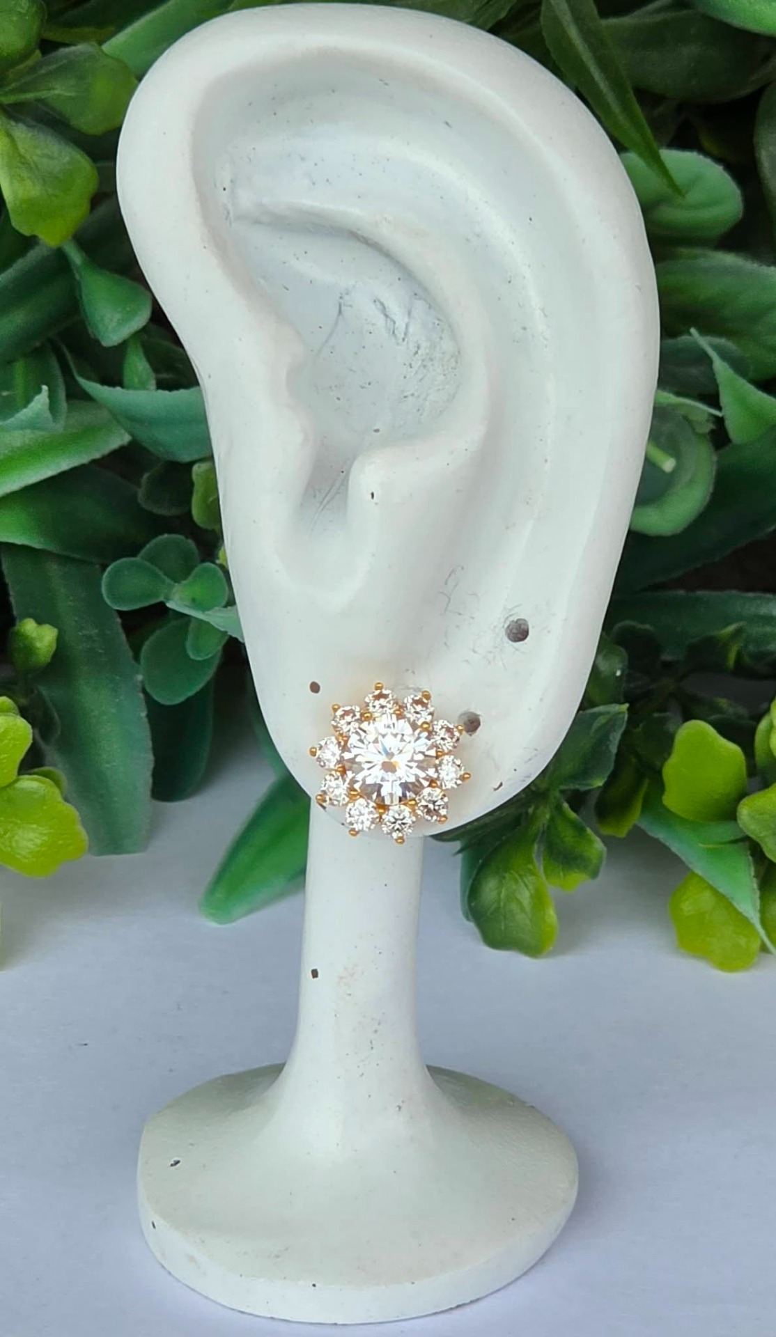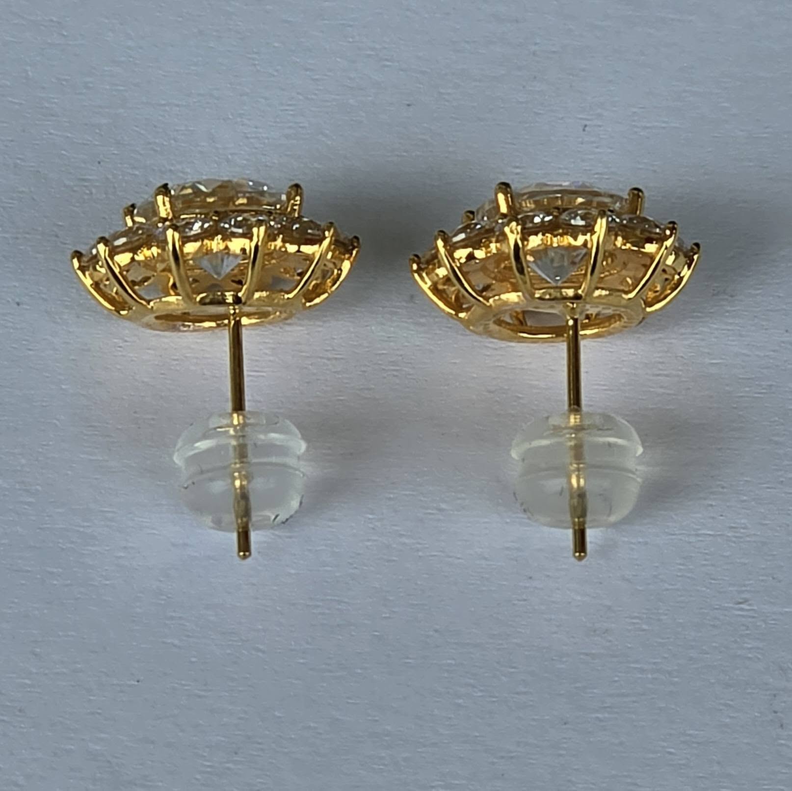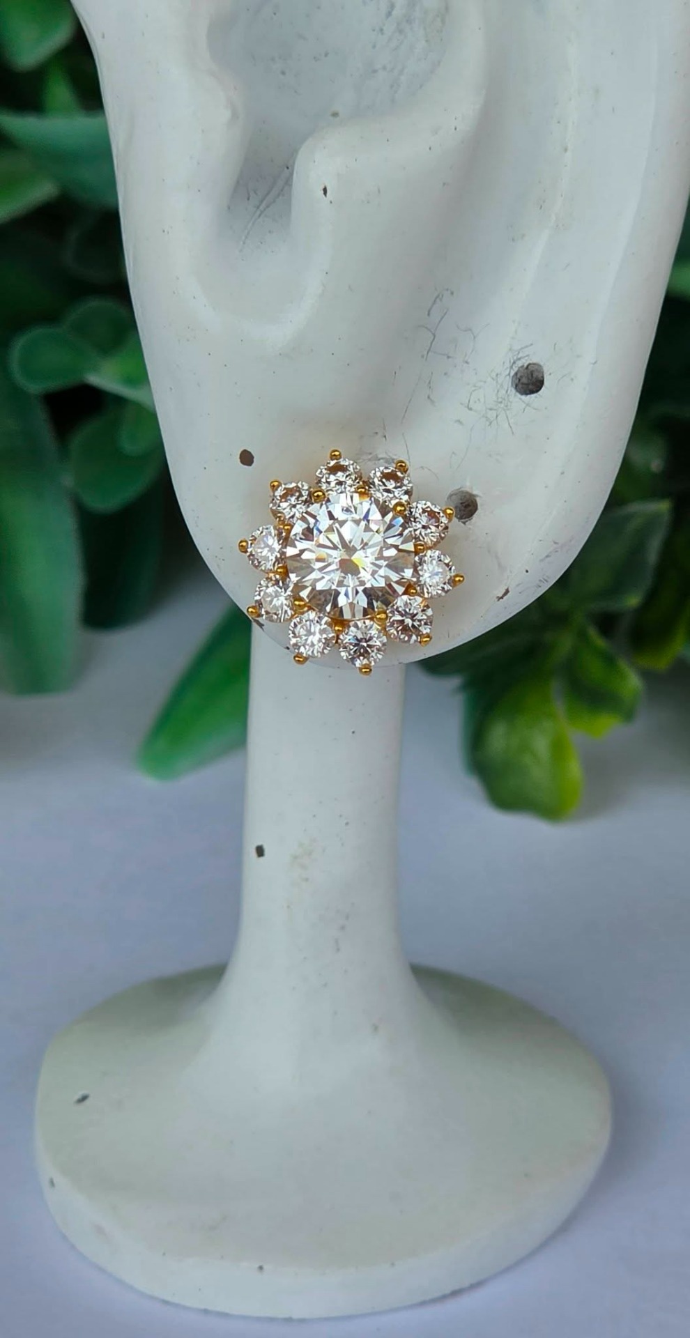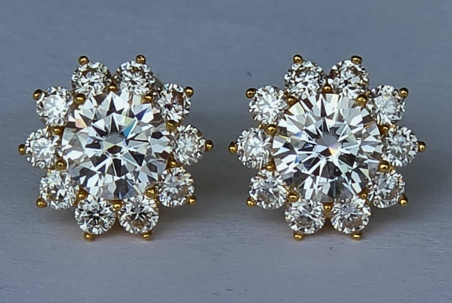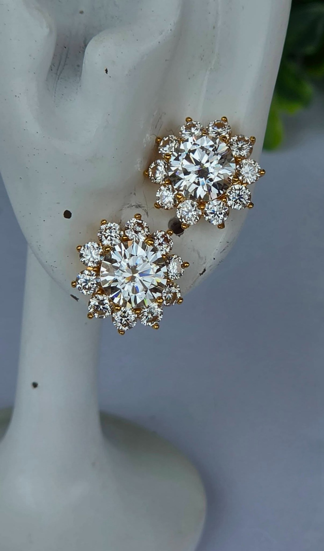 Cercei contemporani strălucitori, din aur de 14K, cu 22 moissanite "brilliant-cut" de calitate excepțională.