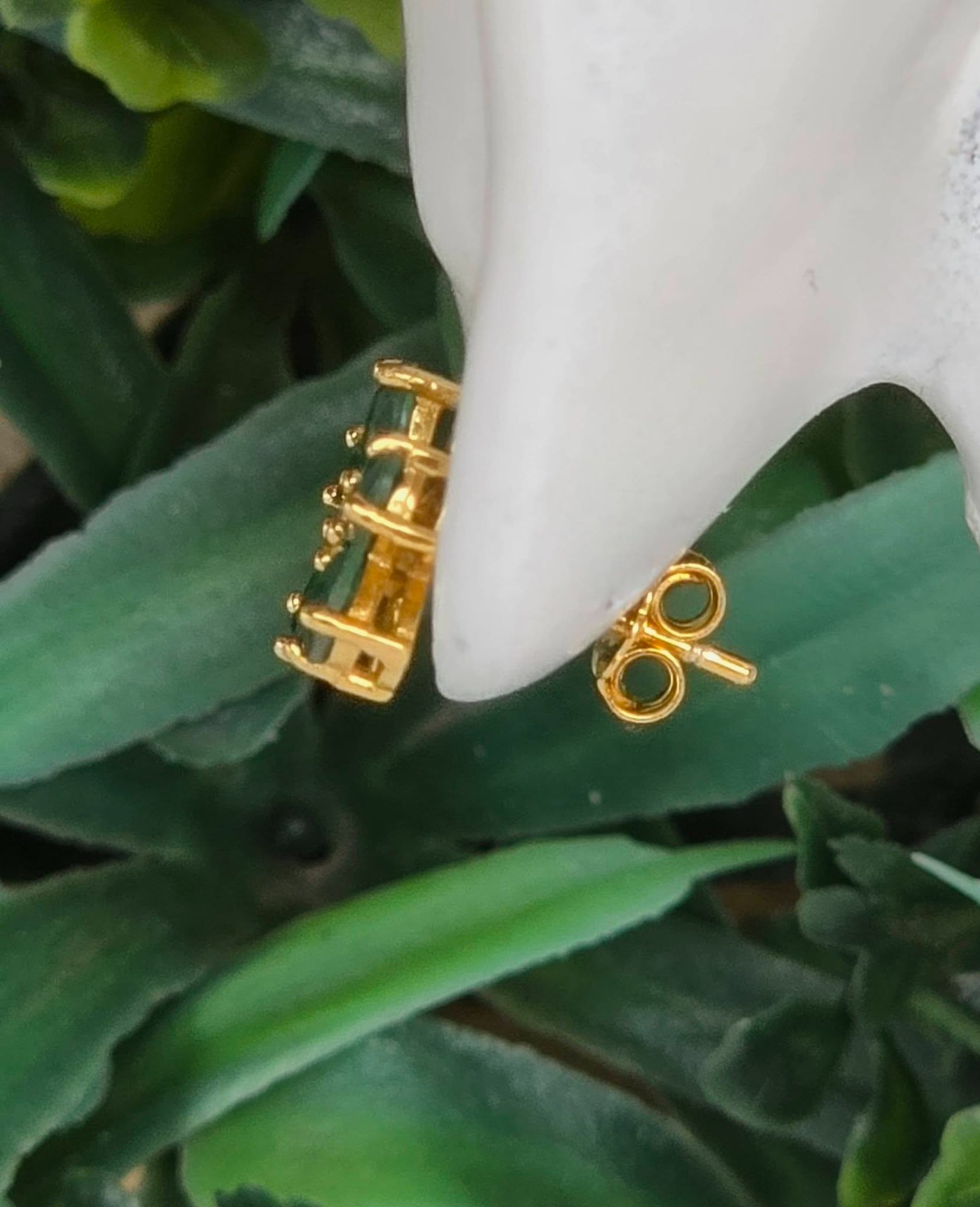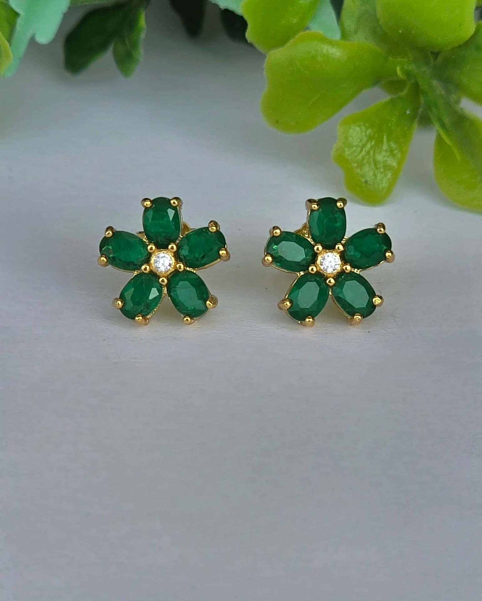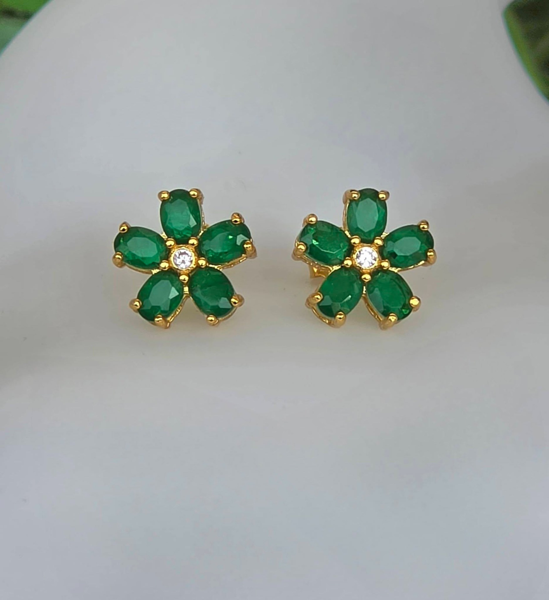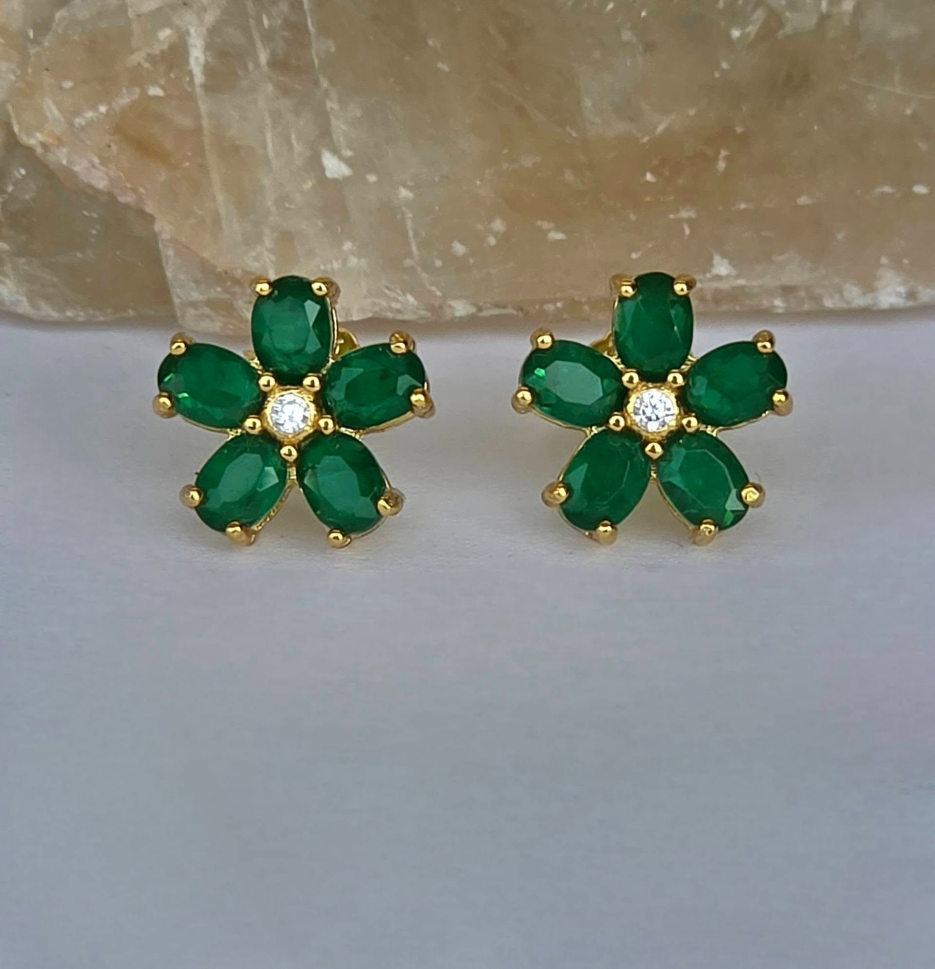 Cercei contemporani superbi, din argint aurit, cu 10 smaralde naturale "doublet" și pietre cubic zirconia.