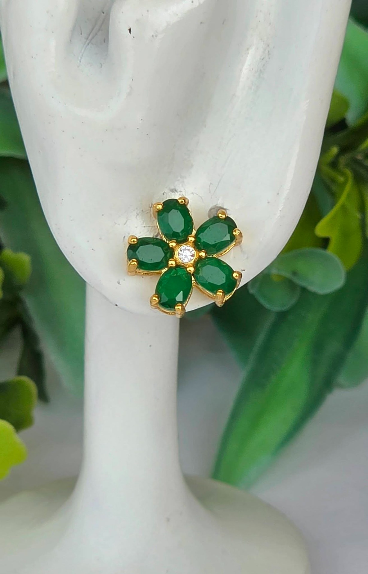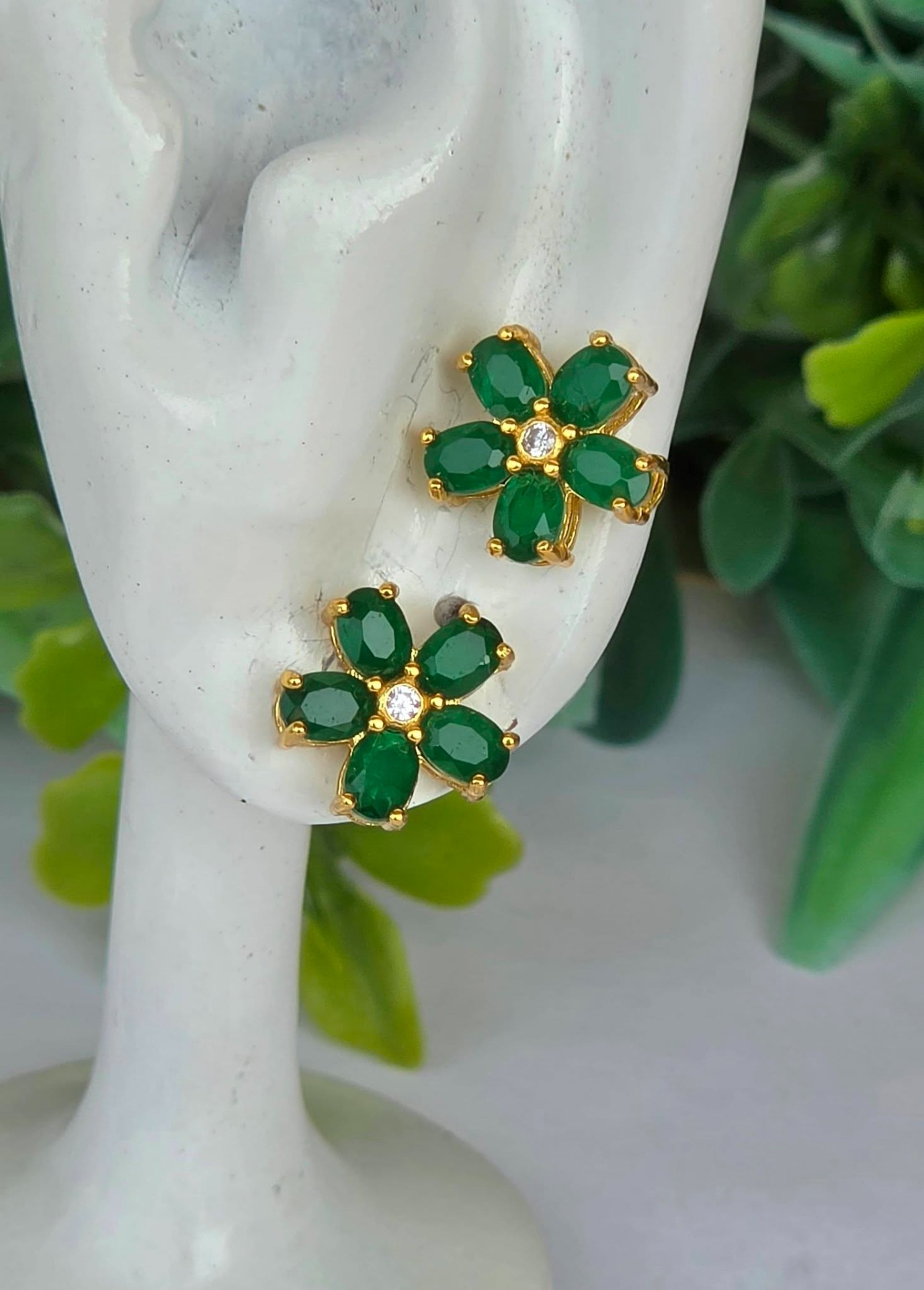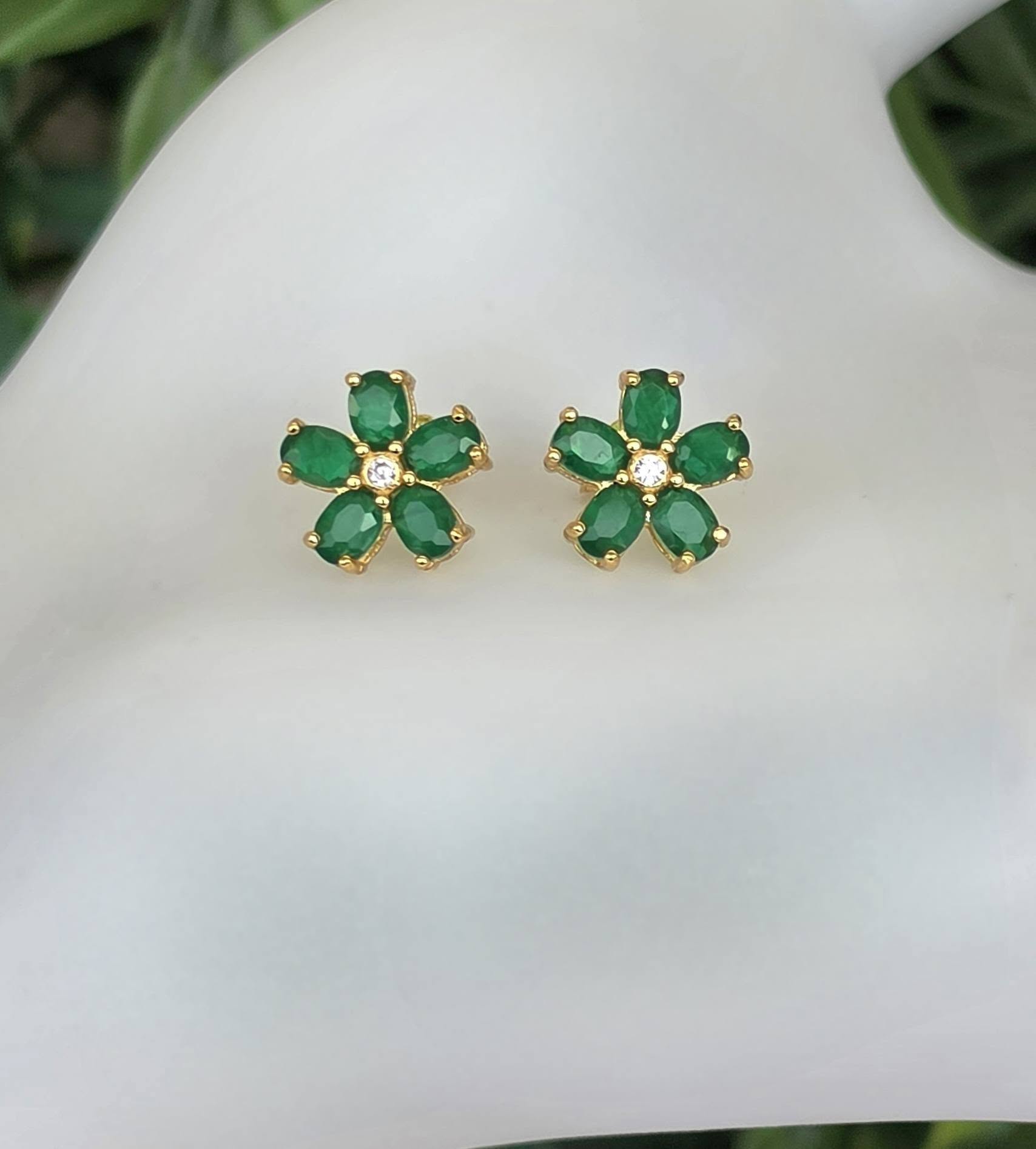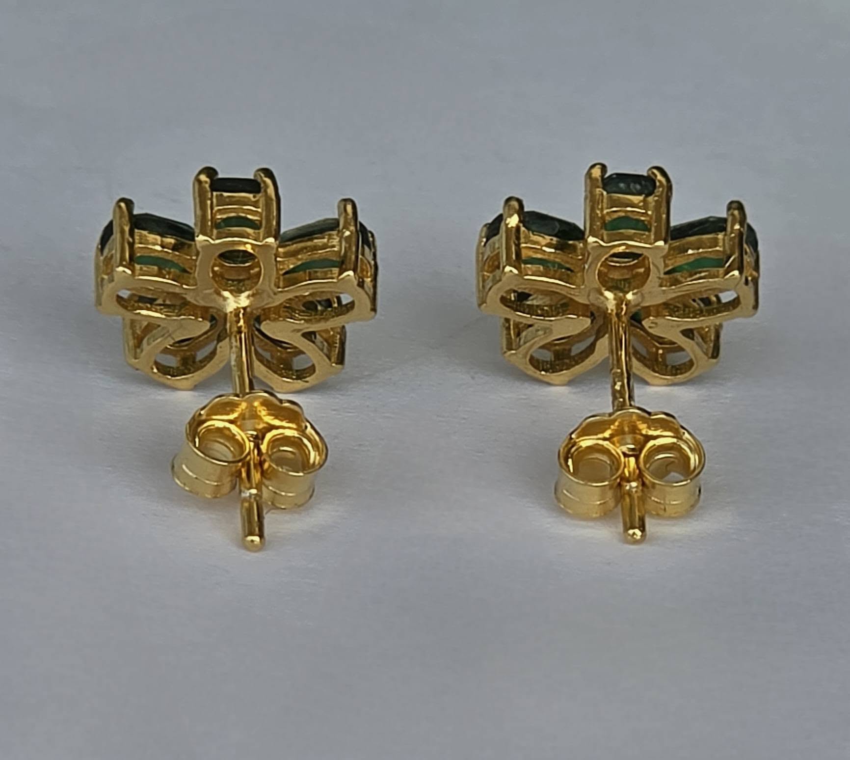 Cercei contemporani superbi, din argint aurit, cu 10 smaralde naturale "doublet" și pietre cubic zirconia.