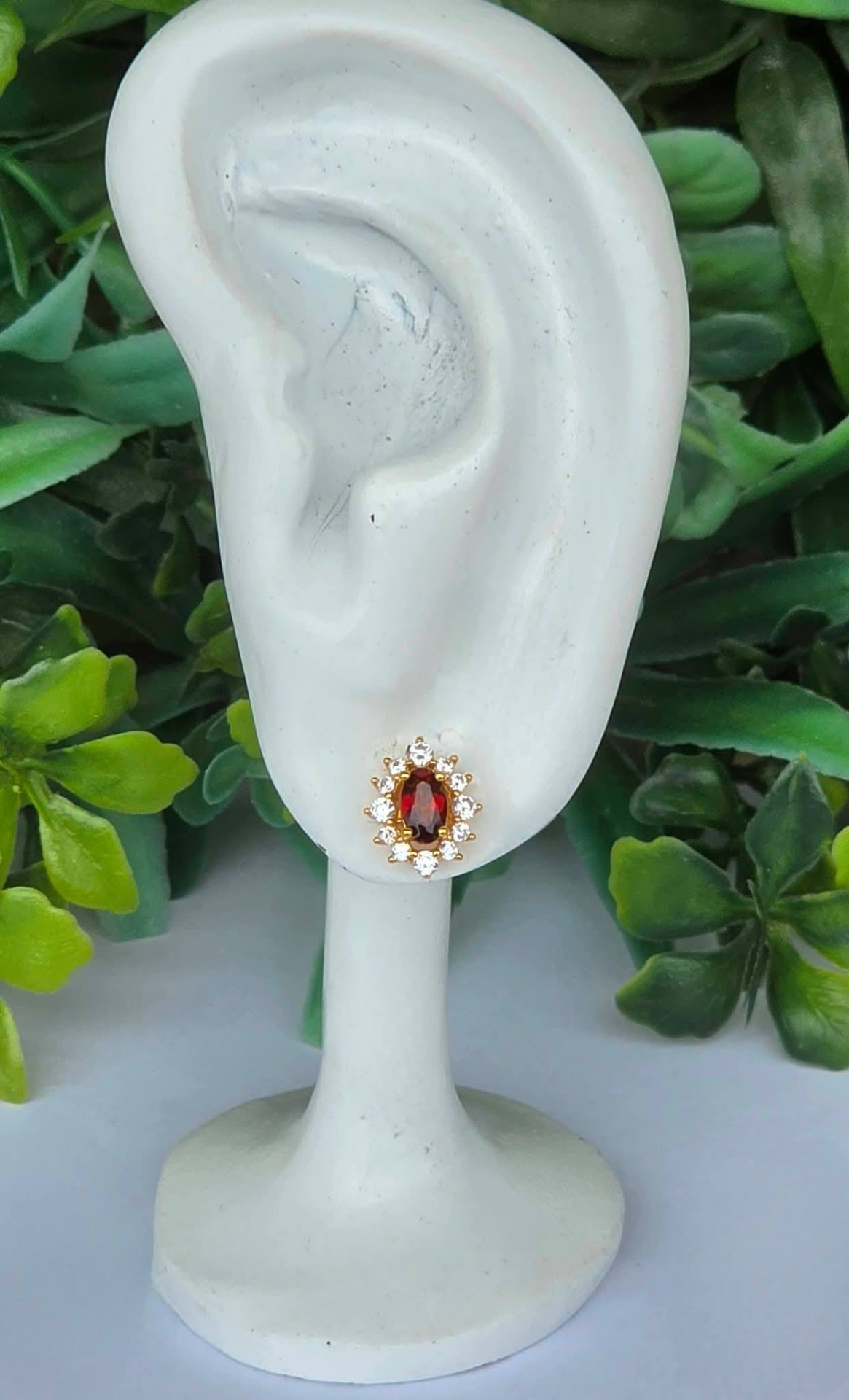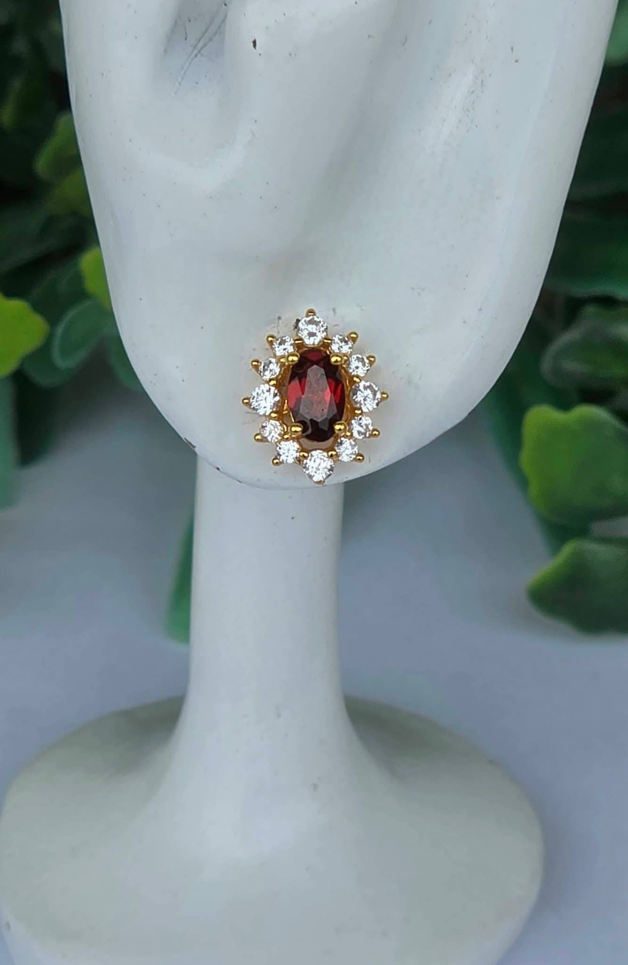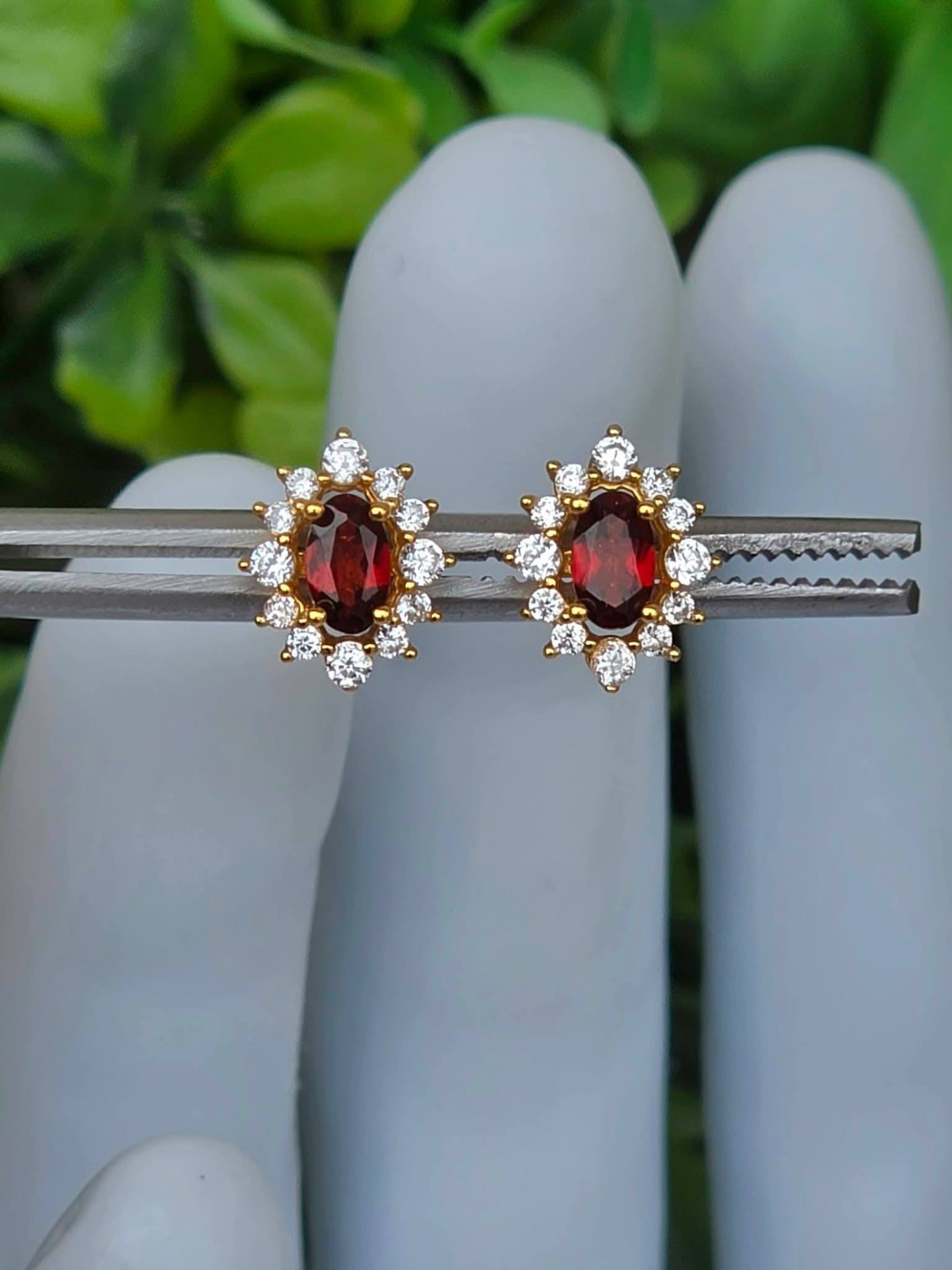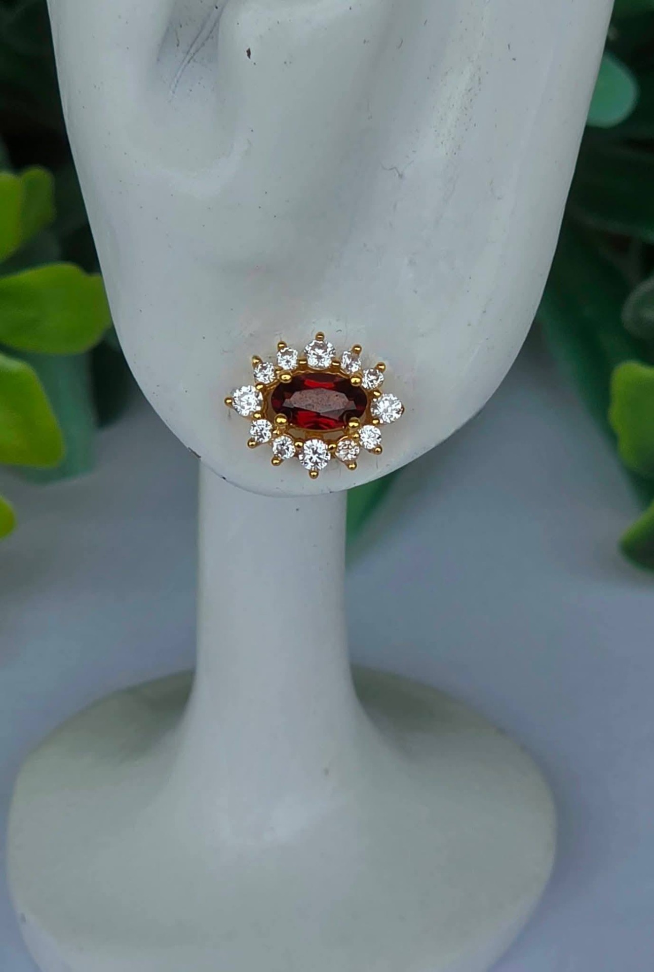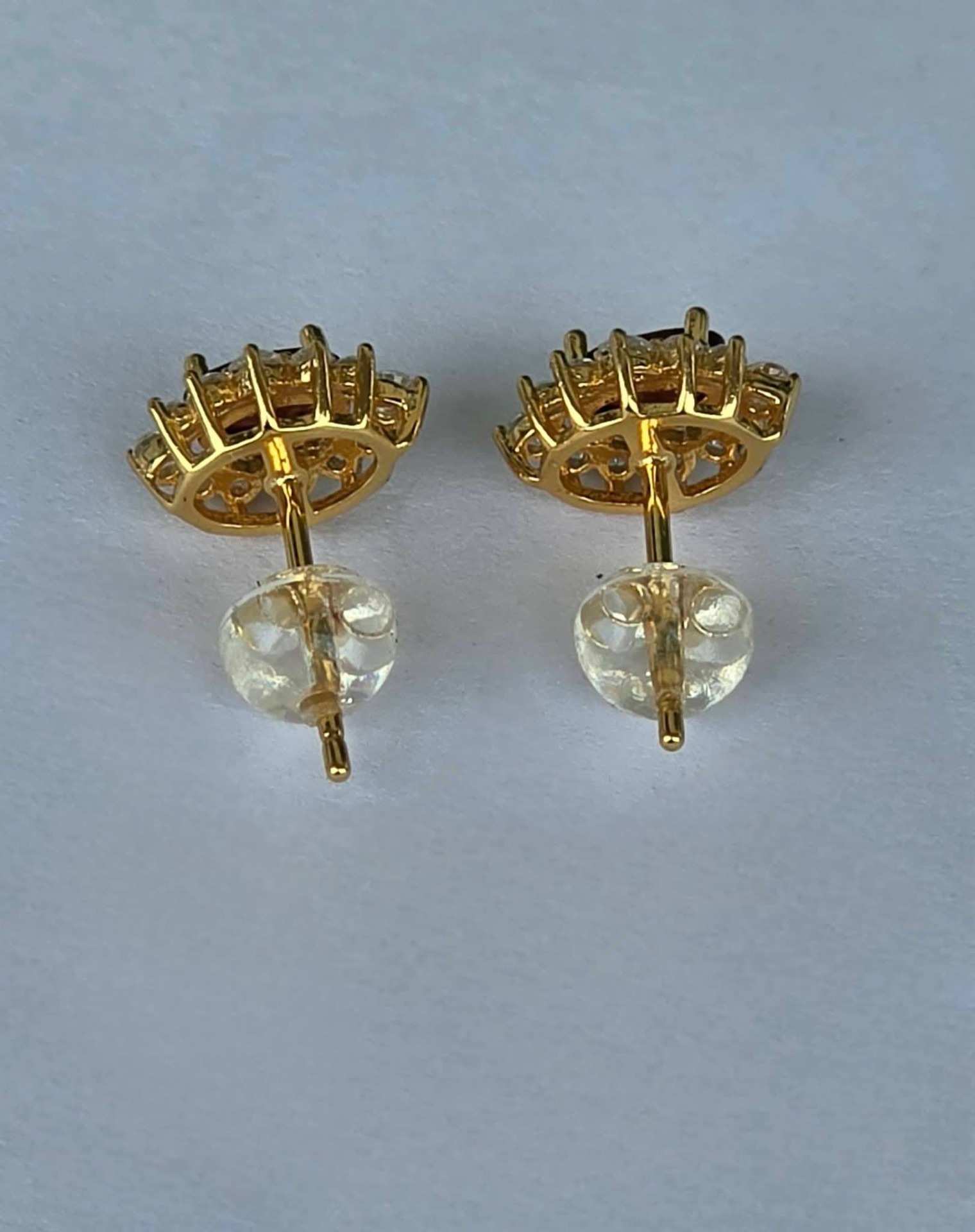 Cercei contemporani superbi, din argint aurit, cu granate naturale și pietre cubic zirconia.