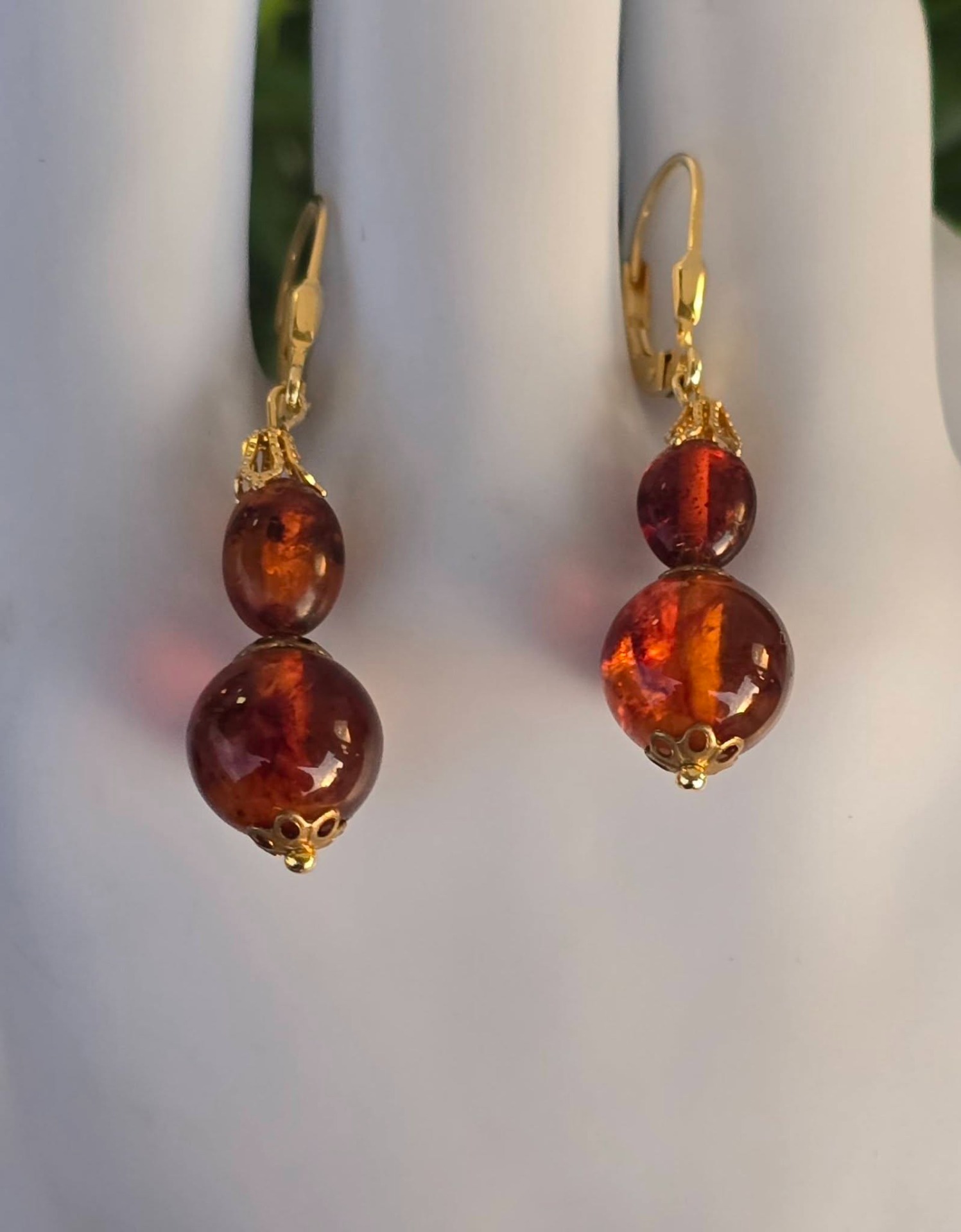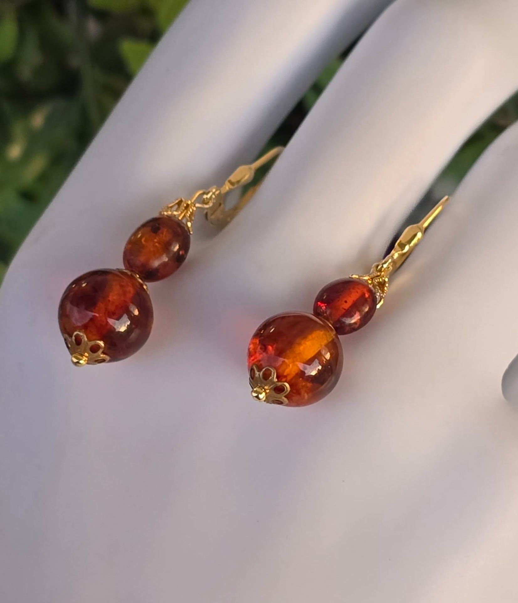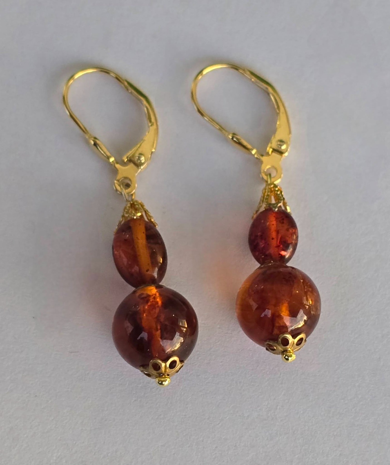 Cercei din argint aurit, cu chihlimbar natural.