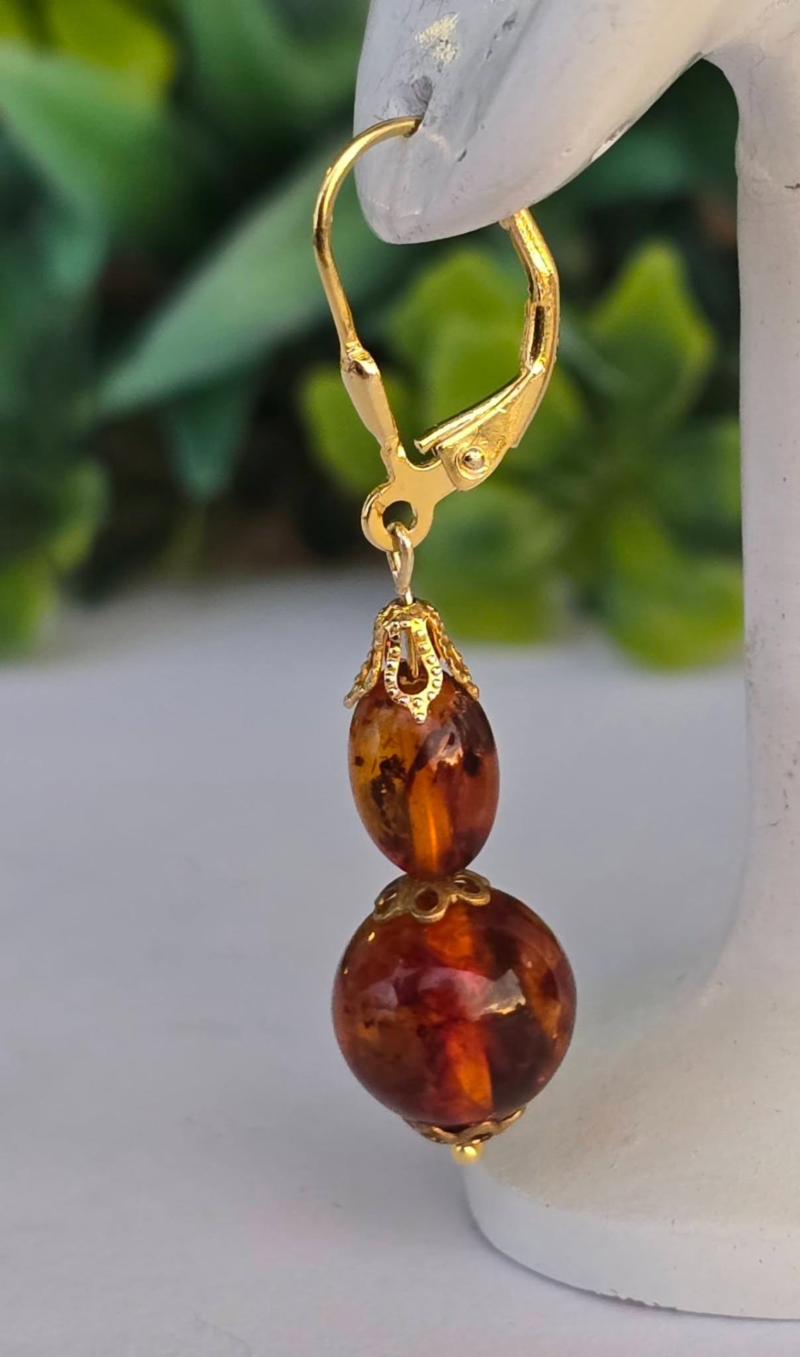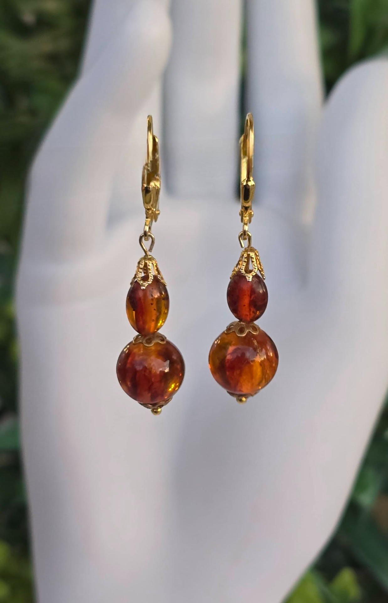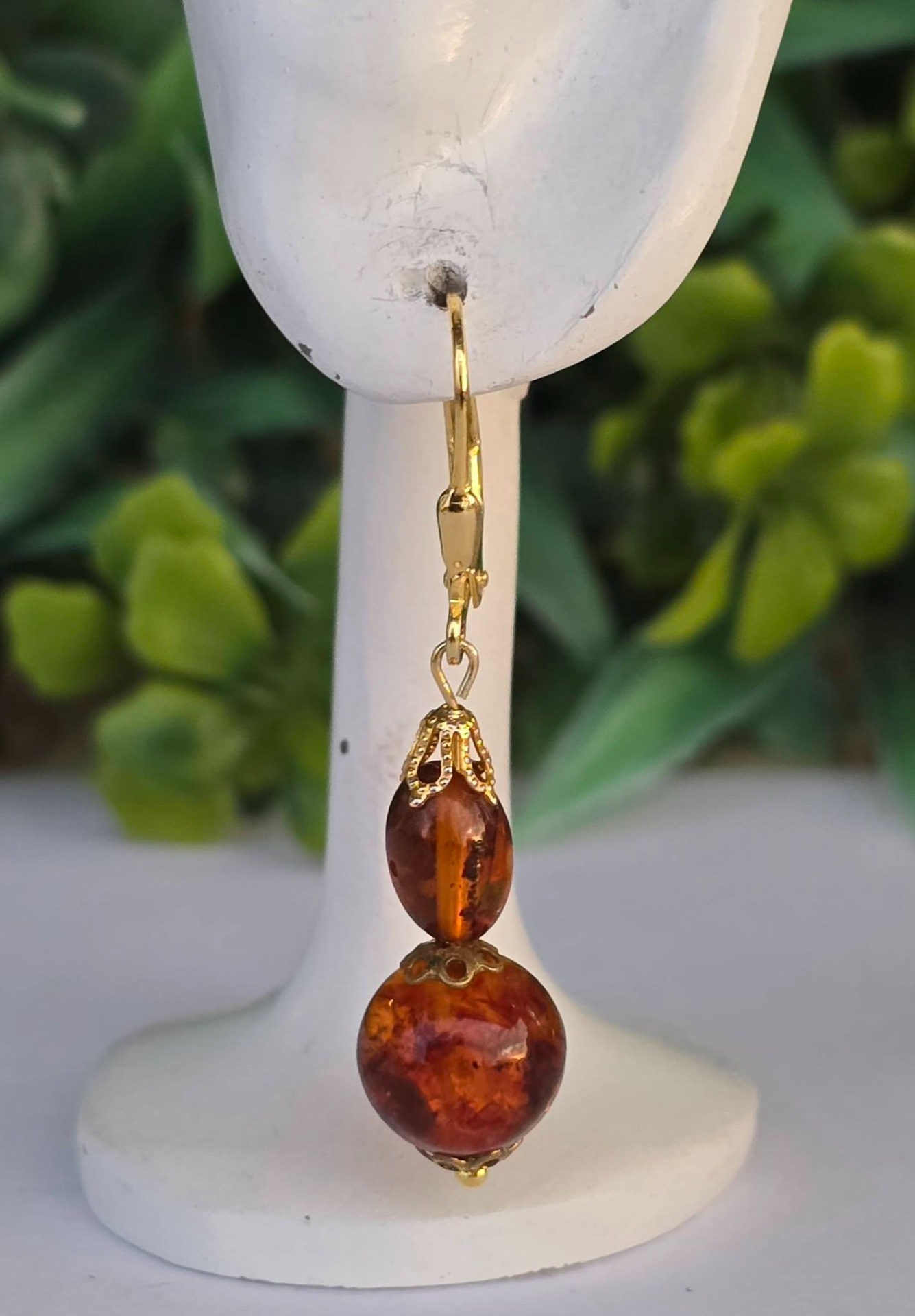 Cercei din argint aurit, cu chihlimbar natural.