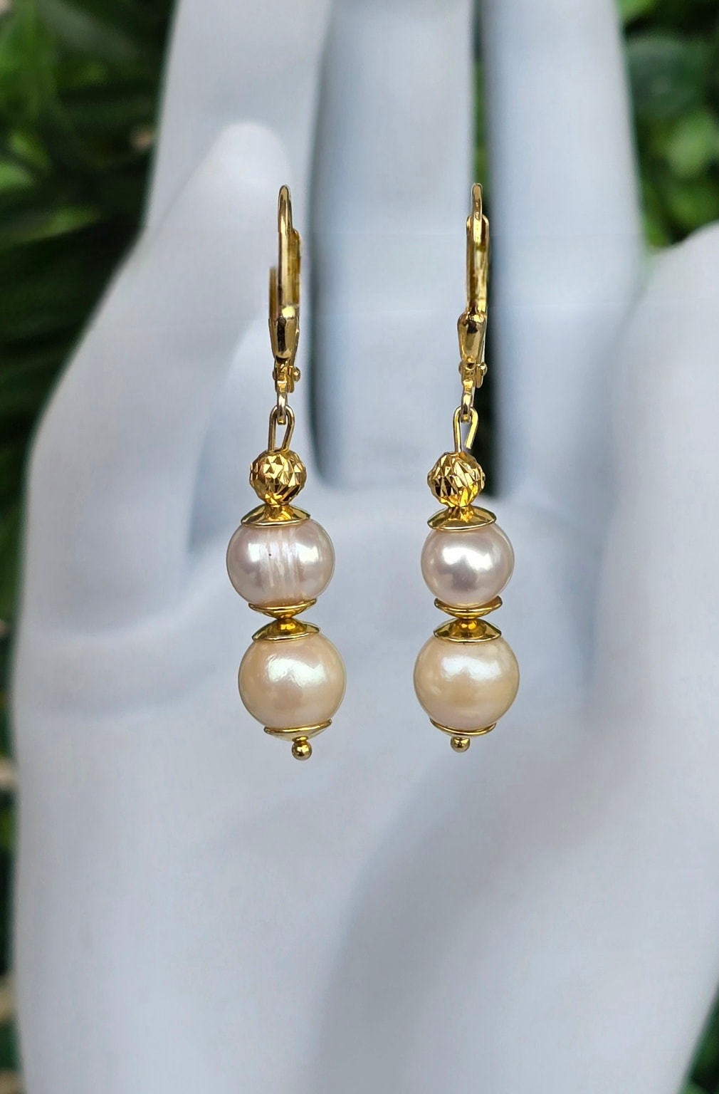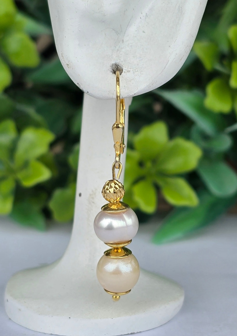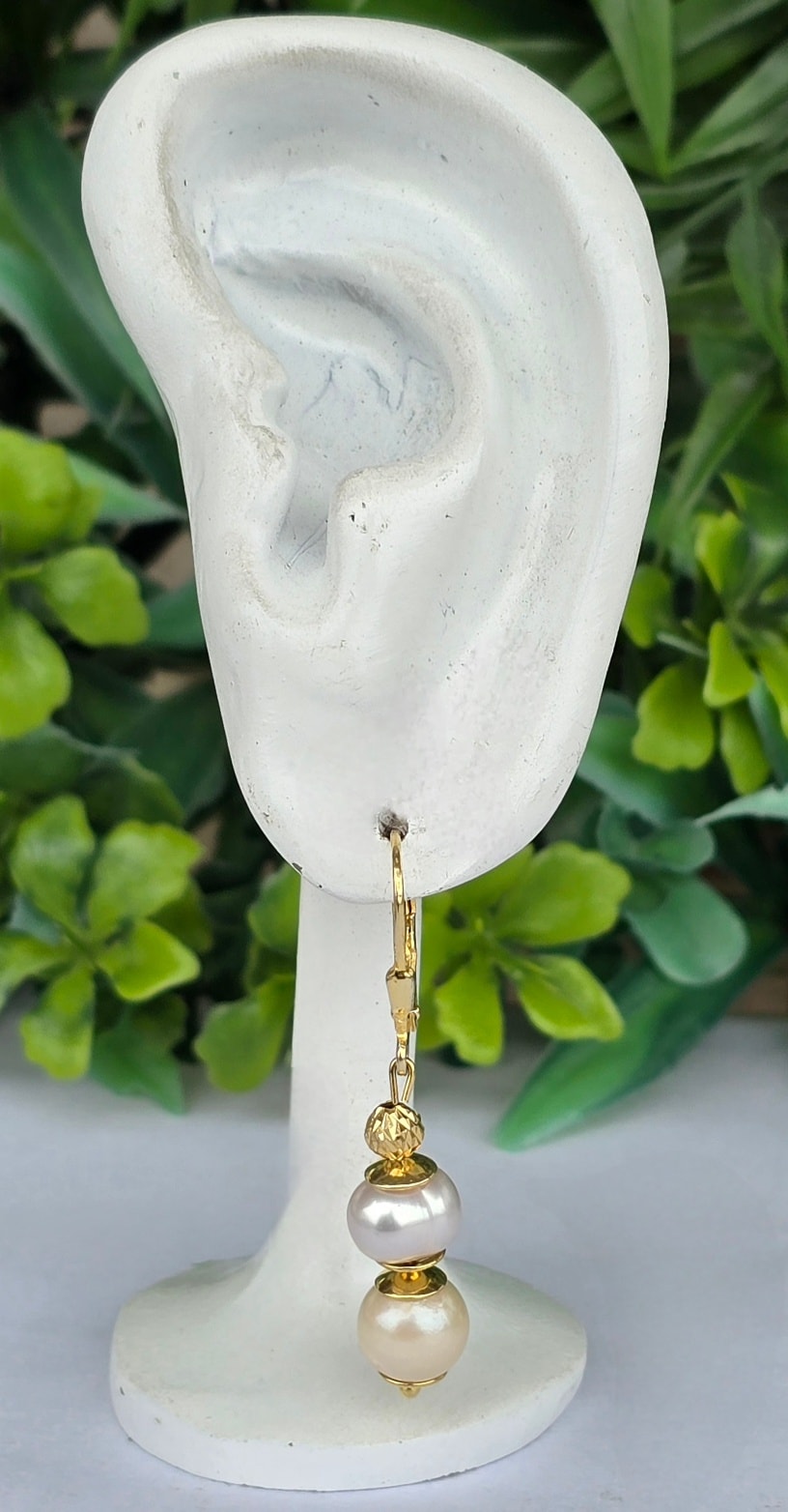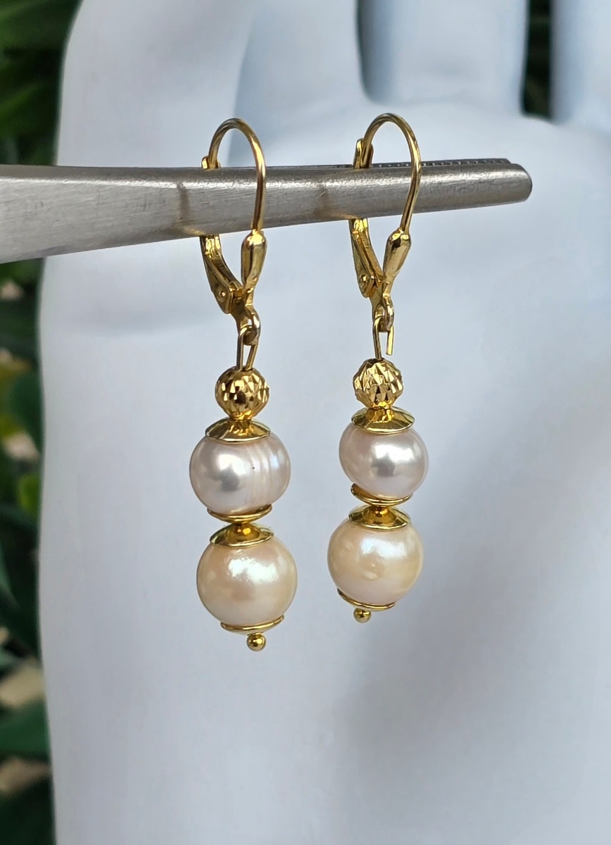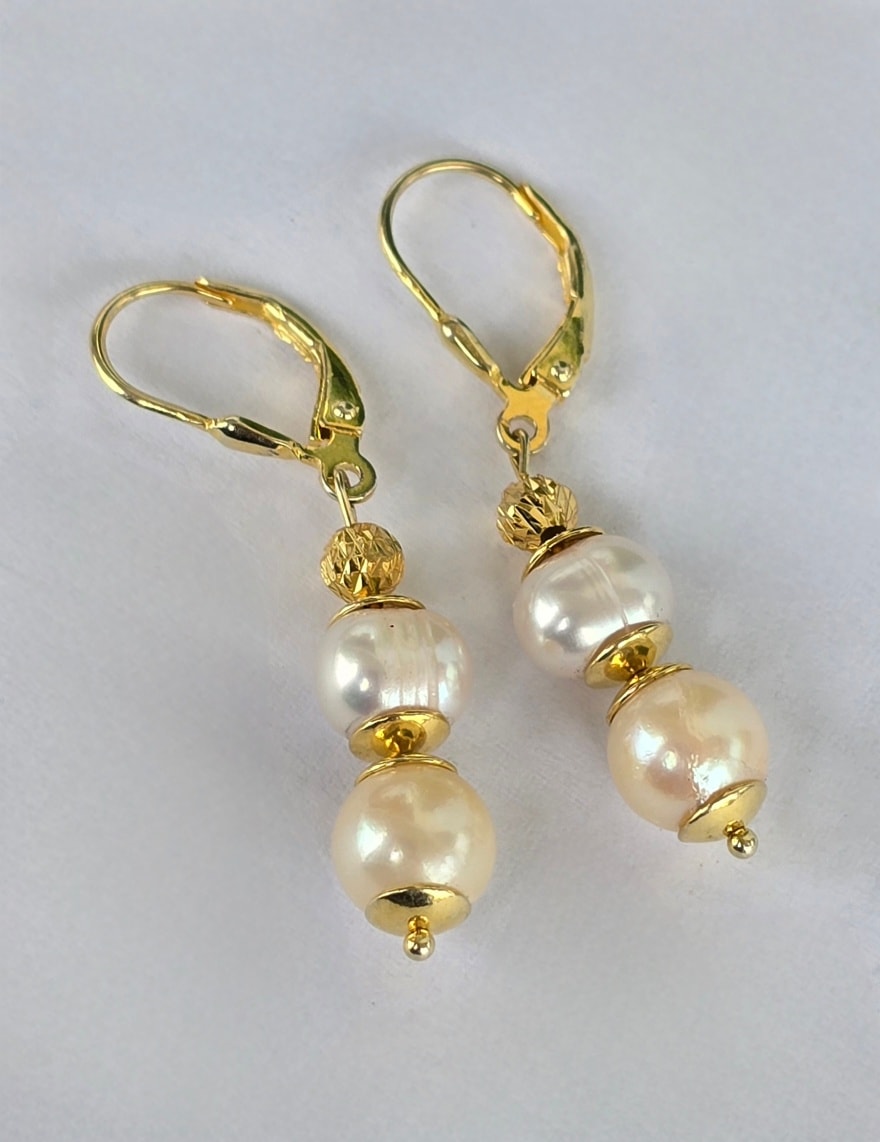 Cercei moderniști superbi, din argint aurit, cu perle naturale de cultură.