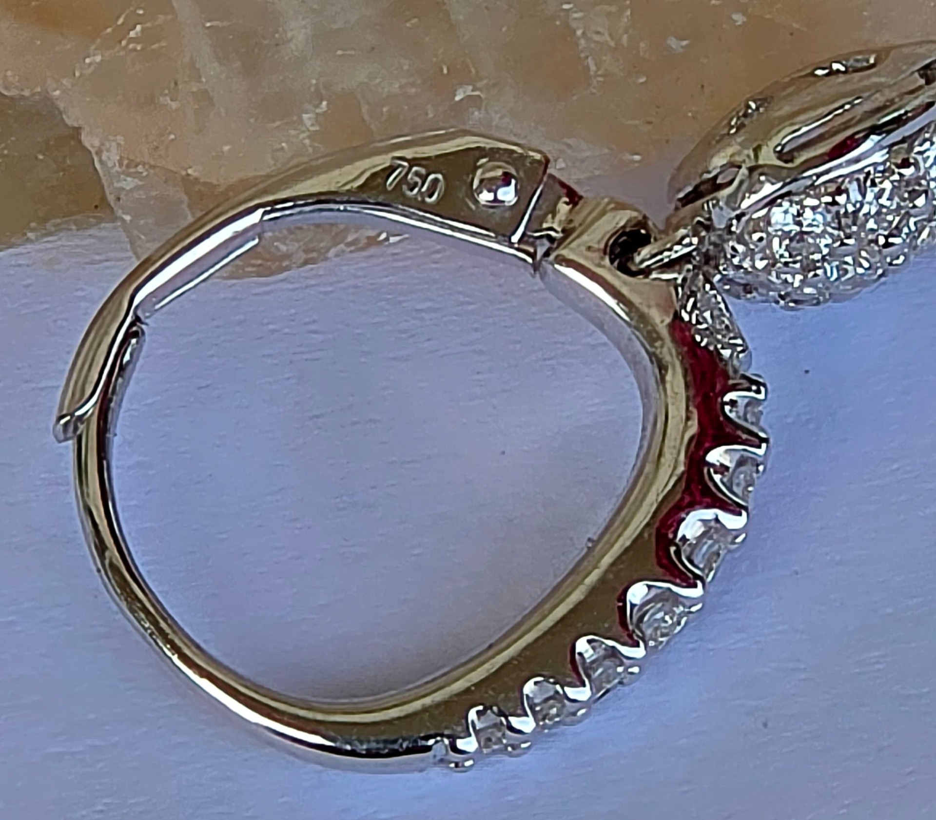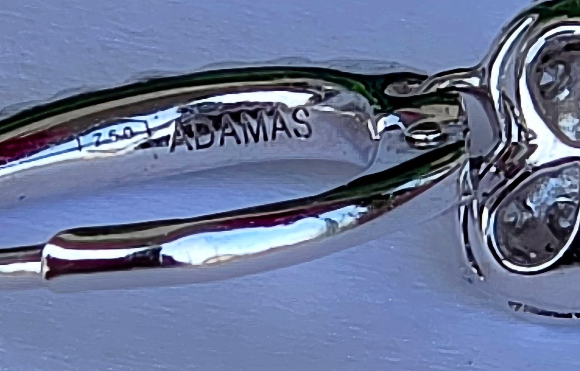 Prezintă marcaje 750 pentru puritate aur de 18K și marcaj de brand "ADAMAS".