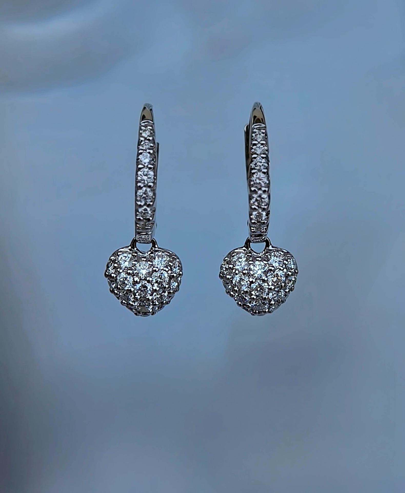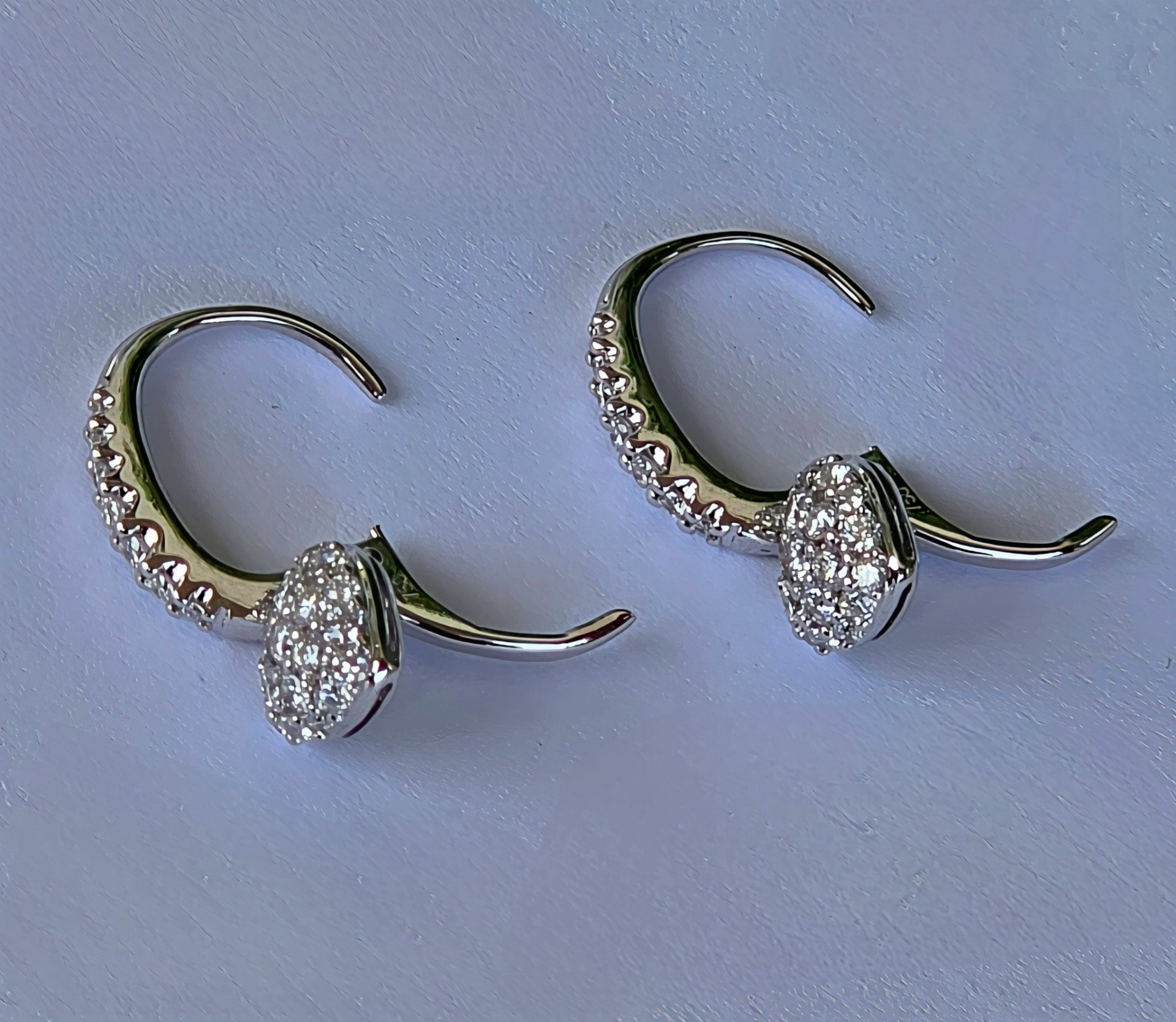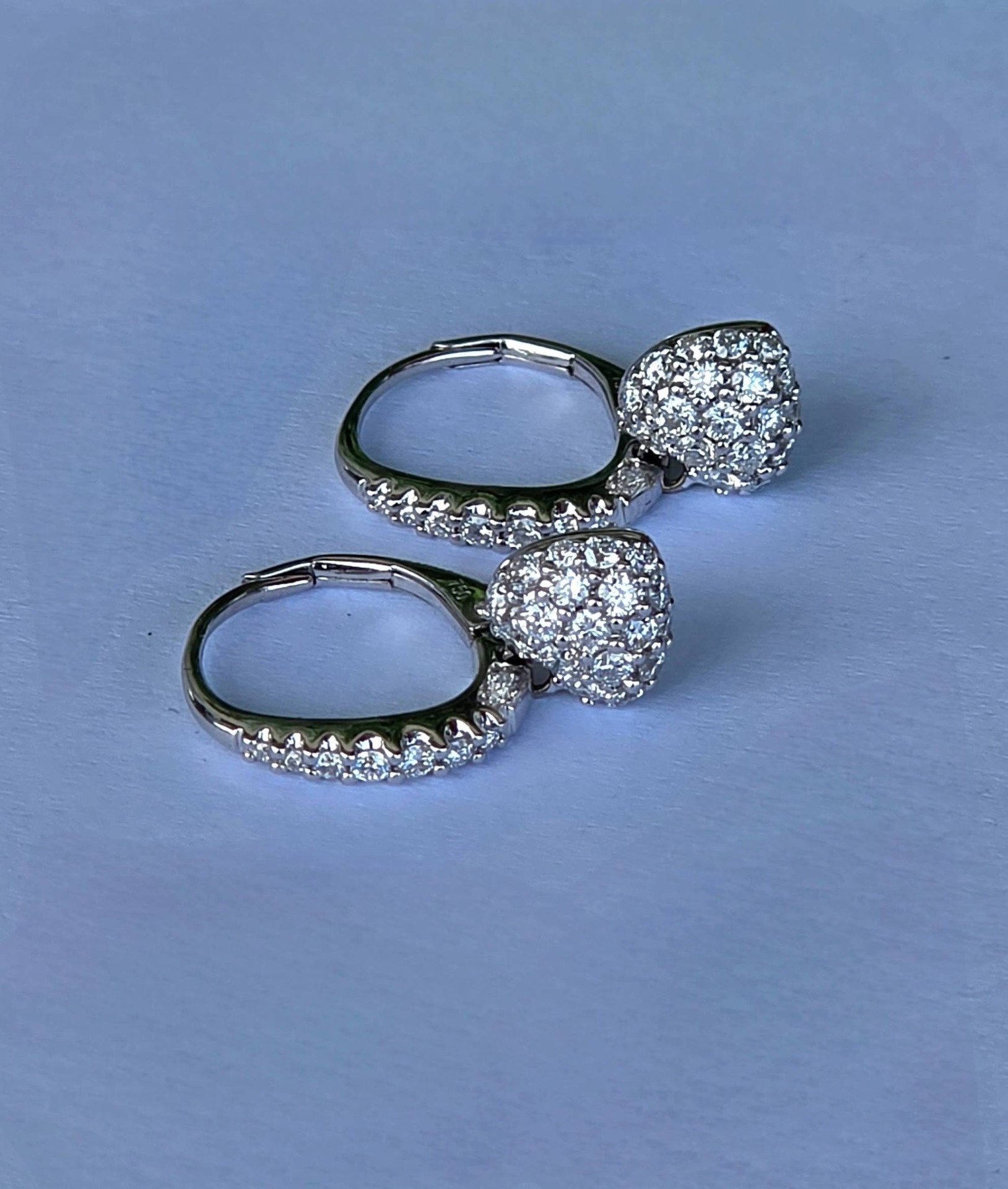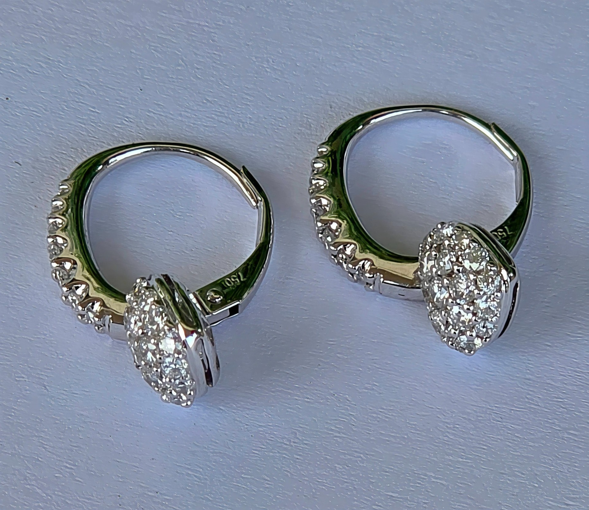 Cercei strălucitori din aur de 18K, cu 50 diamante naturale (0.74ct) de calitate excepțională, manufactură de brand american (anii 2000, Boston, SUA).