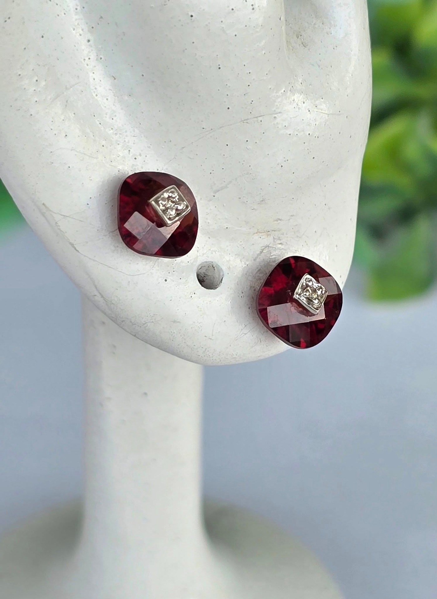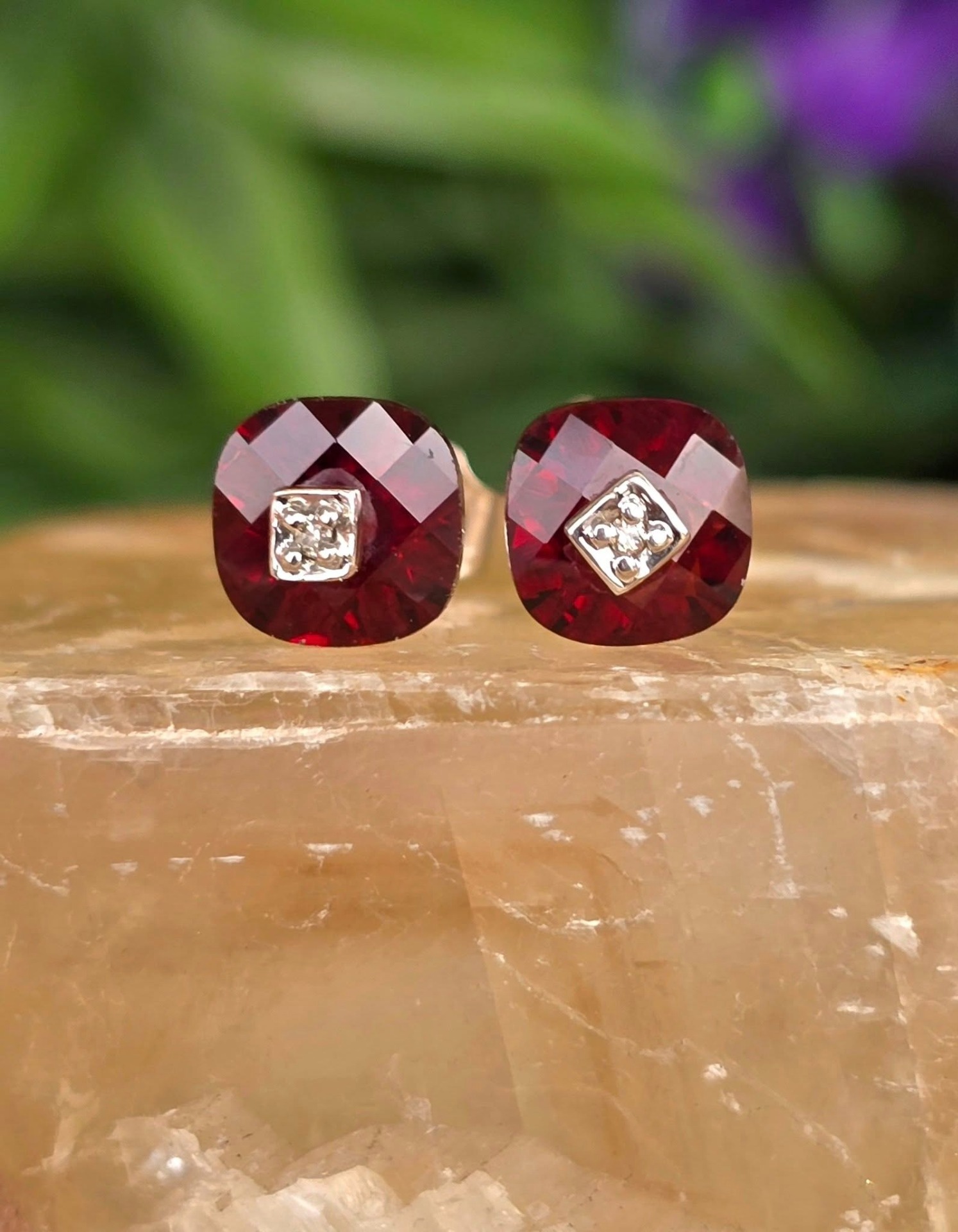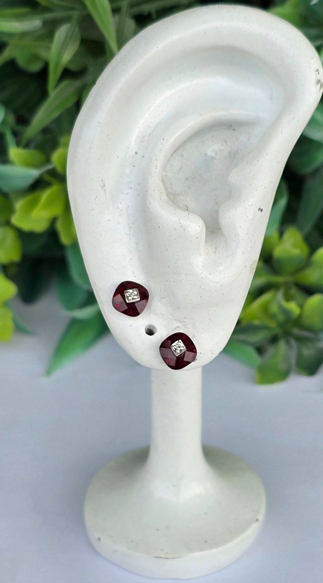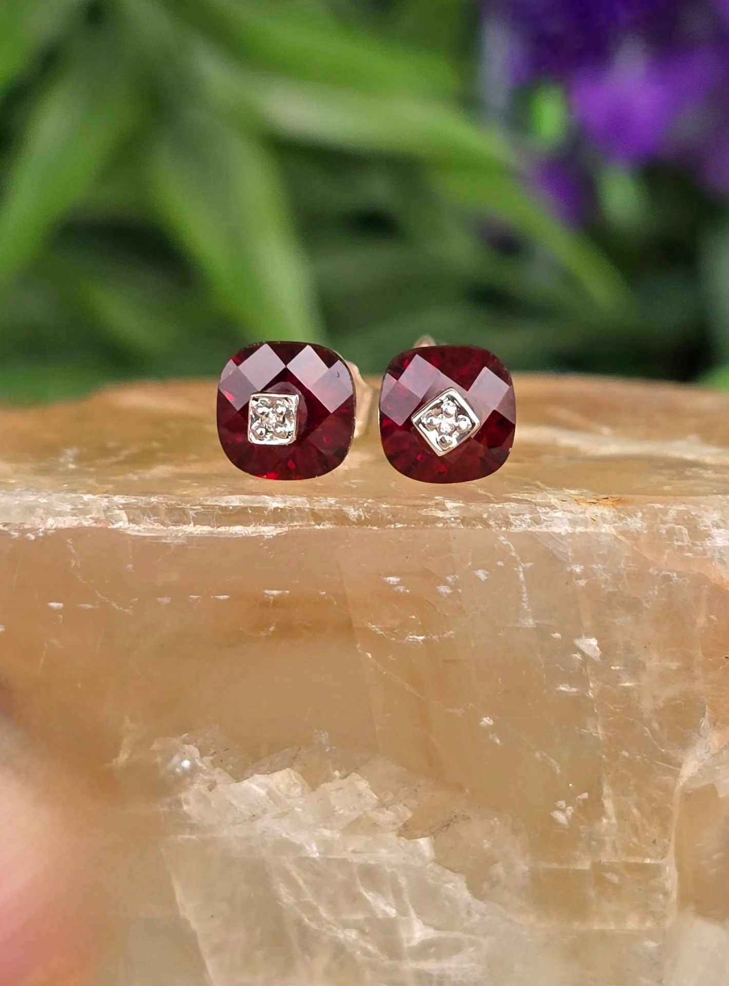 Cercei vechi delicați, din aur de 14K, cu granate și 2 diamante naturale.