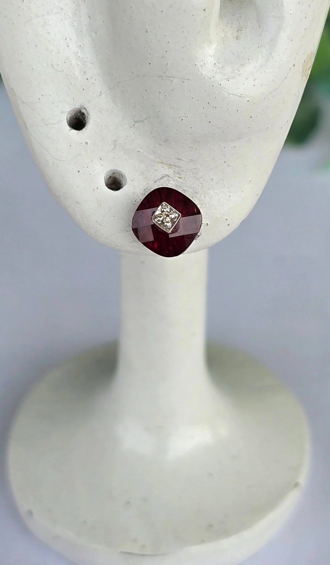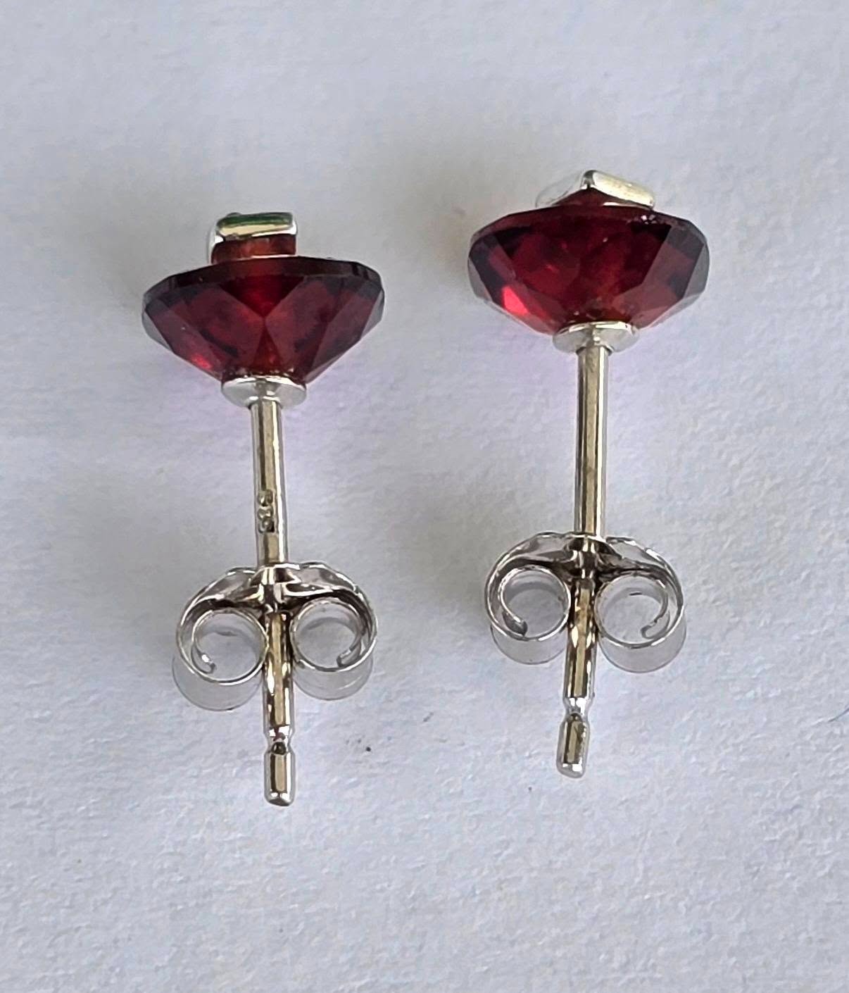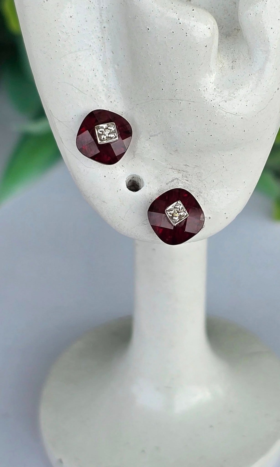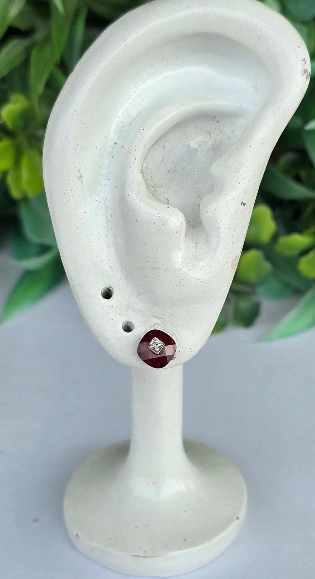 Cercei vechi delicați, din aur de 14K, cu granate și 2 diamante naturale.