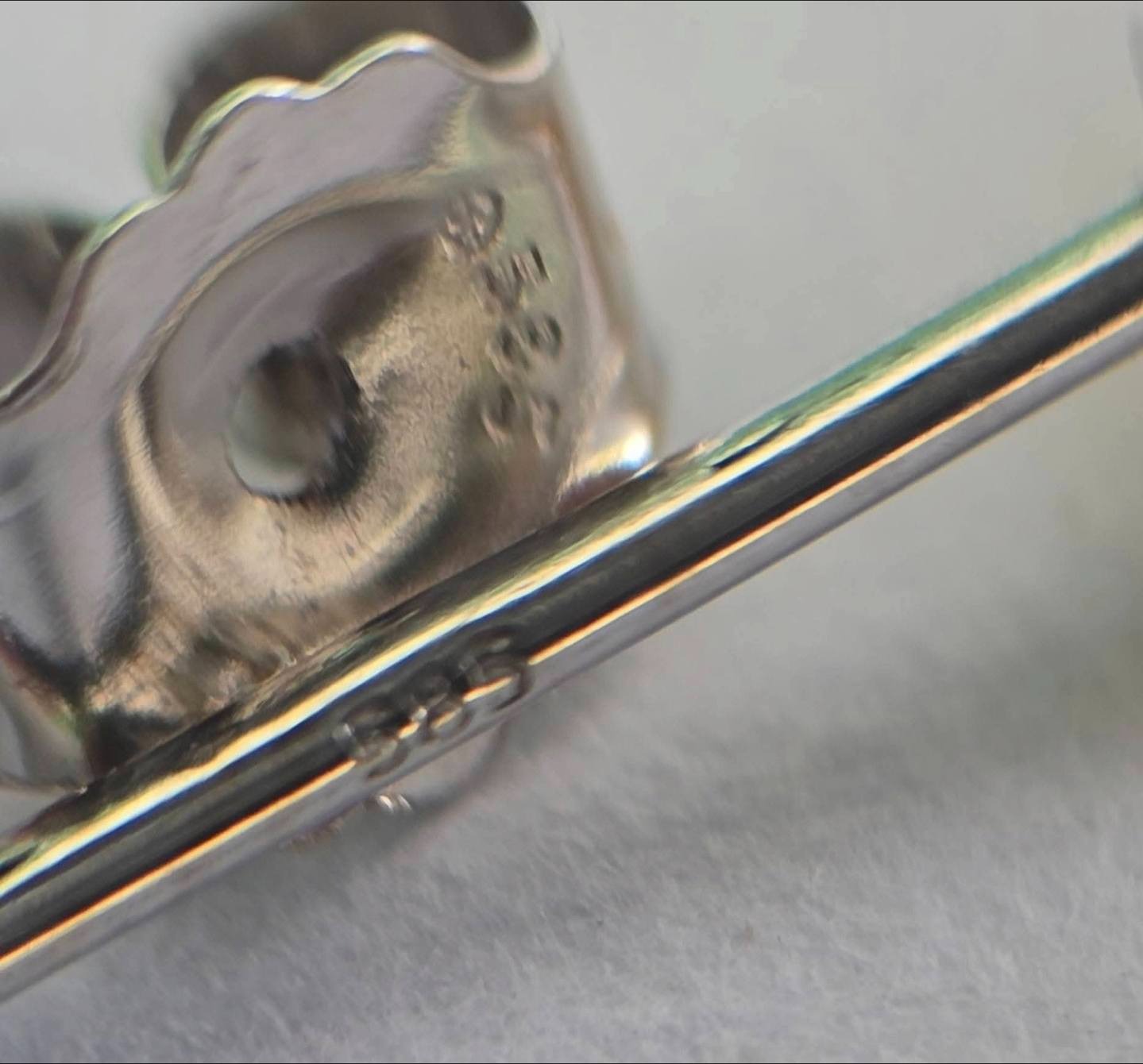 Prezintă marcaje 585 pentru puritate aur de 14K.