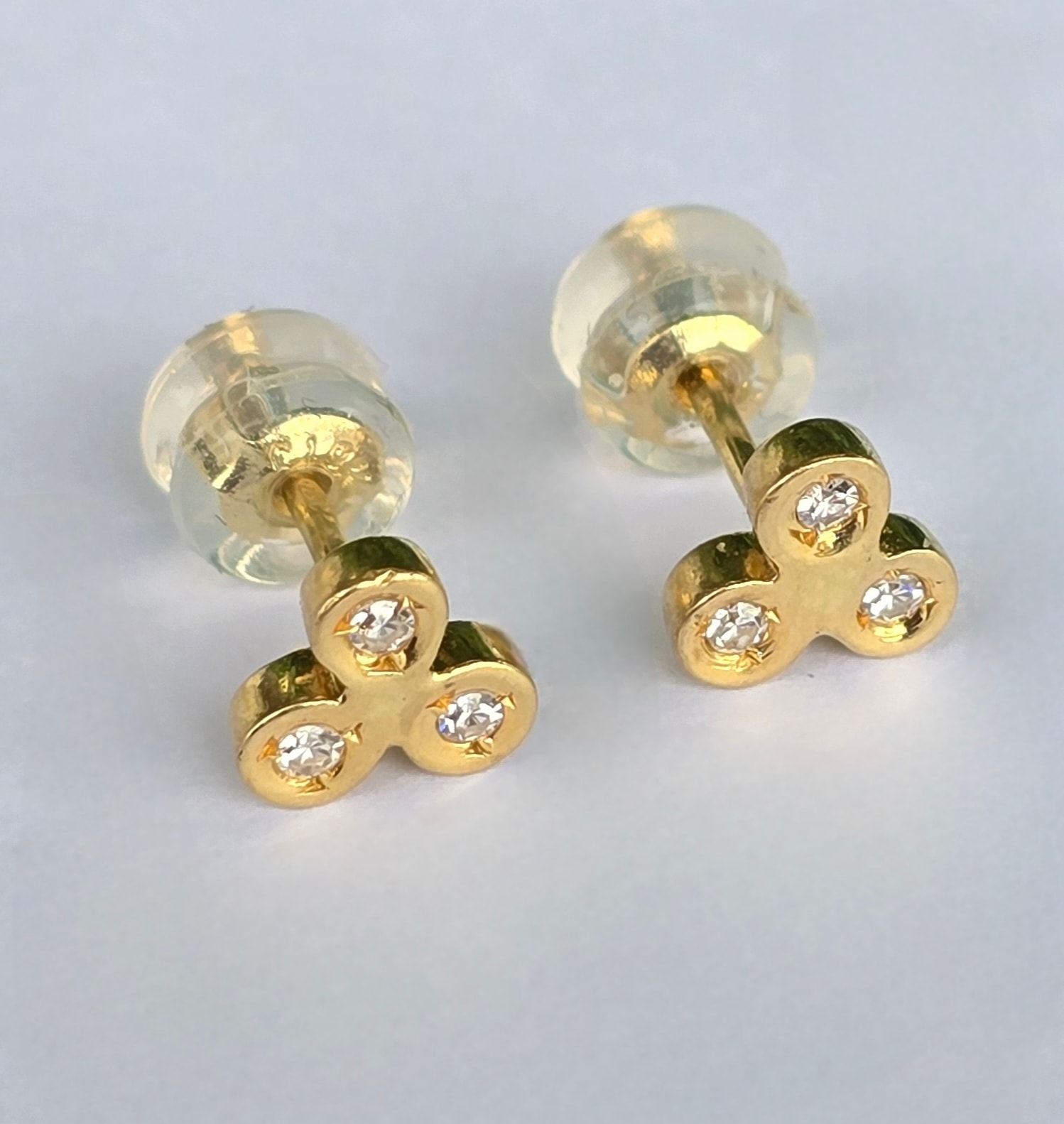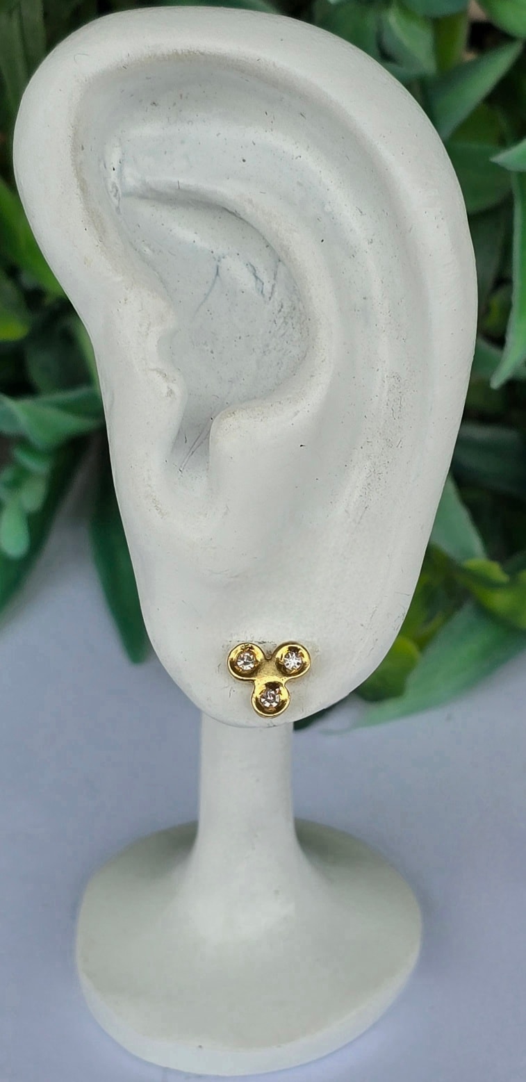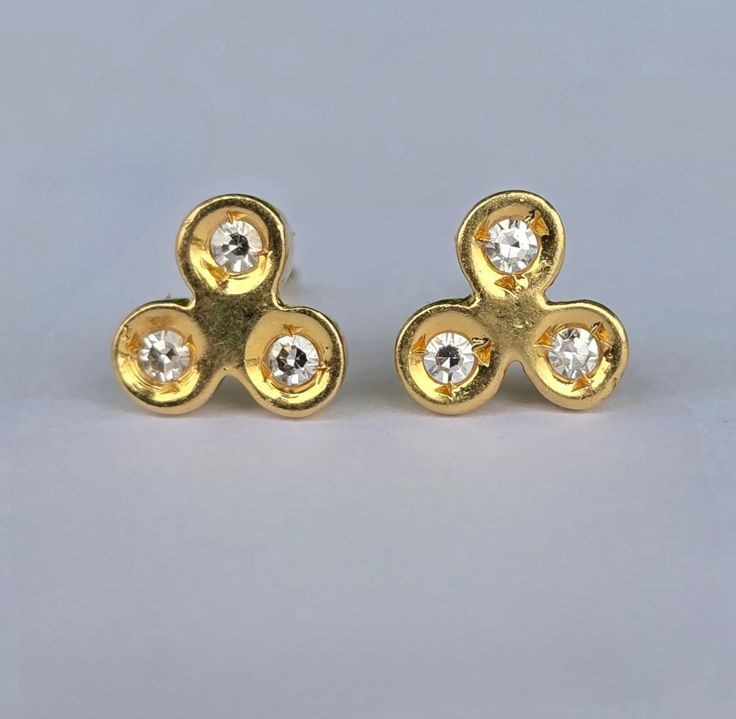 Cercei vechi delicați, din aur de 18K, cu 6 diamante naturale "swiss-cut"