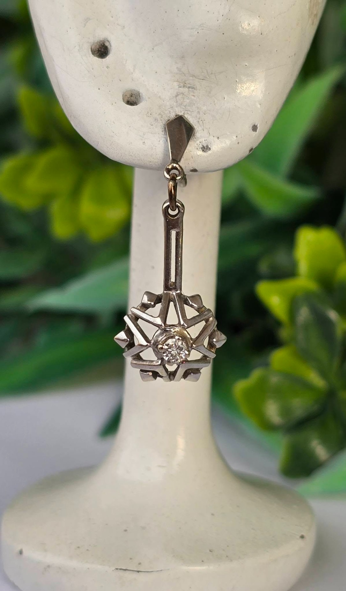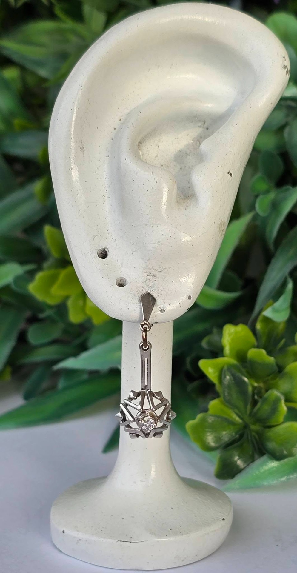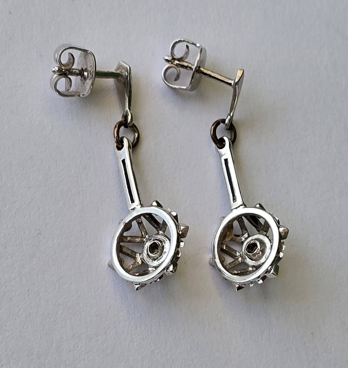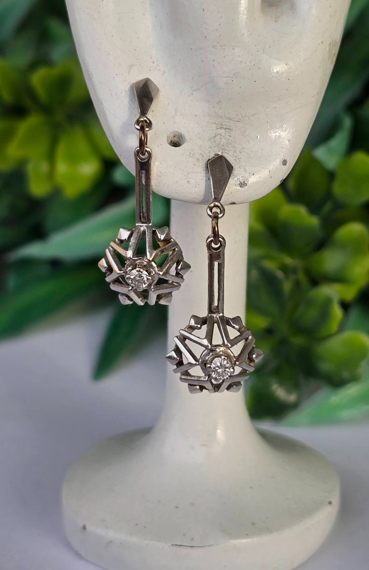 Cercei vechi deosebiți, din aur de 14K, cu 2 diamante naturale de calitate superioară.