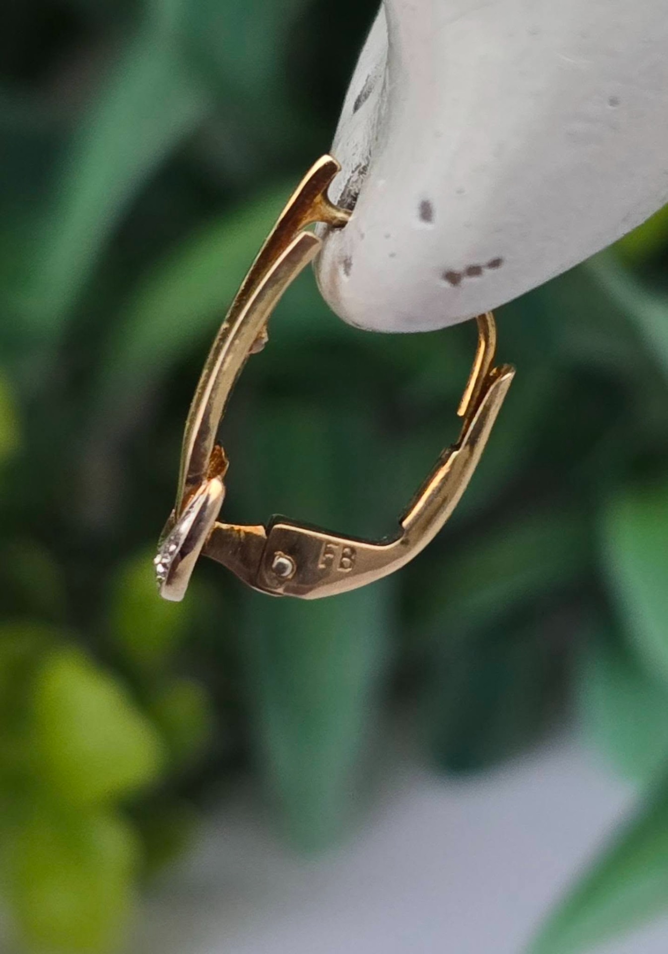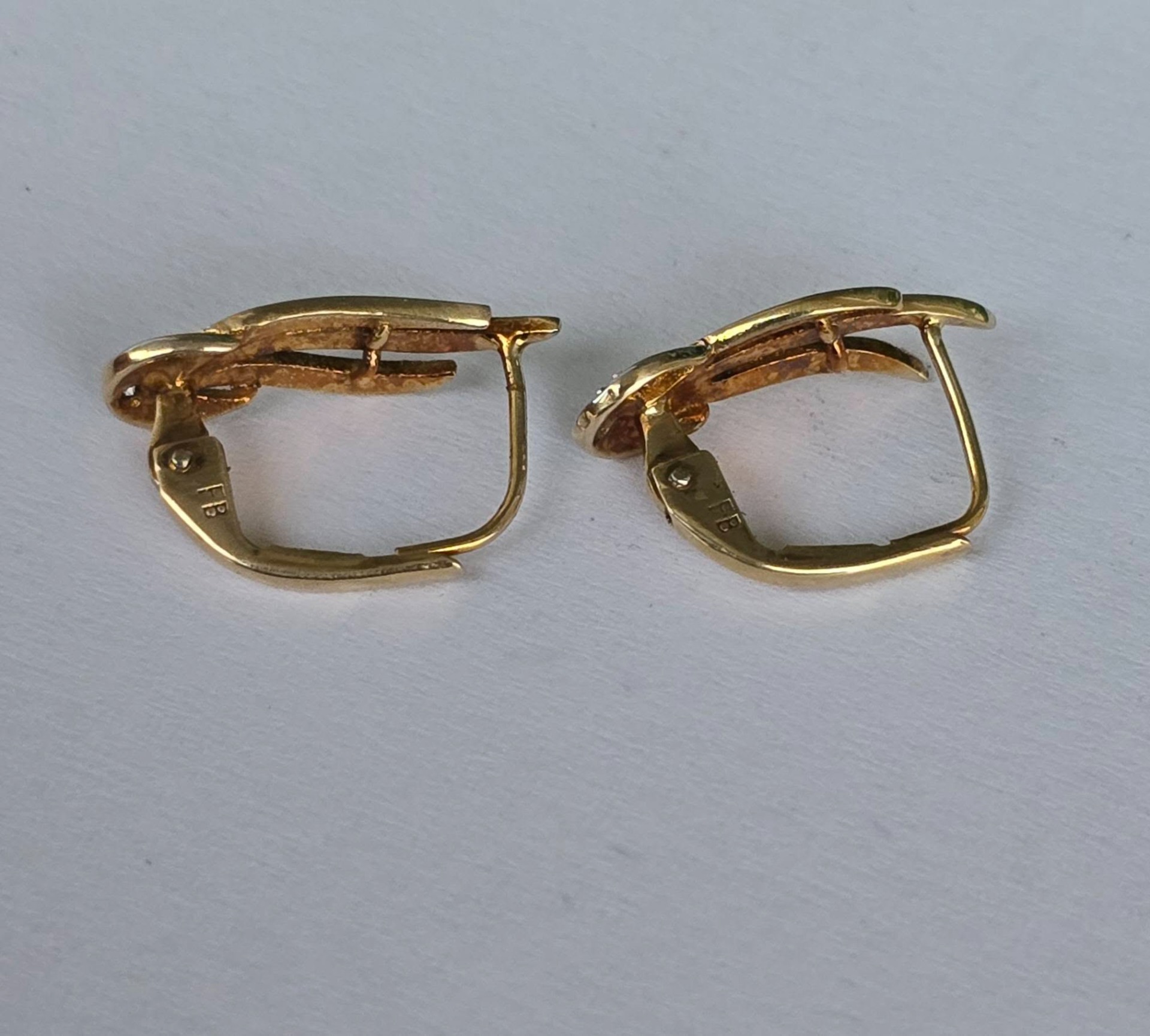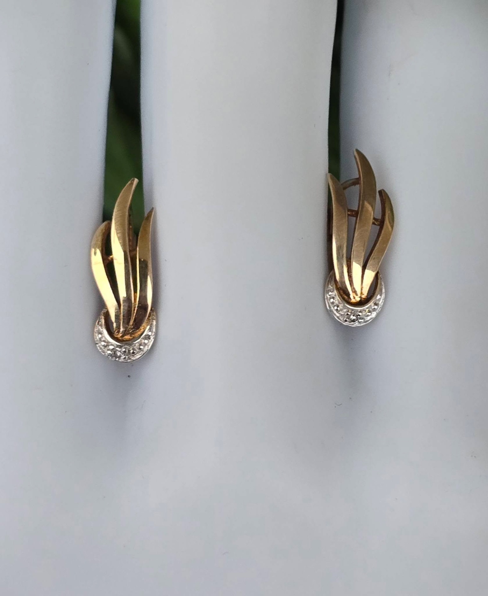 Cercei vechi deosebiți, din aur de 8K, cu 2 diamante naturale (anii 1940-1950, Germania).