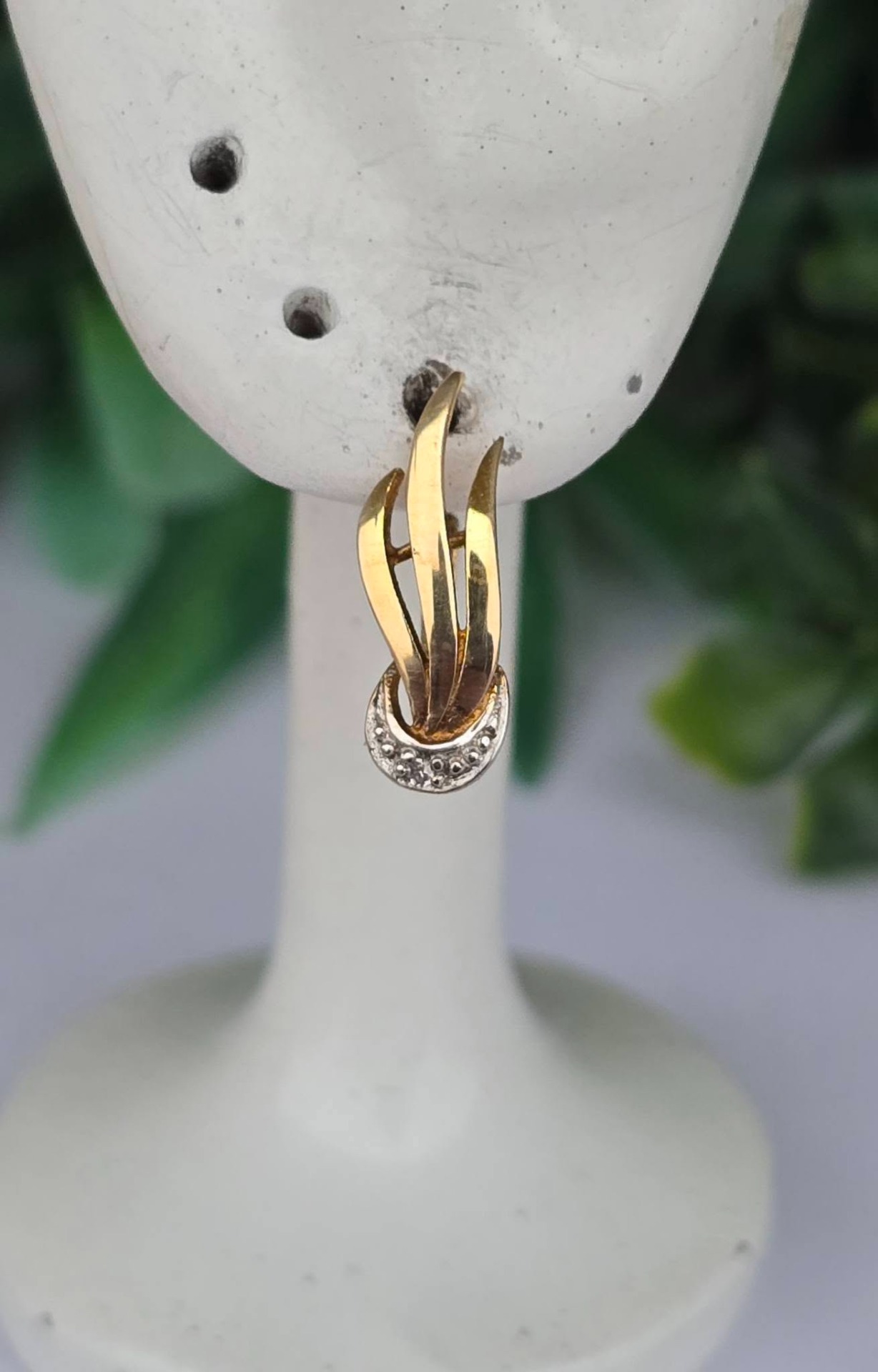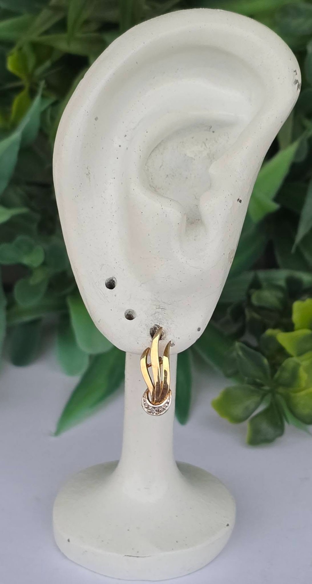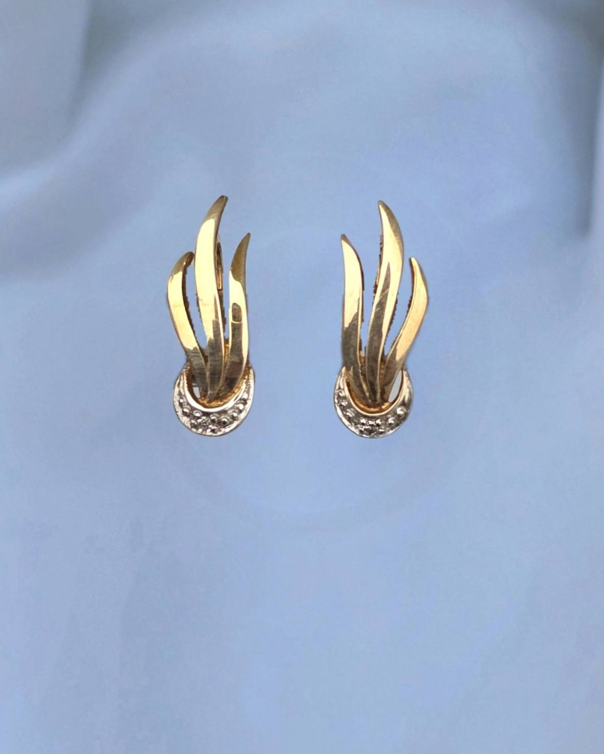 Cercei vechi deosebiți, din aur de 8K, cu 2 diamante naturale (anii 1940-1950, Germania).