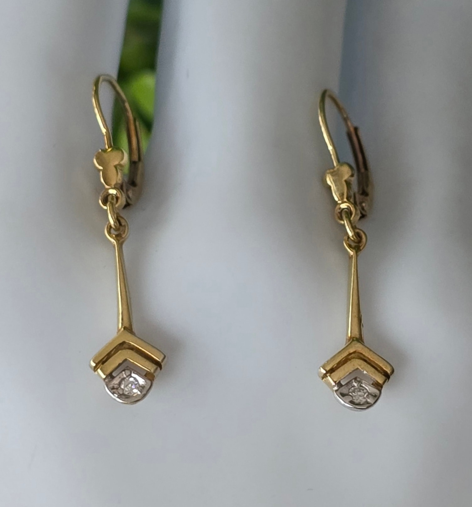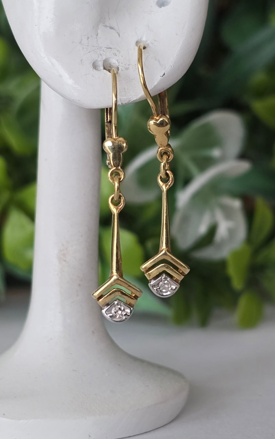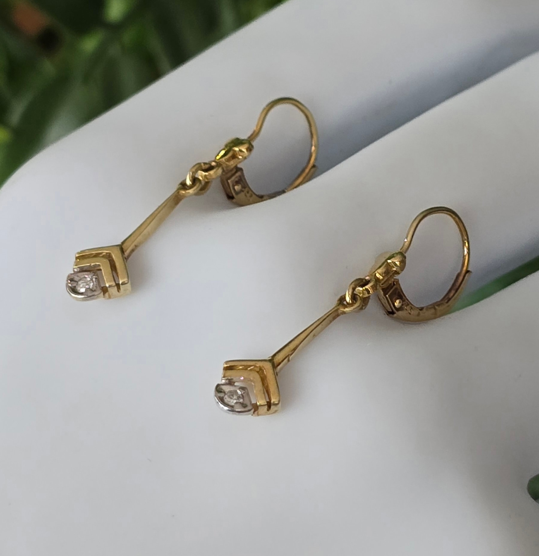 Cercei vechi deosebiți, din aur de 8K, cu 2 diamante naturale (anii 1940-1950, Germania).