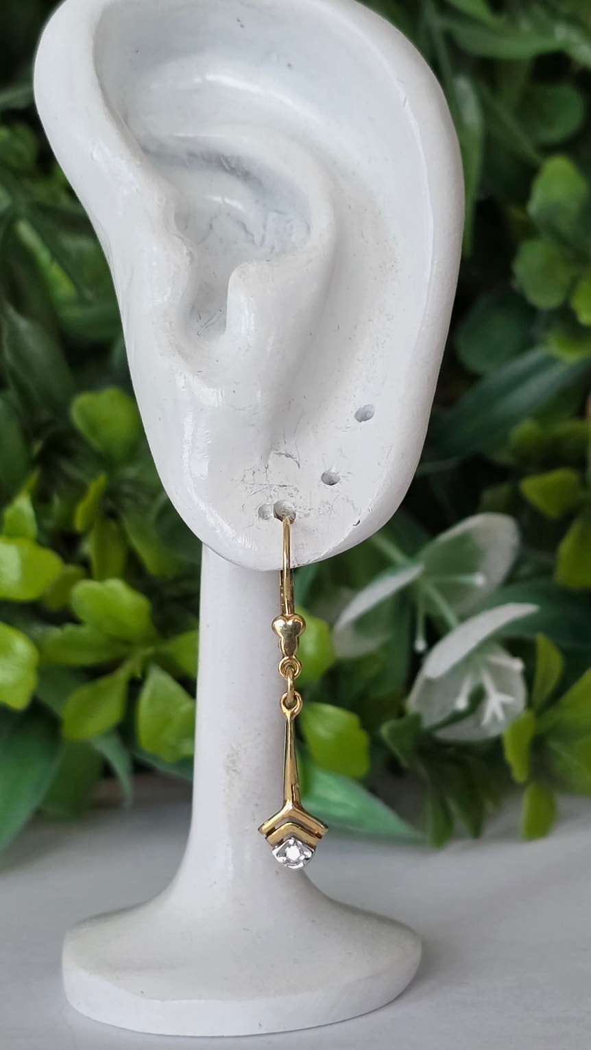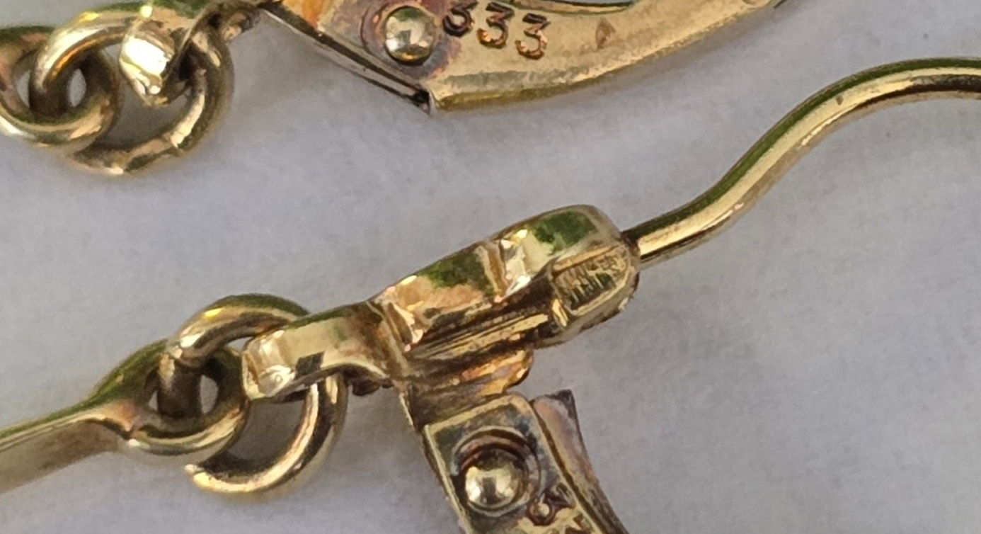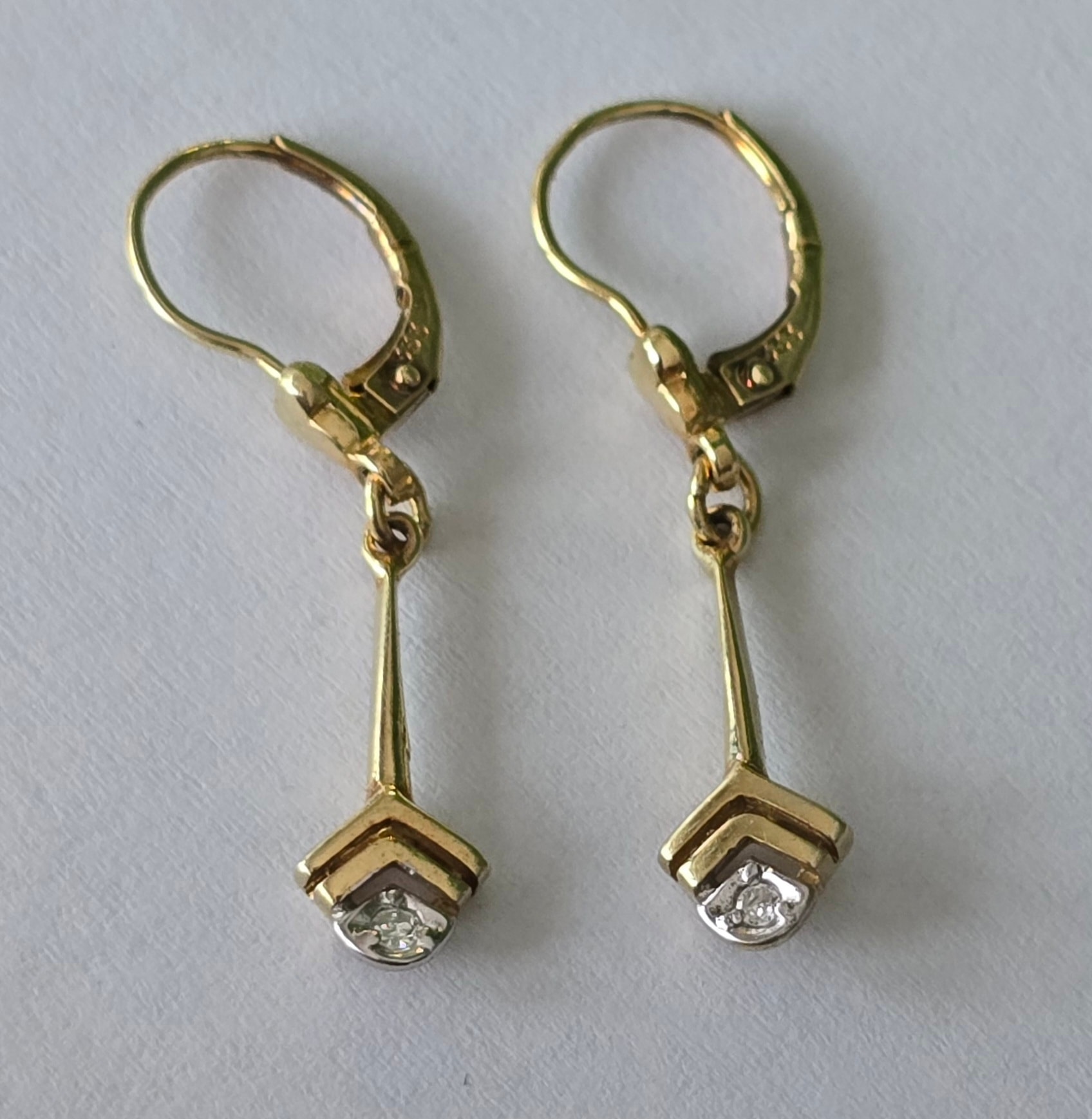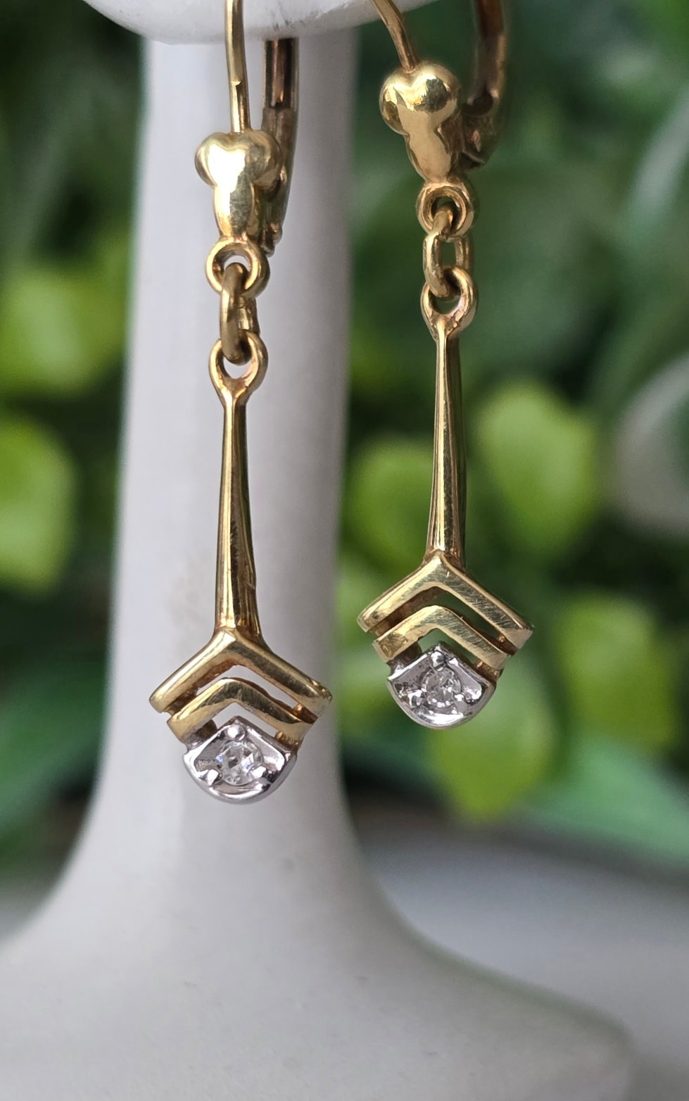 Cercei vechi deosebiți, din aur de 8K, cu 2 diamante naturale (anii 1940-1950, Germania).
