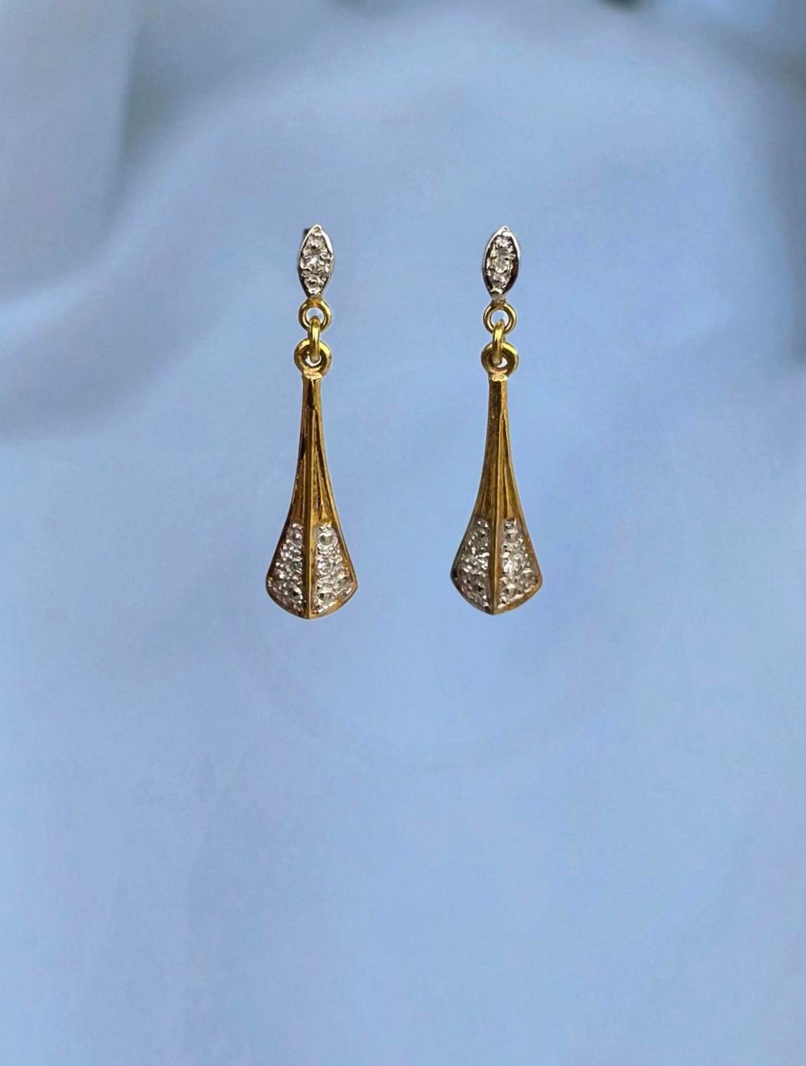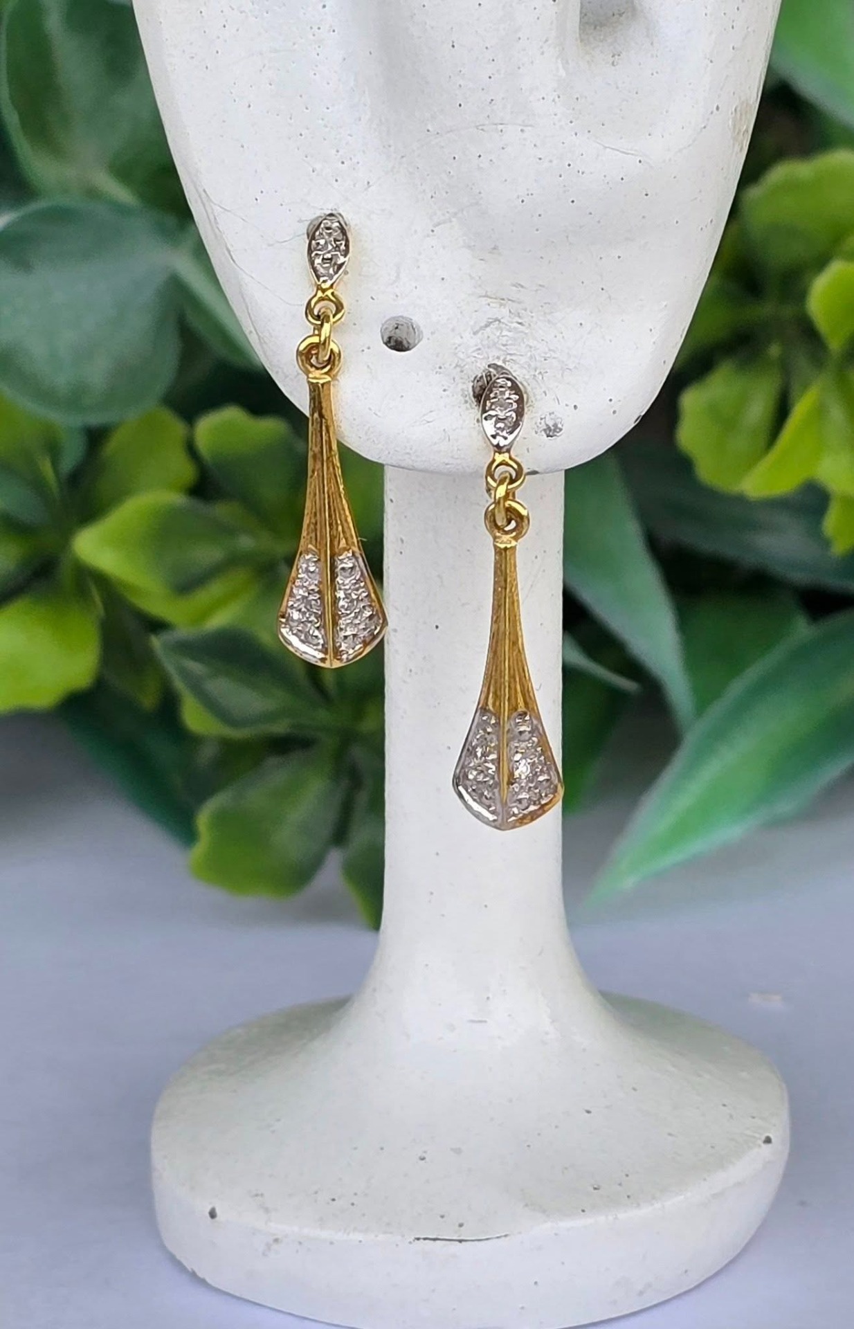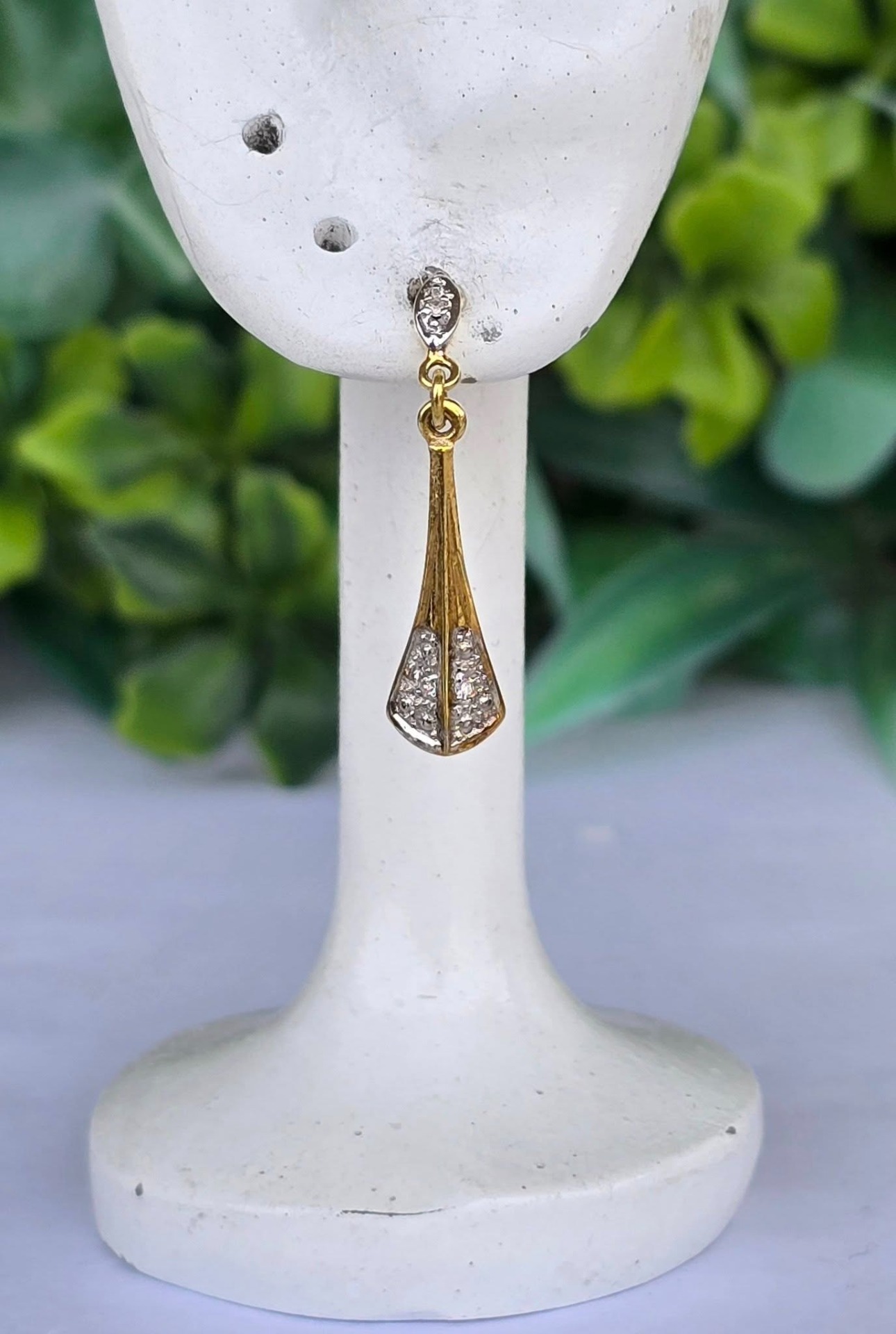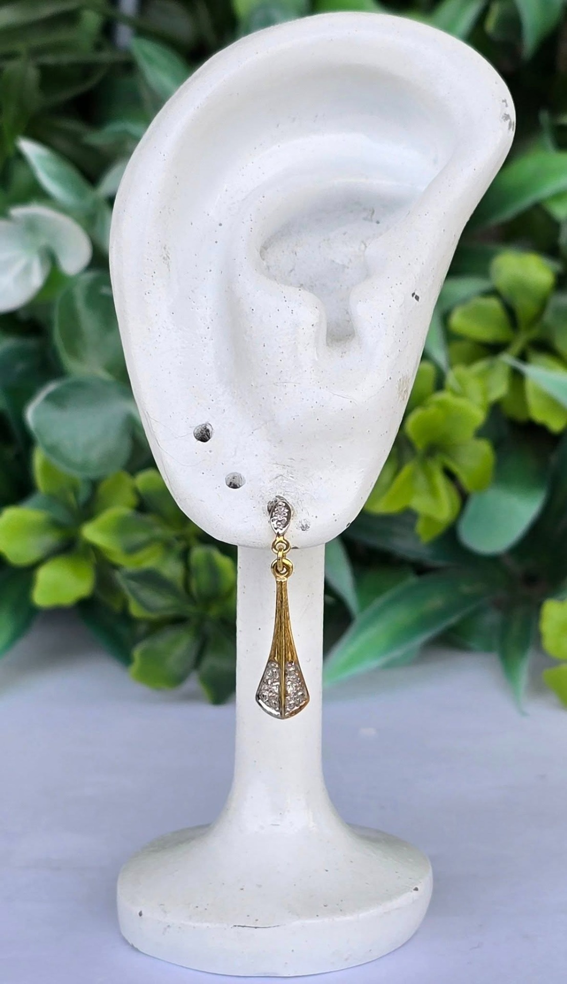 Cercei vechi deosebiți, din aur de 8K, cu 6 diamante naturale (anii 1940-1950, Germania).