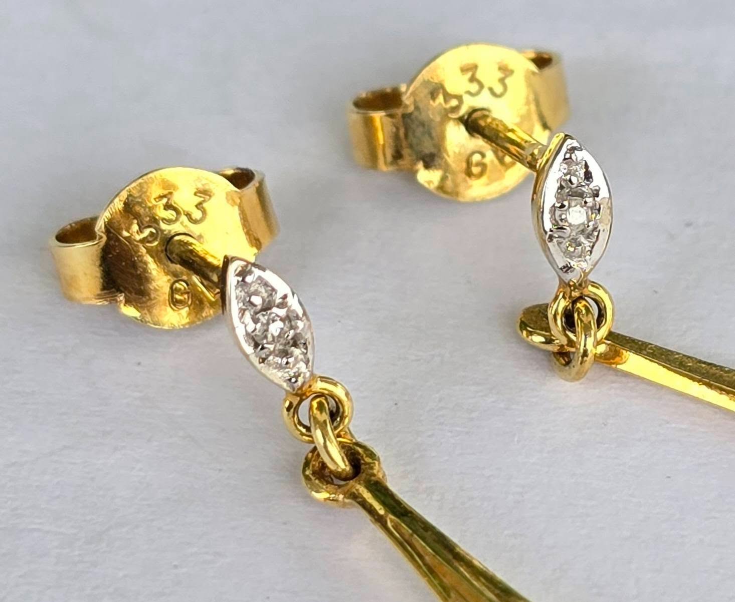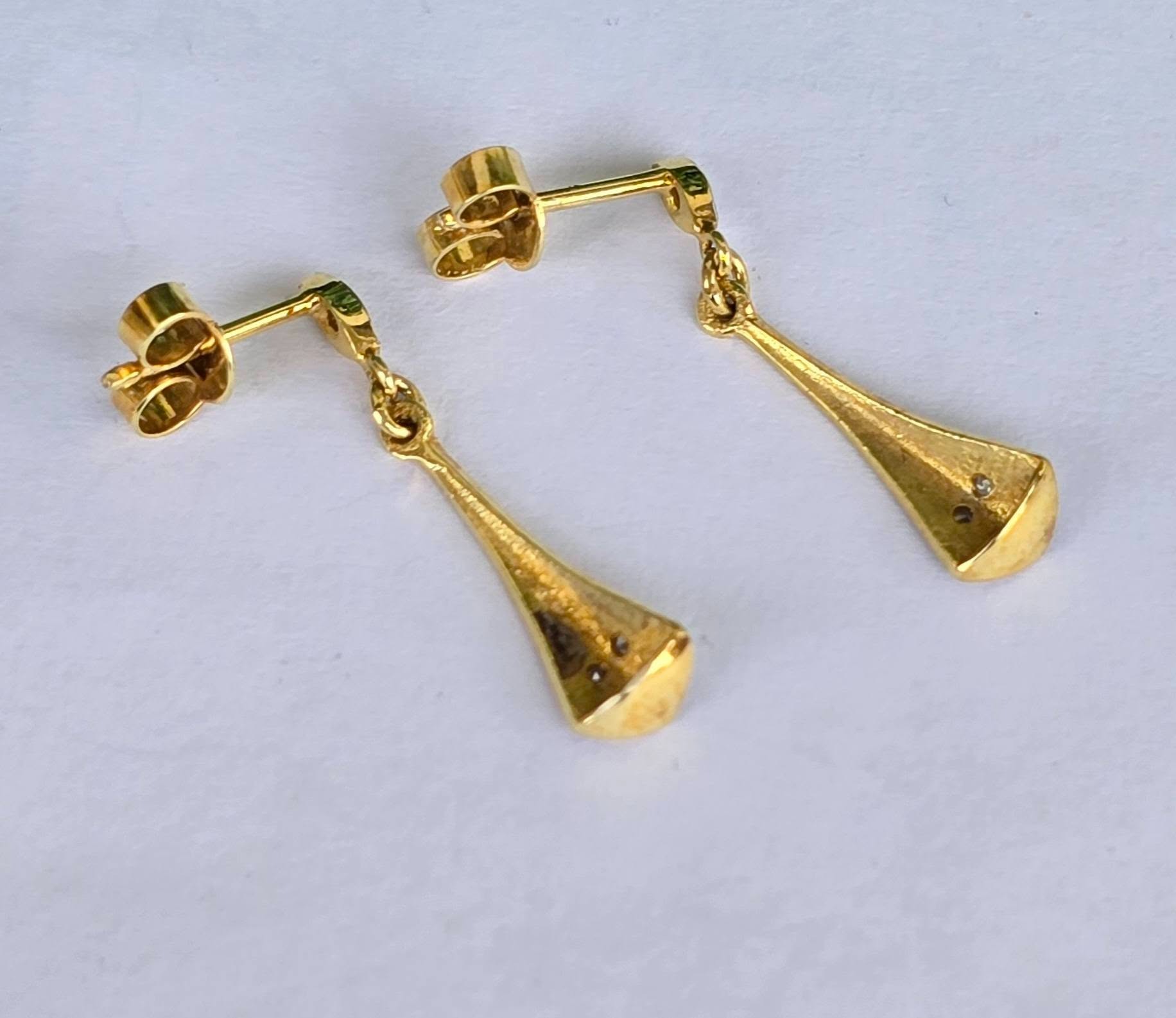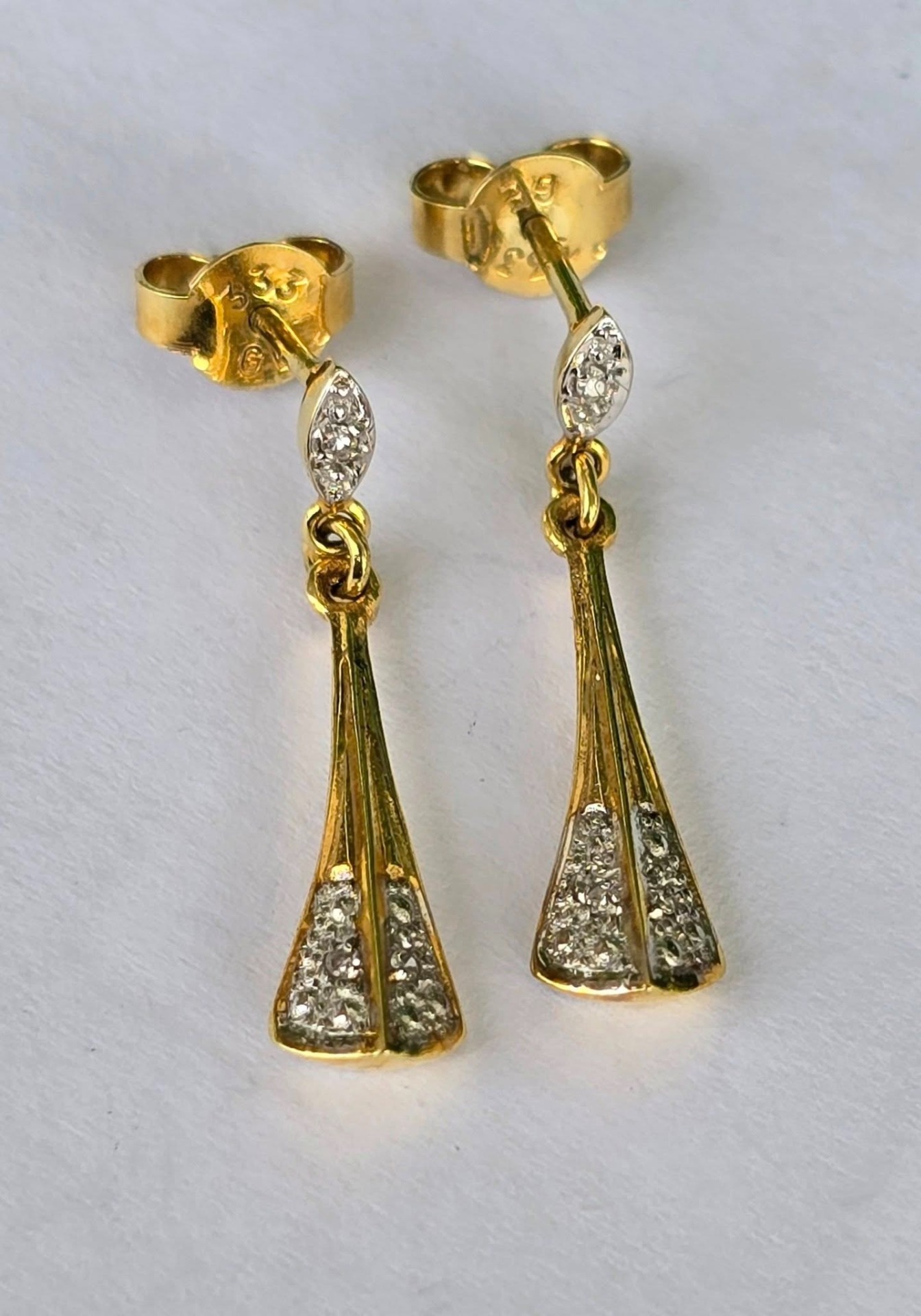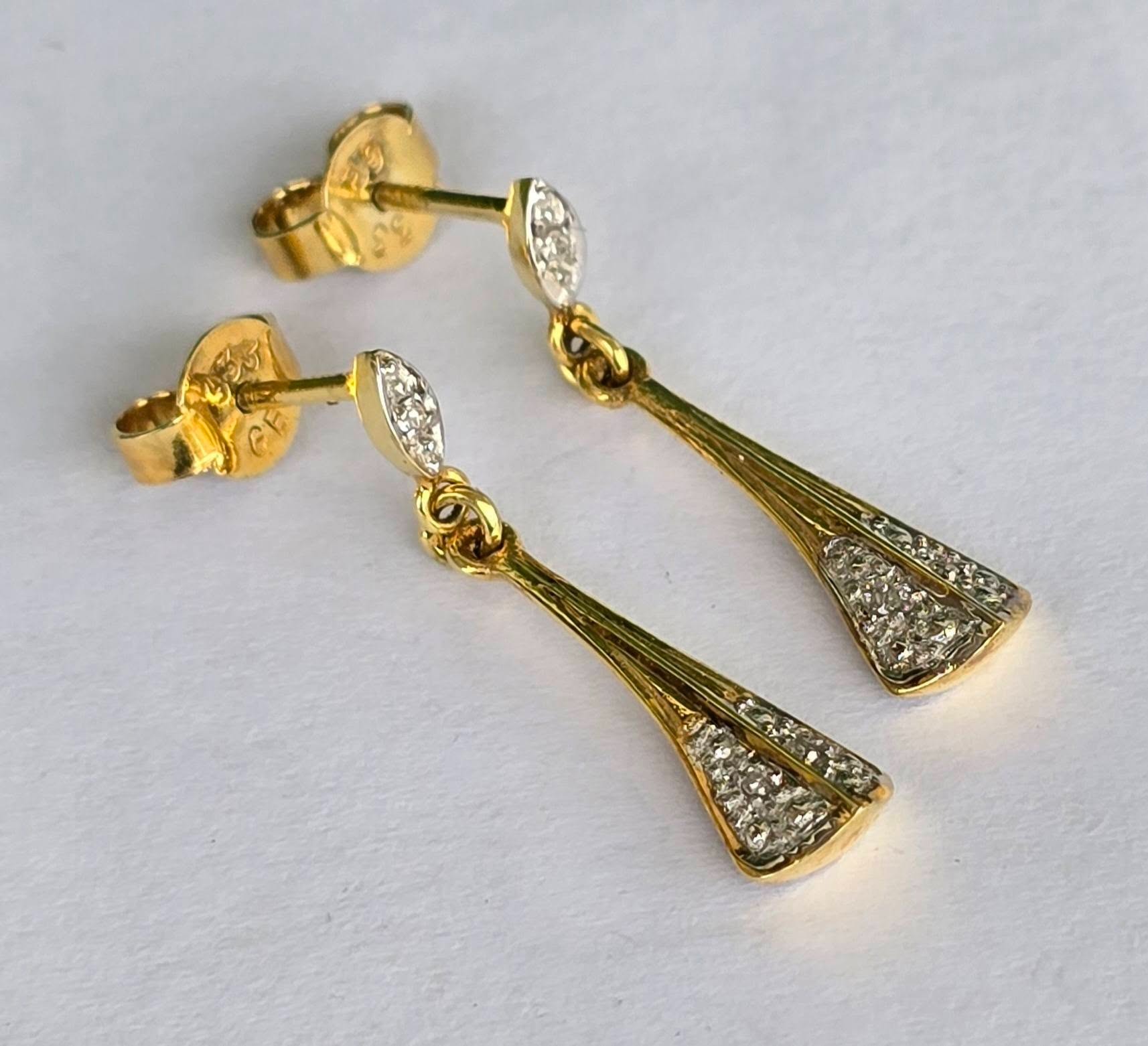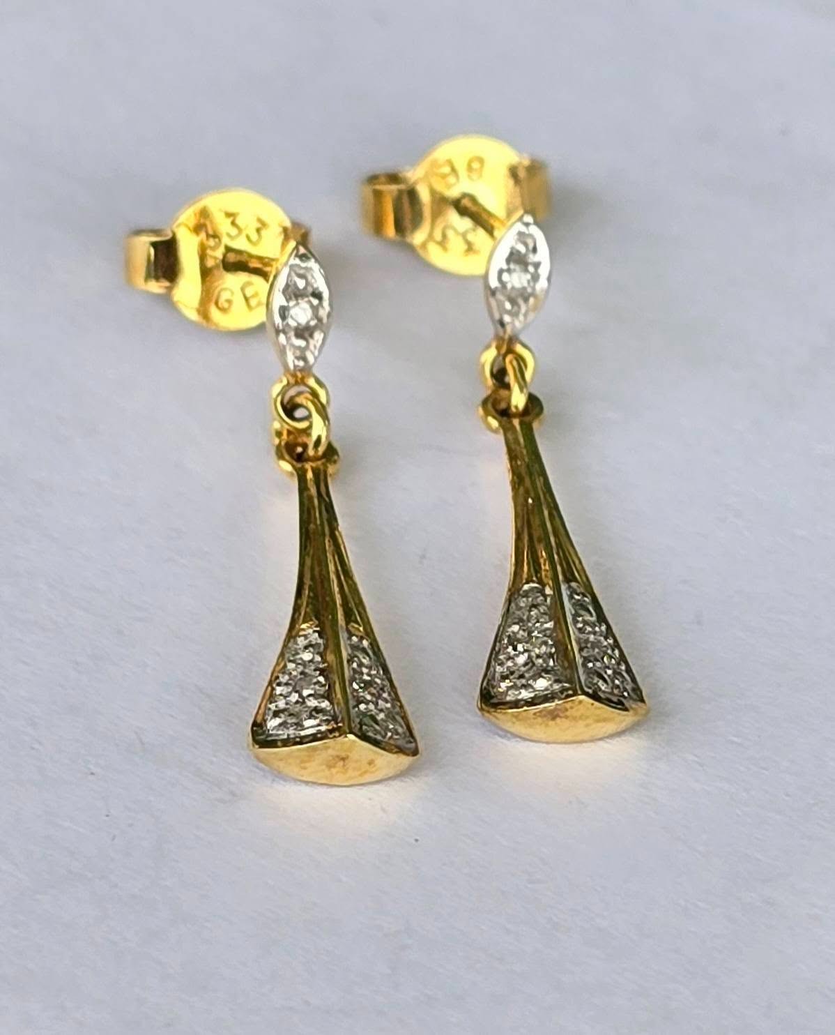 Cercei vechi deosebiți, din aur de 8K, cu 6 diamante naturale (anii 1940-1950, Germania).