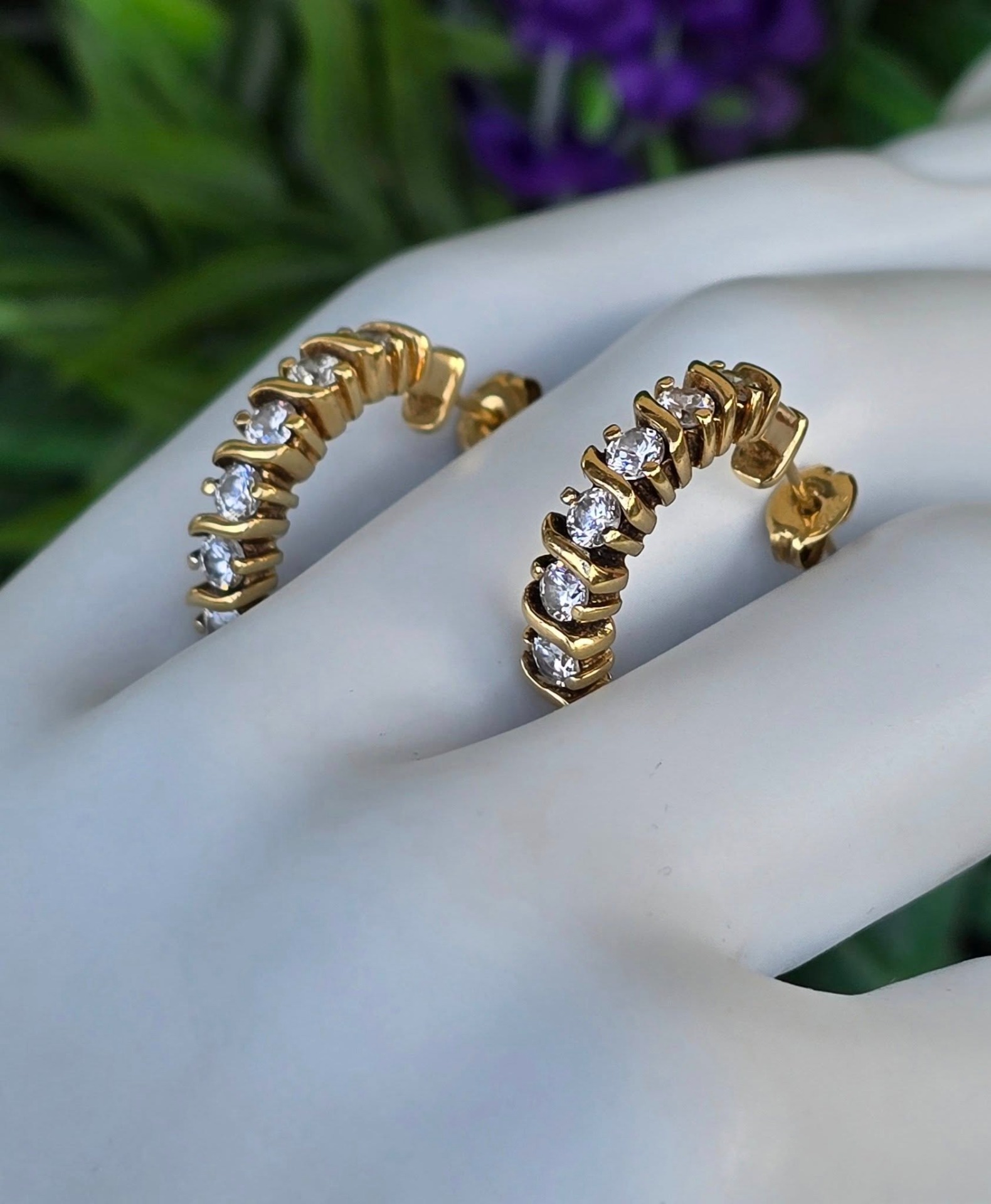 Cercei vechi din argint aurit, cu pietre cubic zirconia.