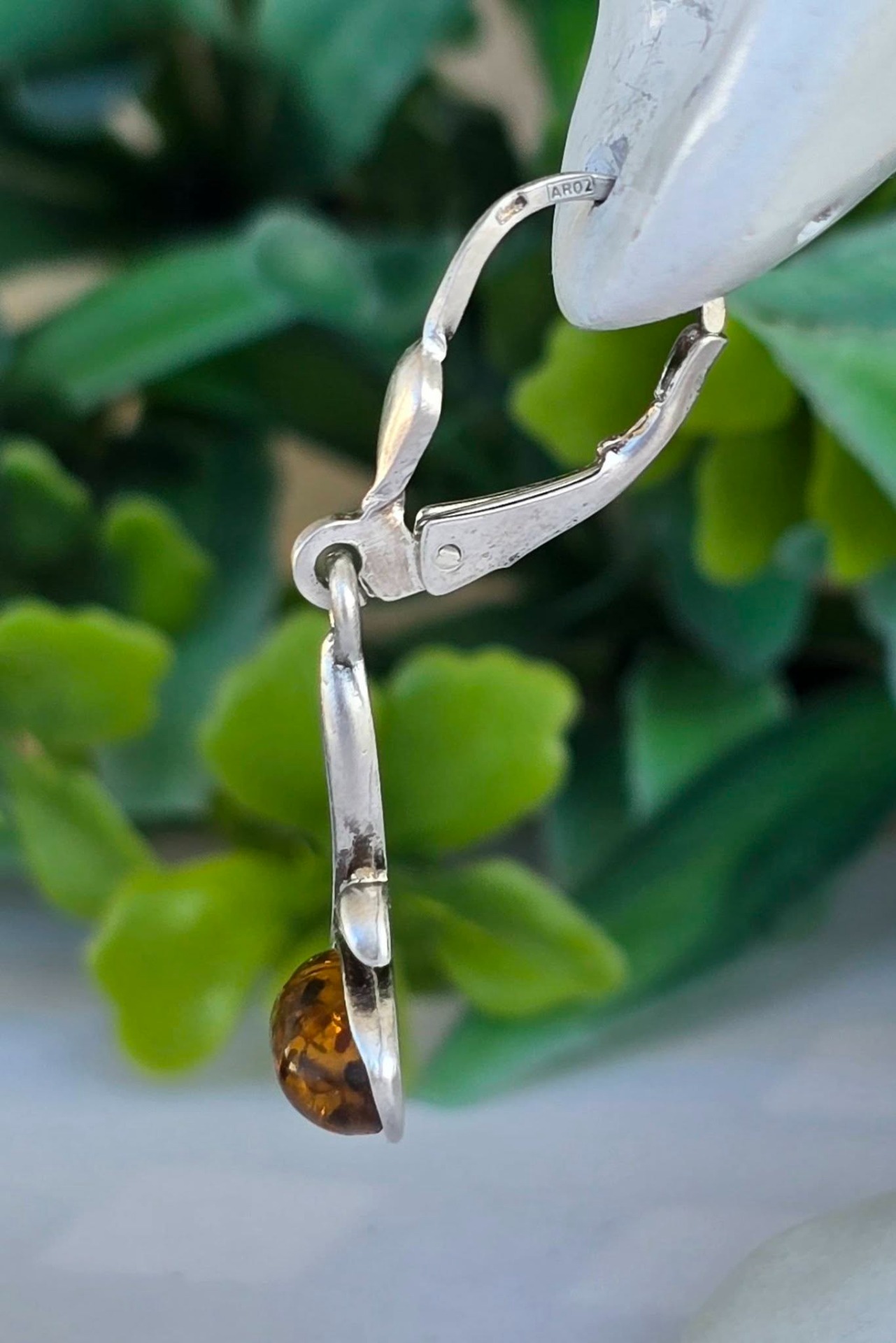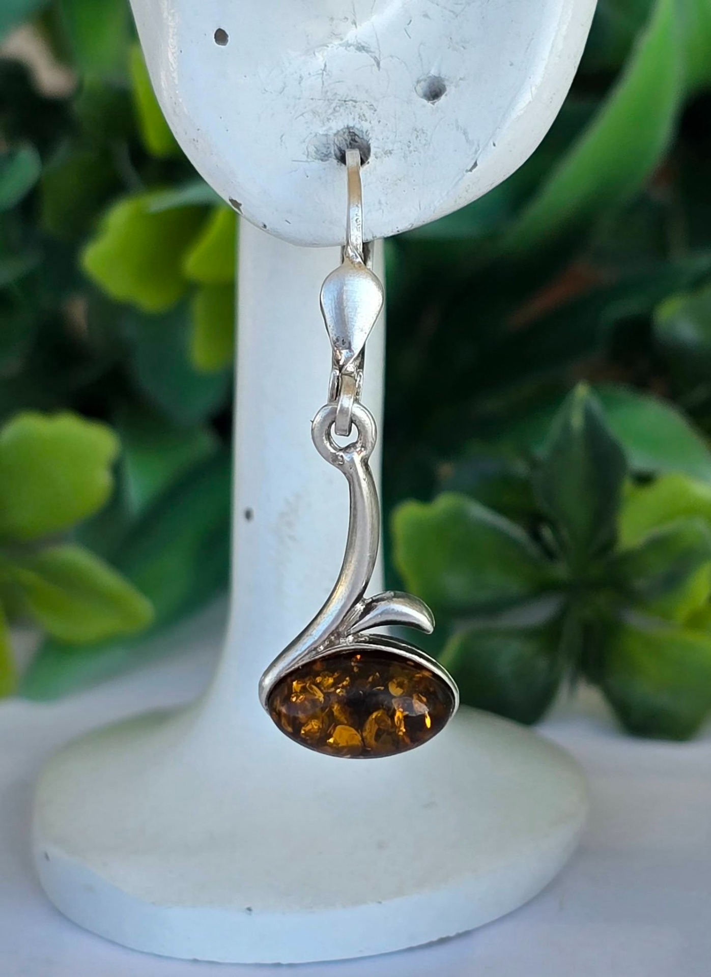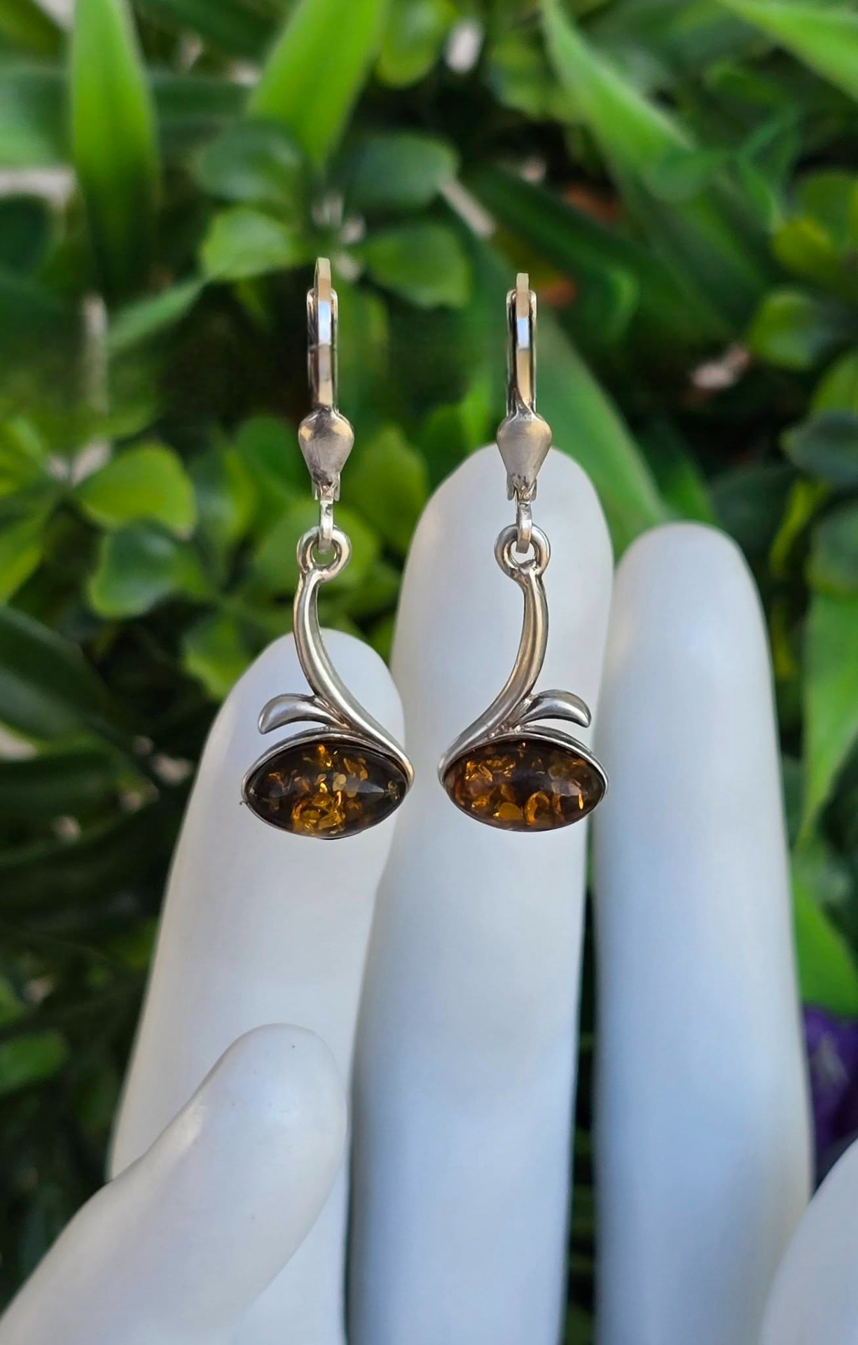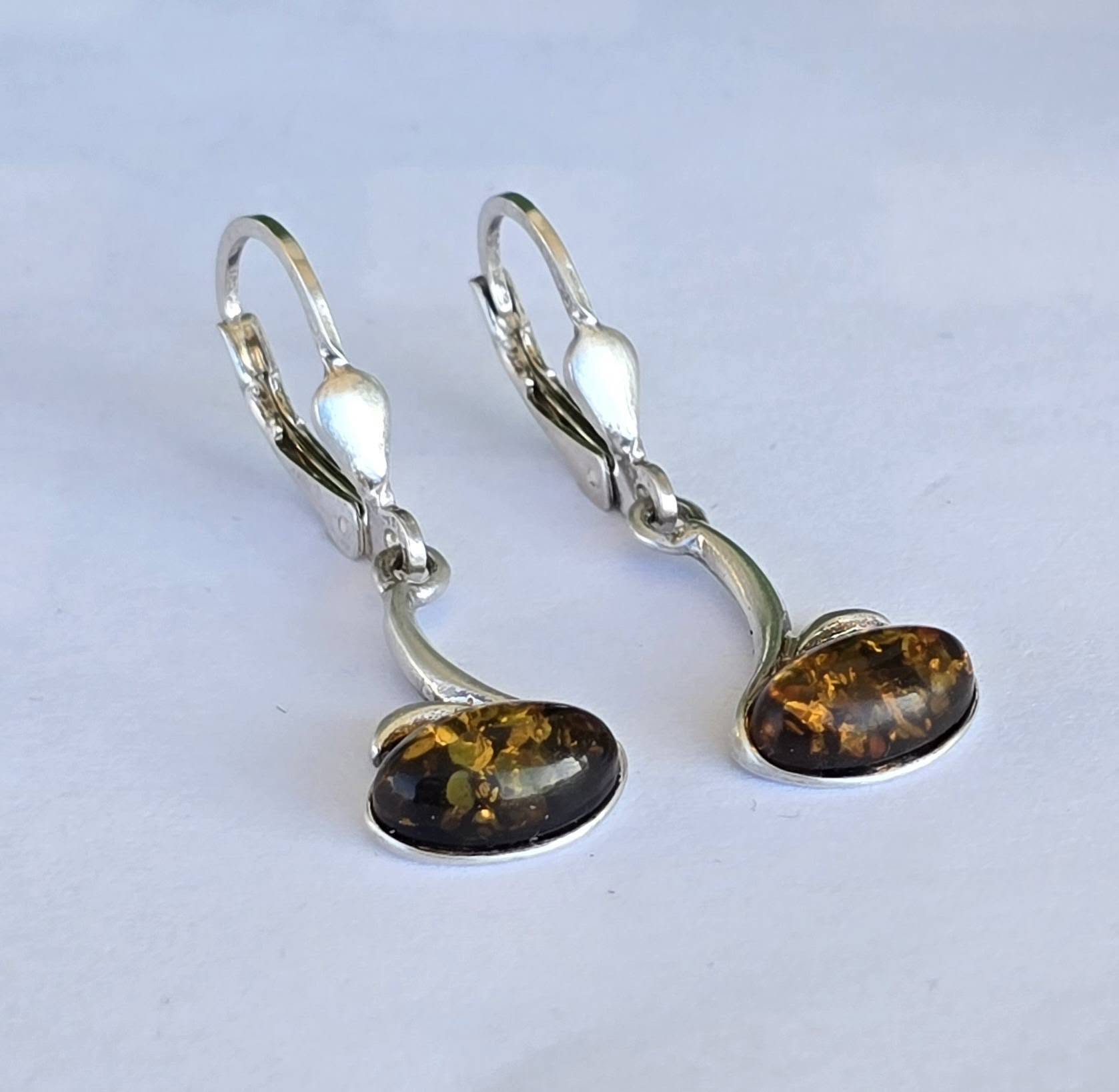 Cercei vechi din argint, cu chihlimbar baltic natural.