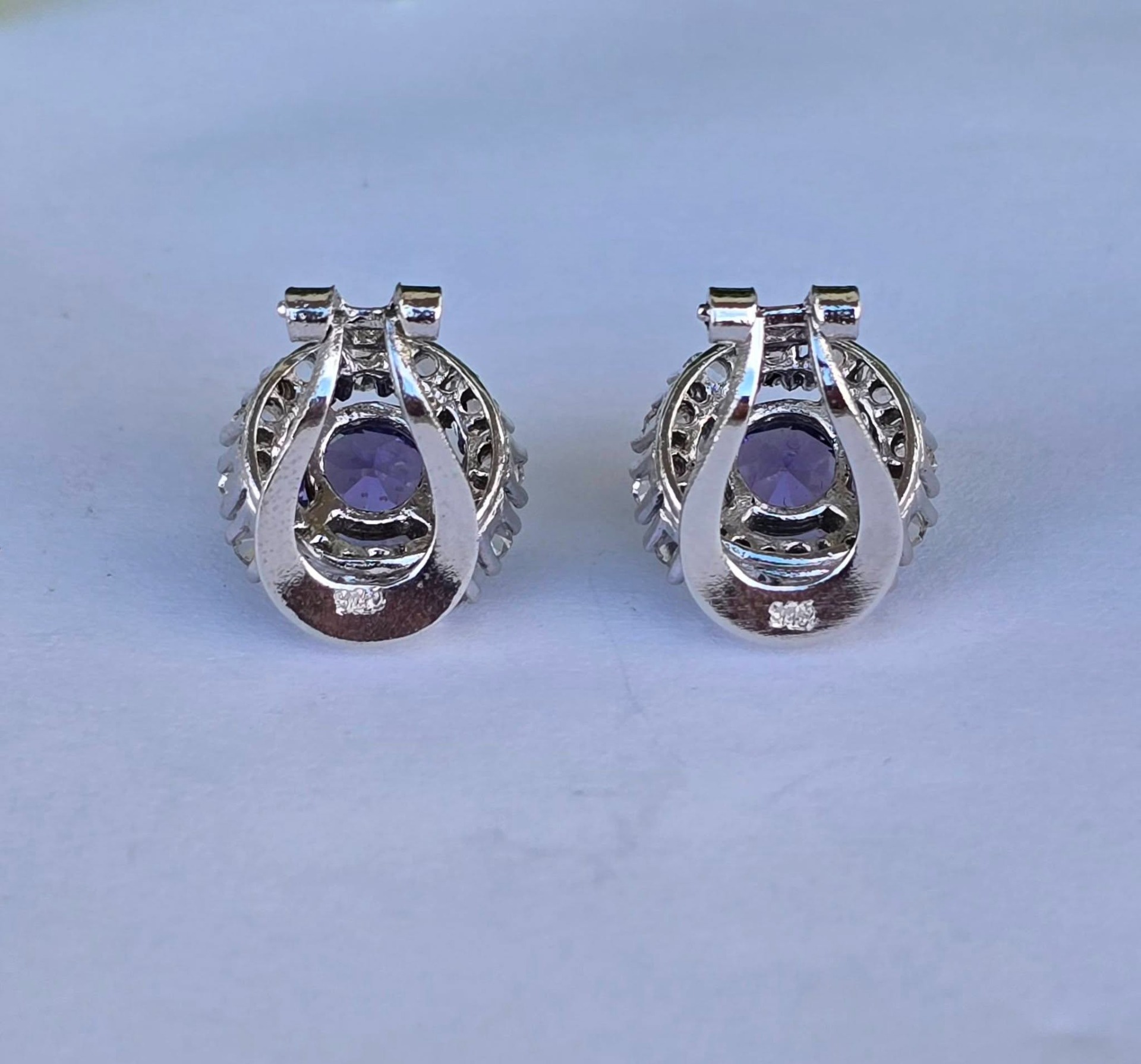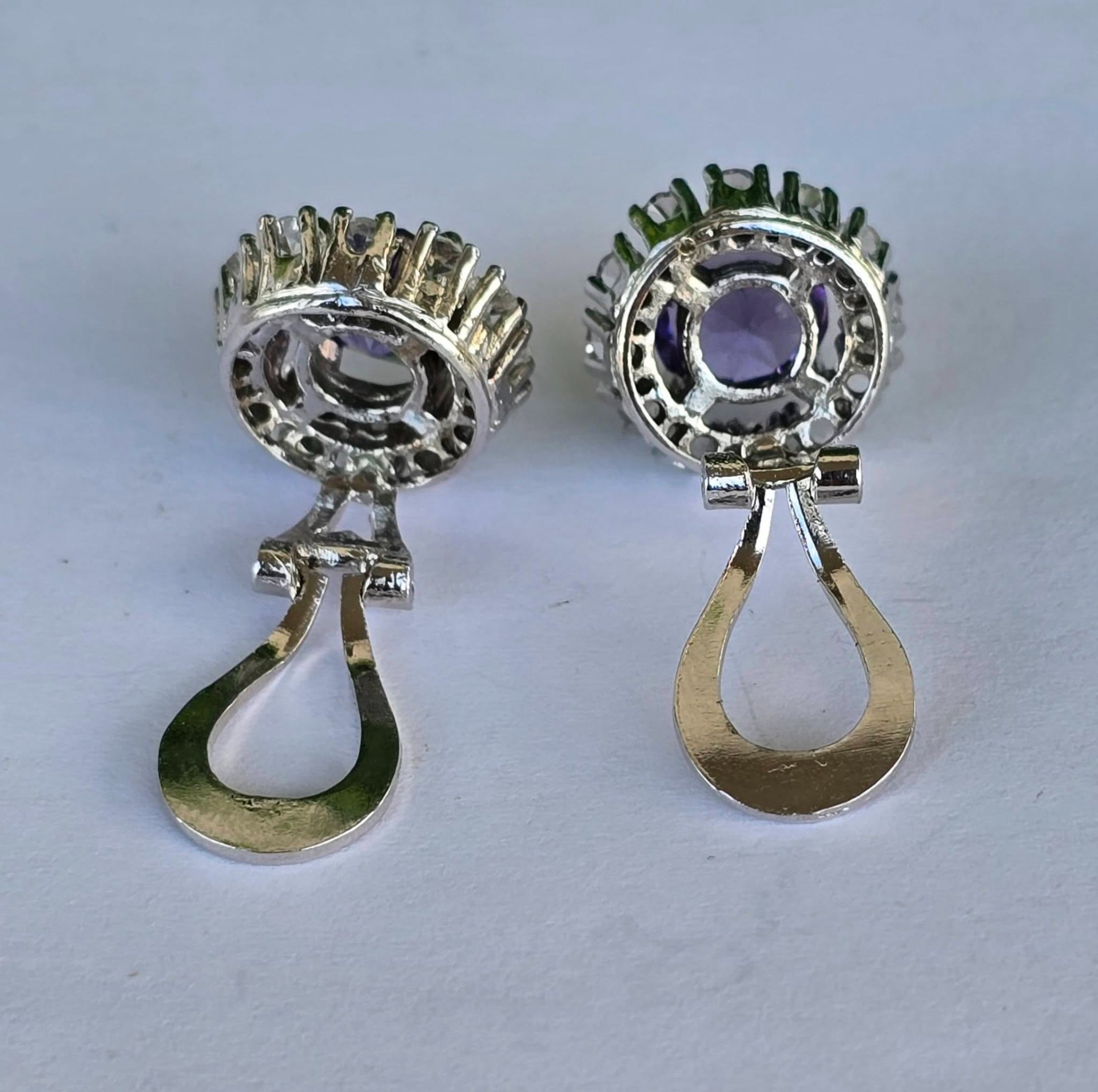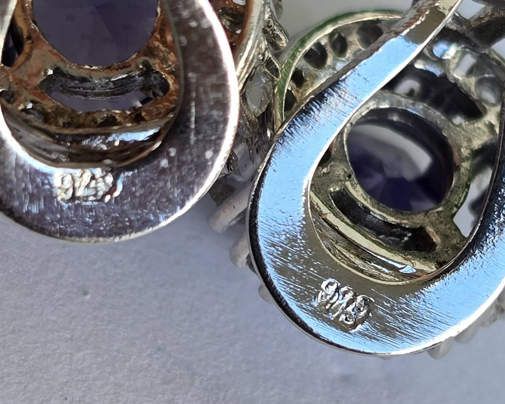 Cercei vechi din argint, cu pietre cubic zirconia, cu prindere de tip "clips".
