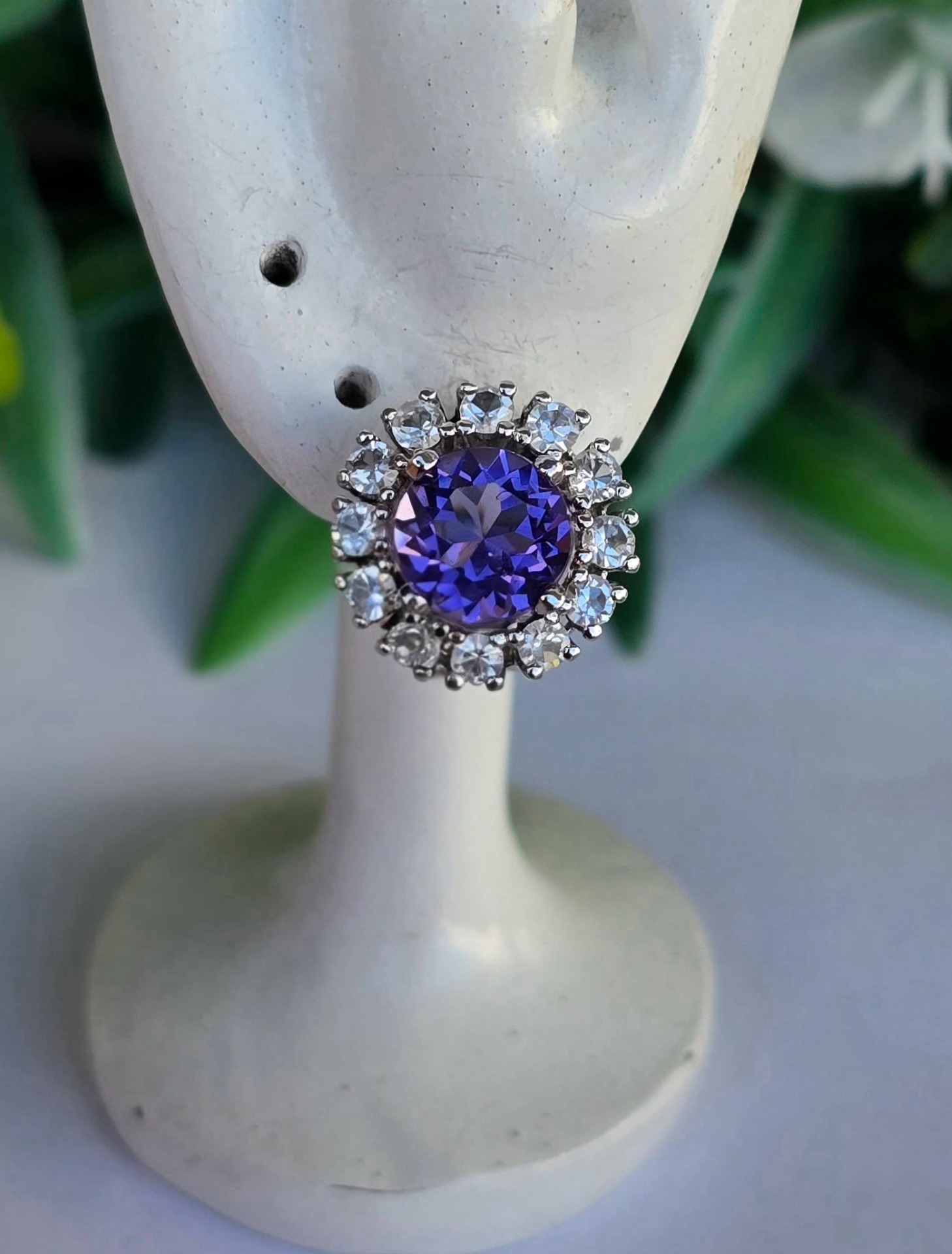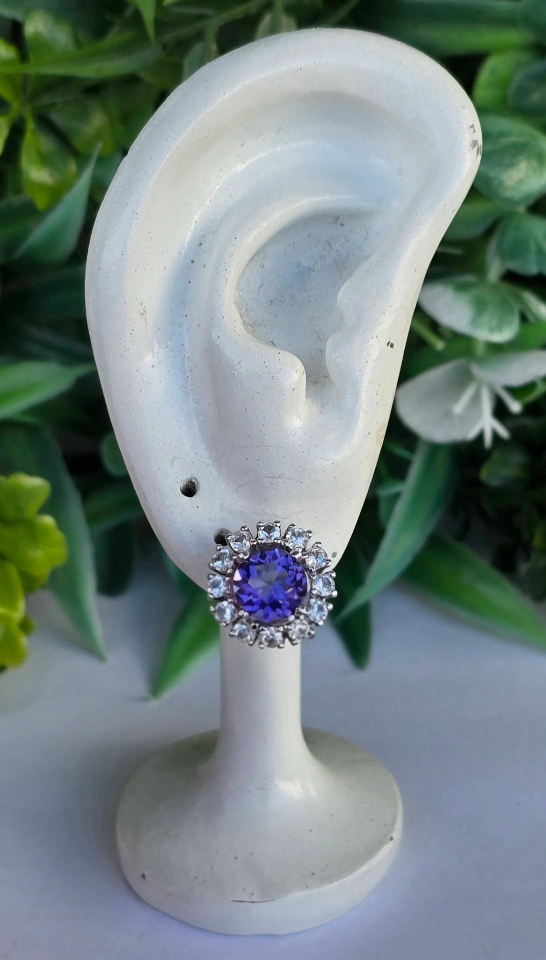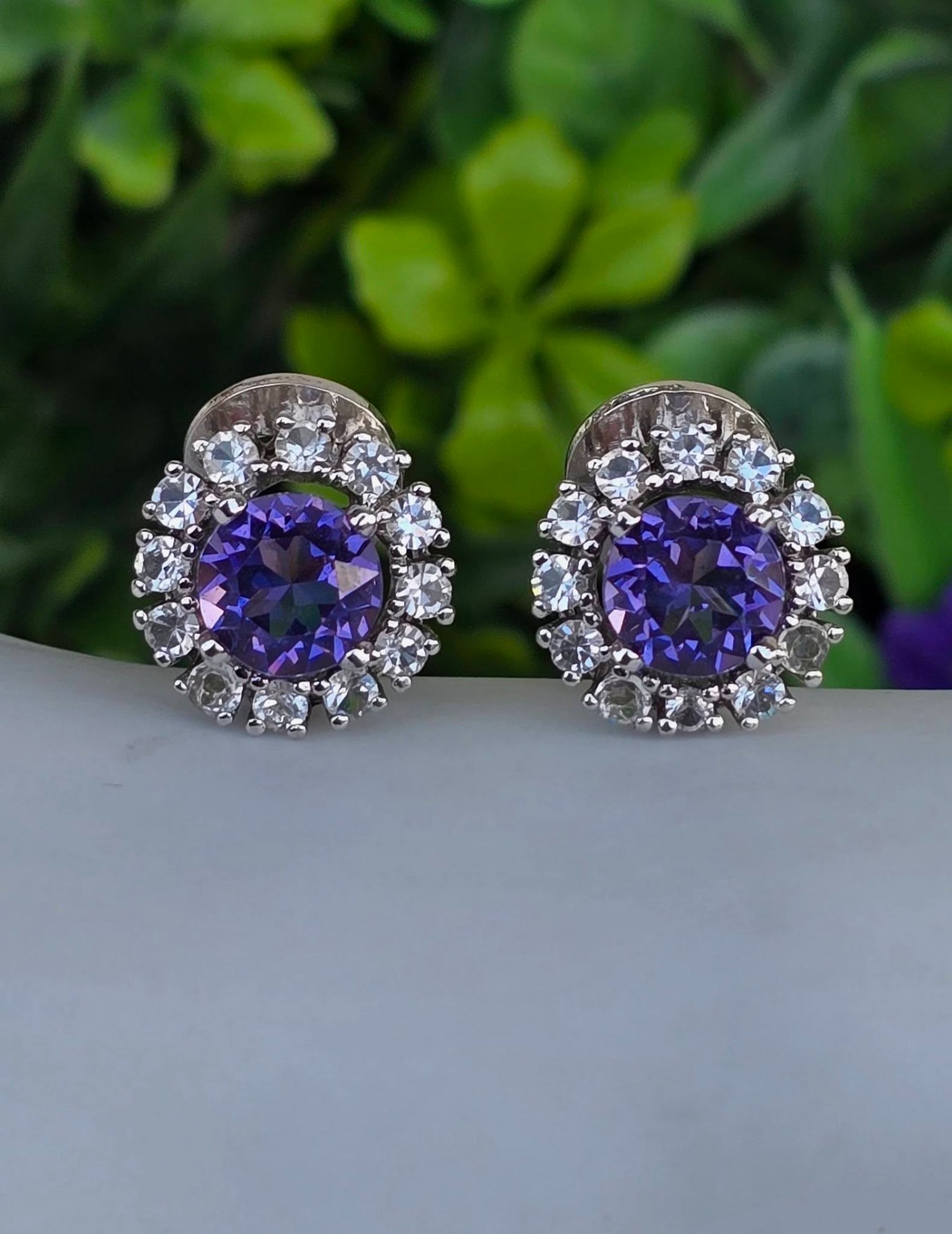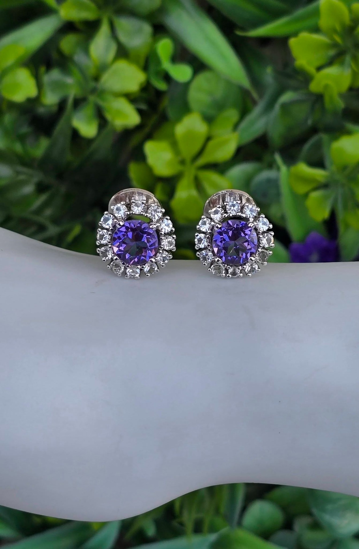 Cercei vechi din argint, cu pietre cubic zirconia, cu prindere de tip "clips".
