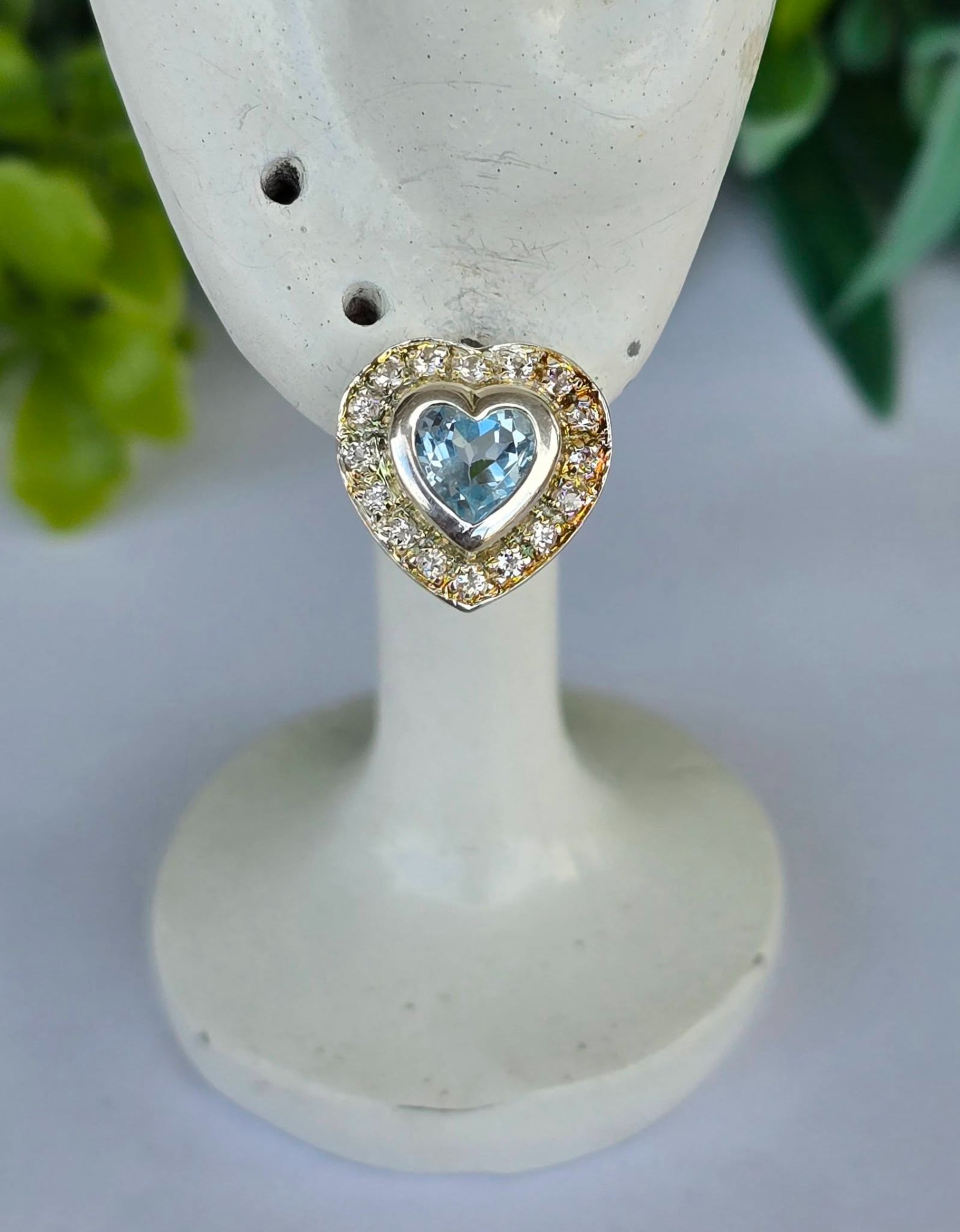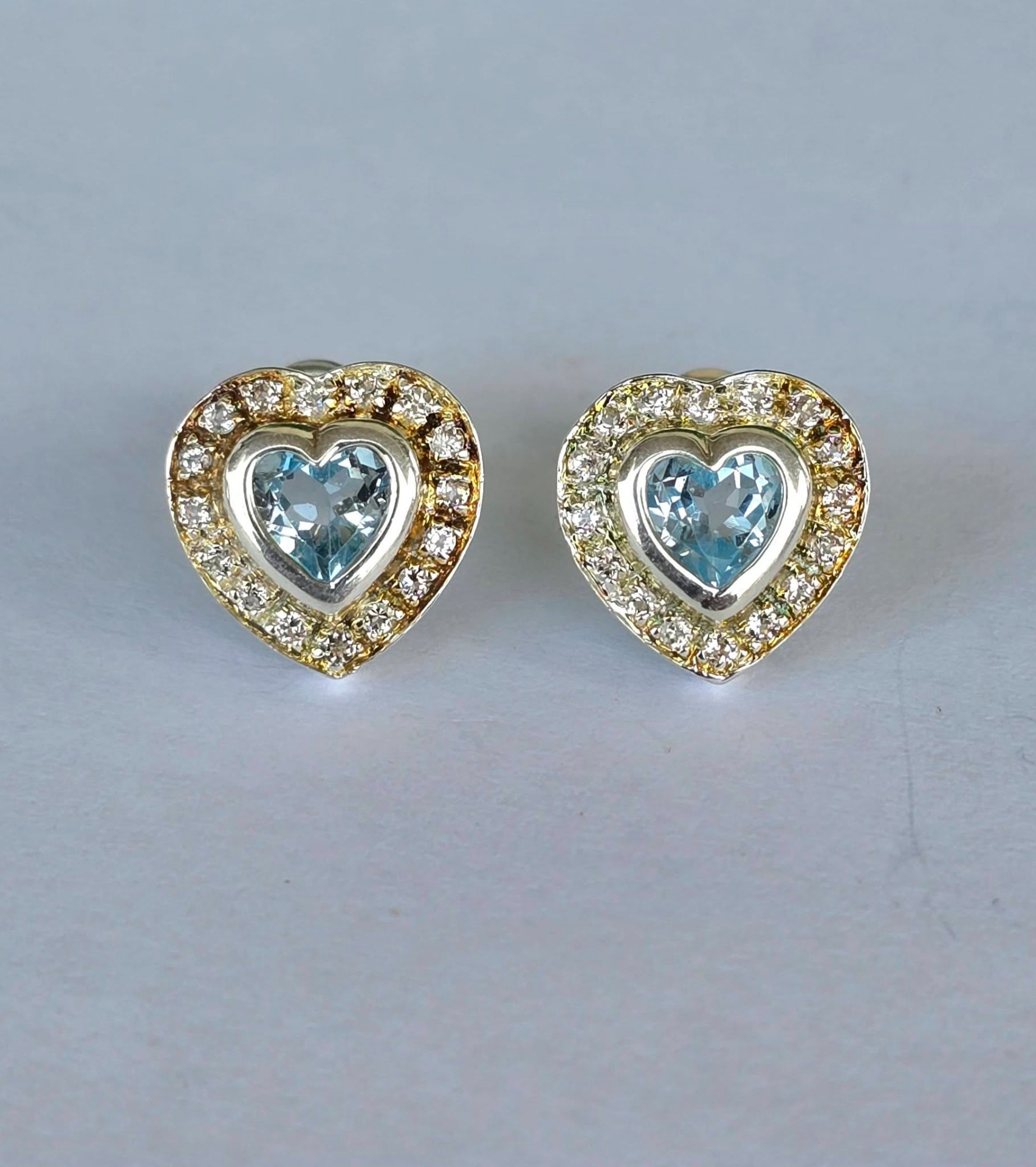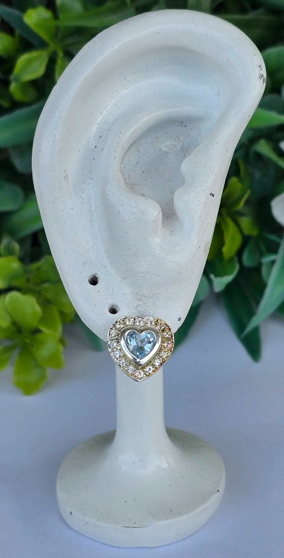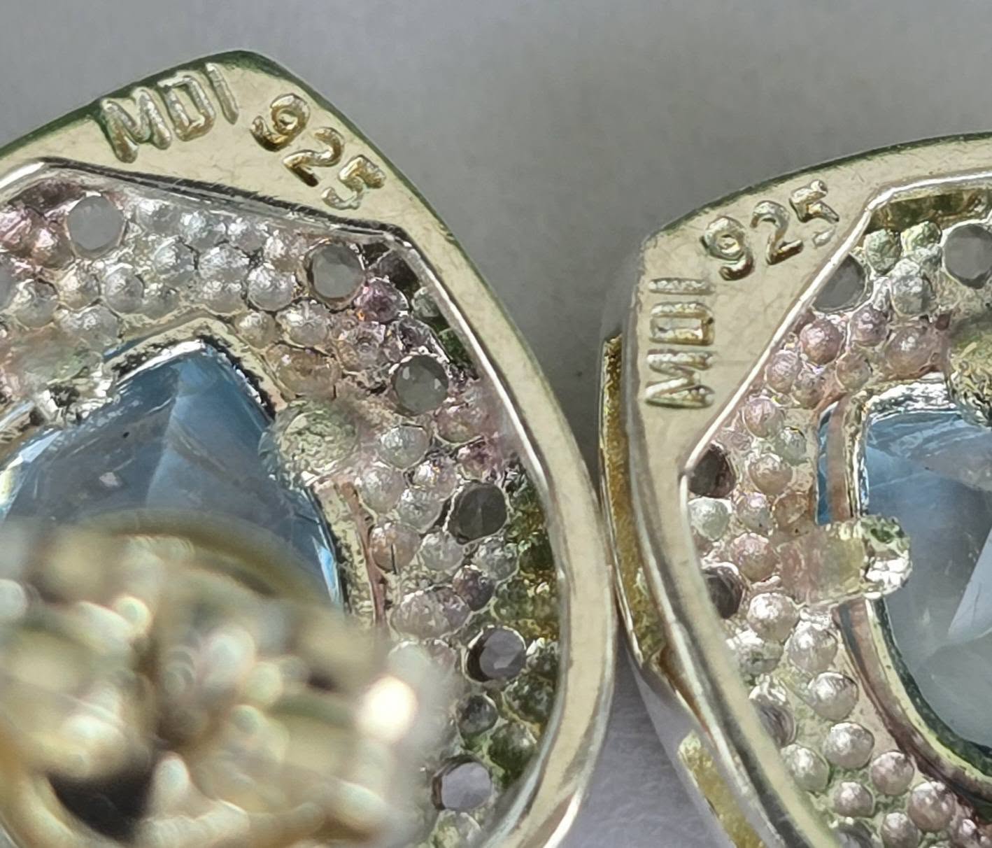 Cercei vechi din argint, cu topaze "sky blue" și topaze albe naturale.