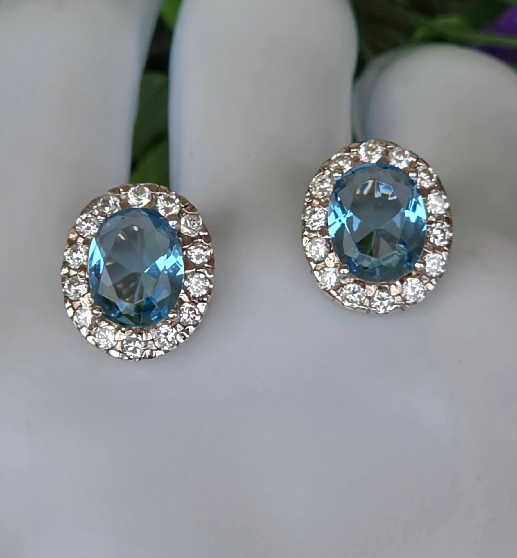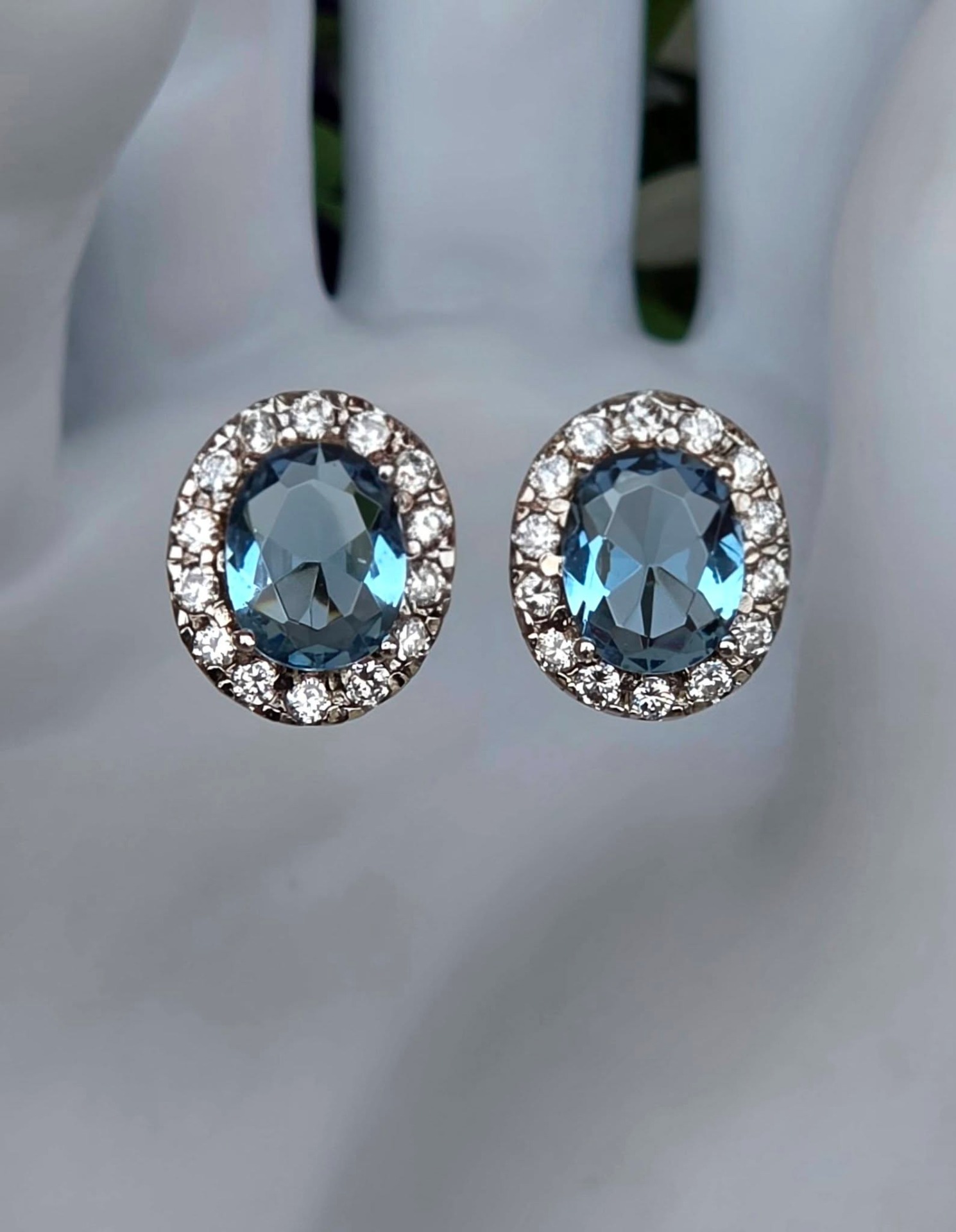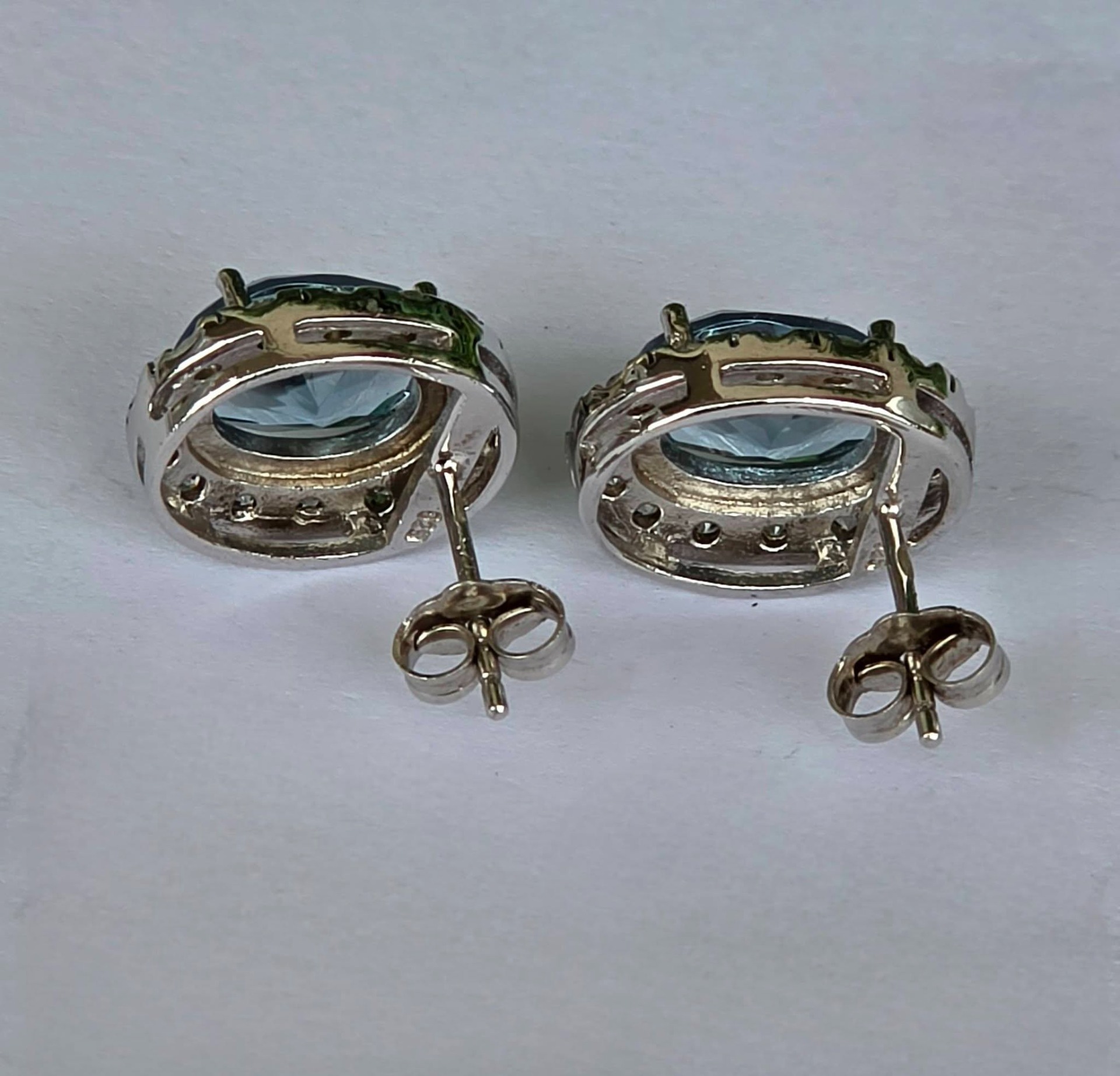 Cercei vechi din argint rodiat, cu pietre cubic zirconia.