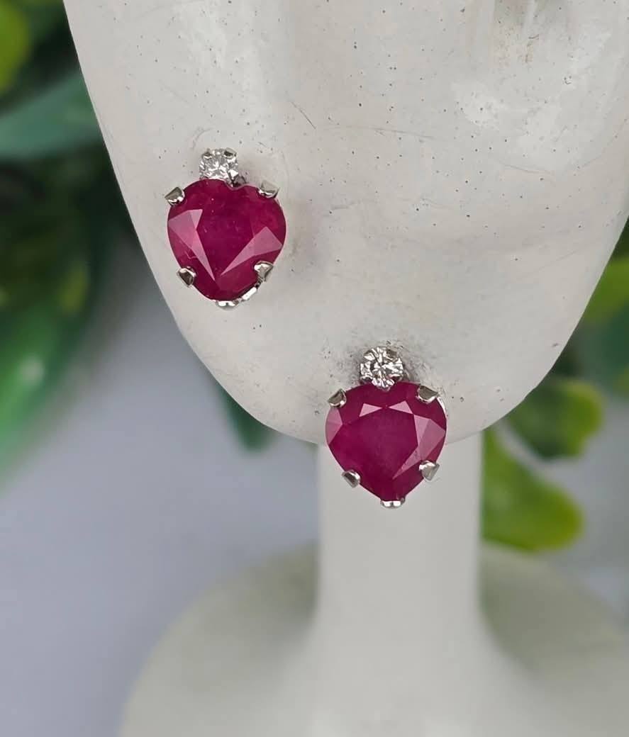 Cercei vechi din aur de 10K, cu rubine și 2 diamante naturale.