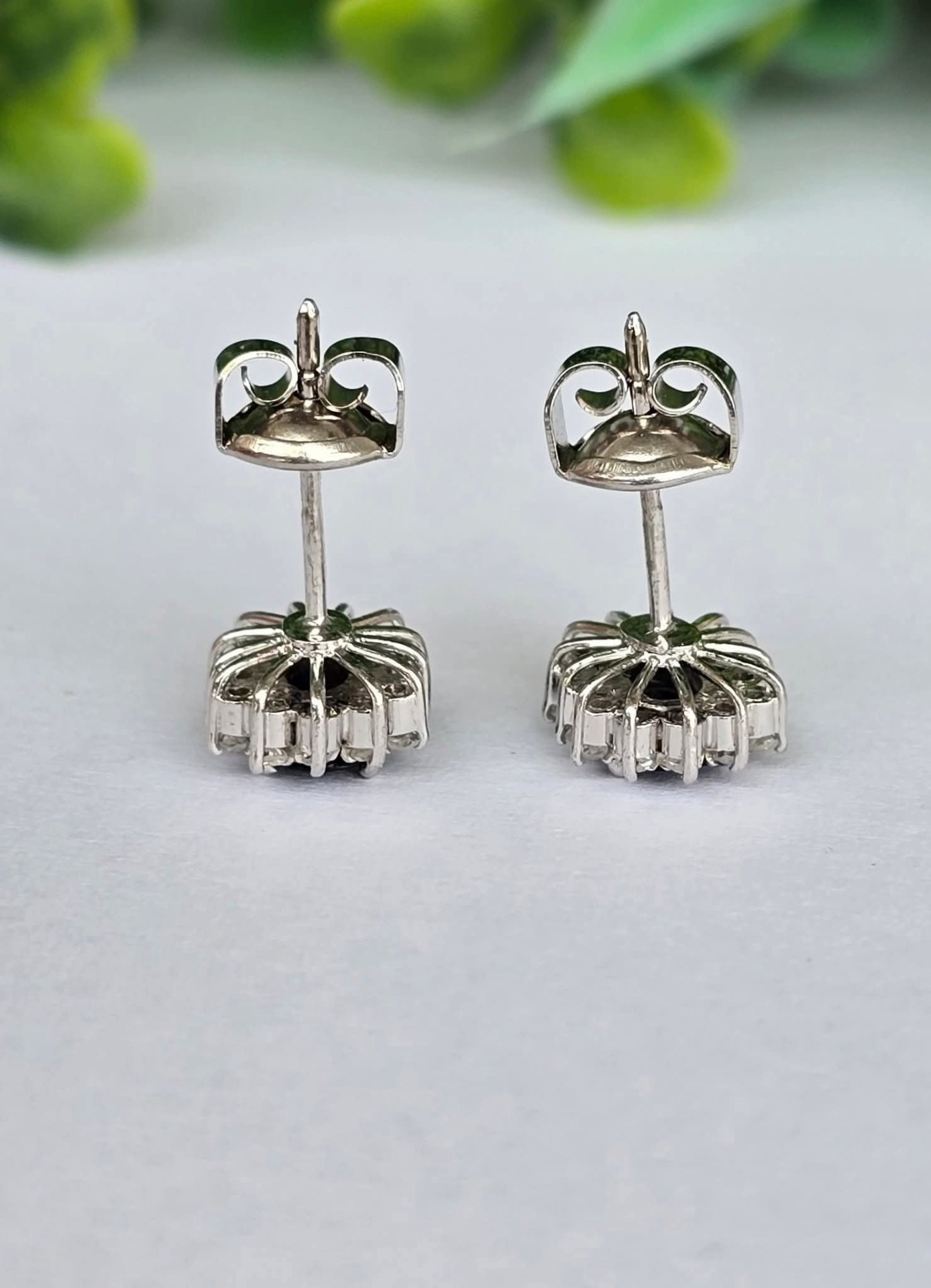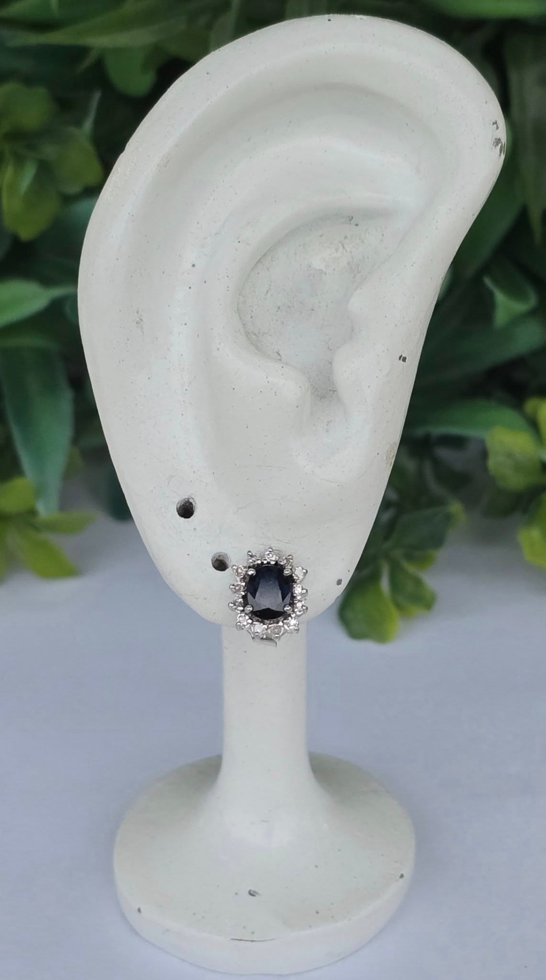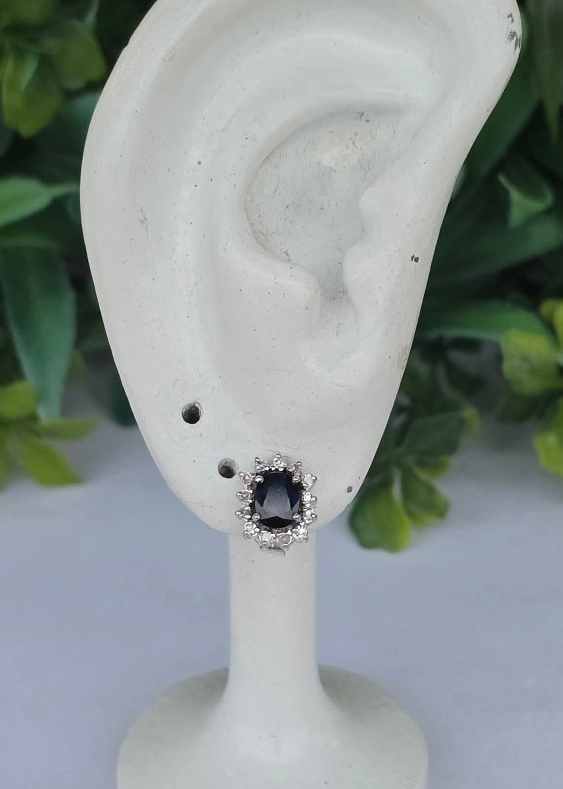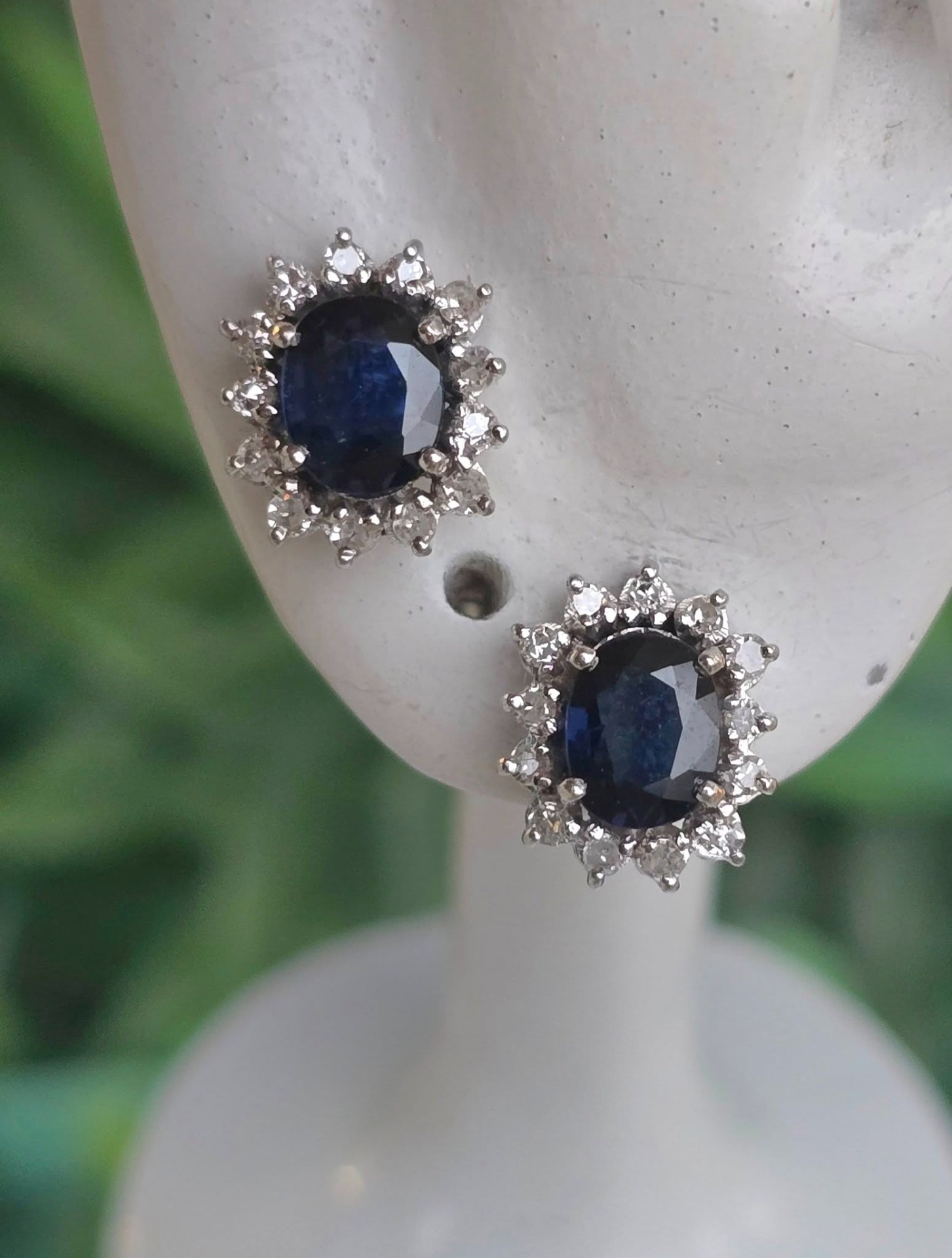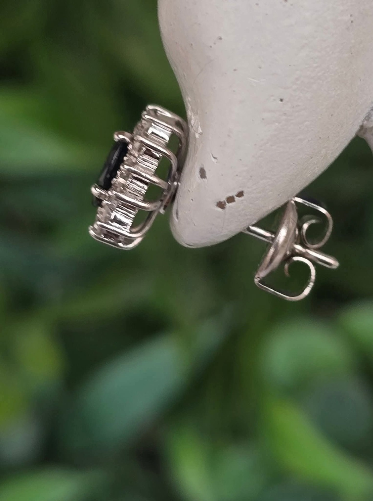 Cercei vechi din aur de 14K, cu safire "navy-blue" și 26 diamante naturale.